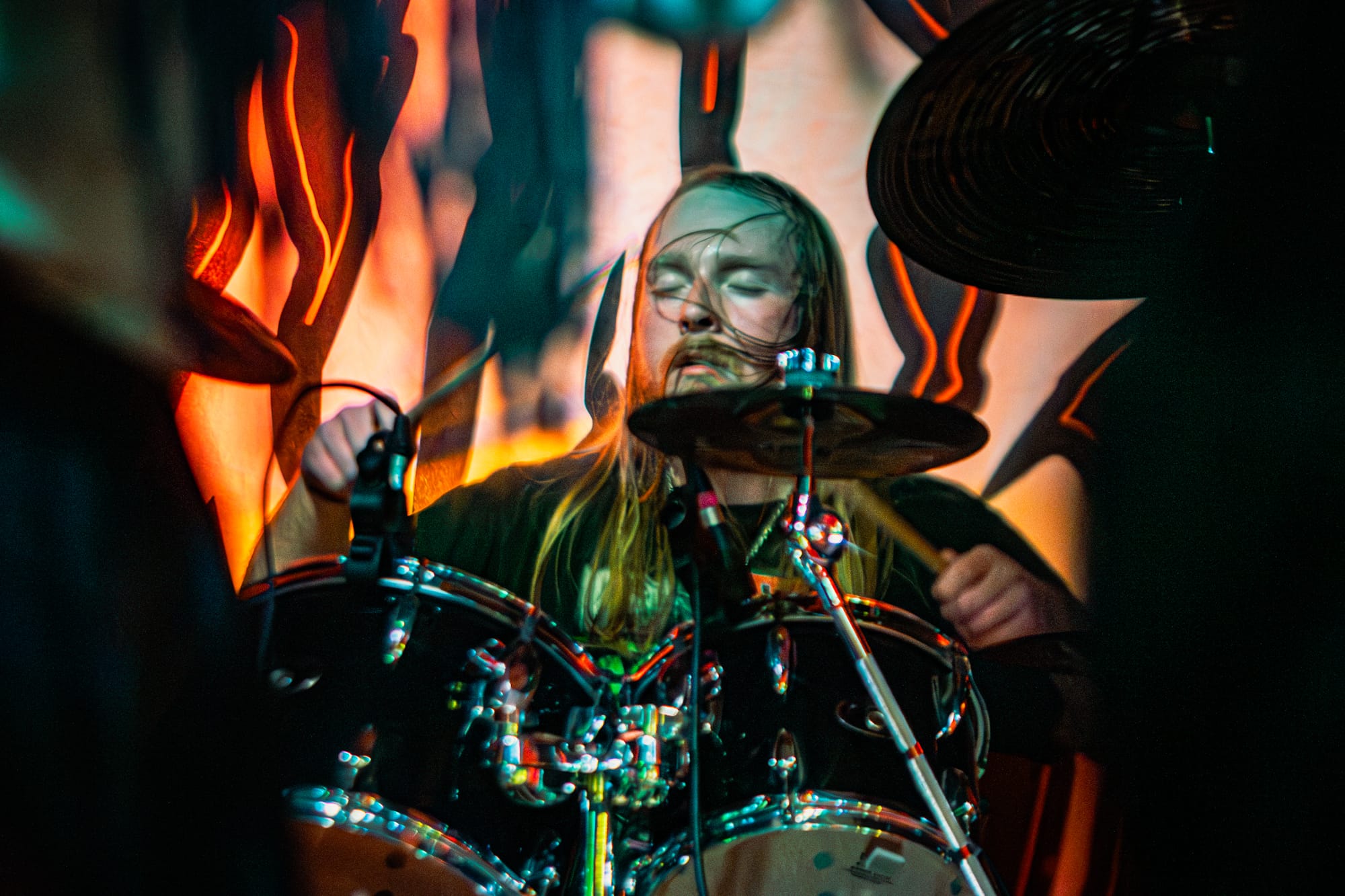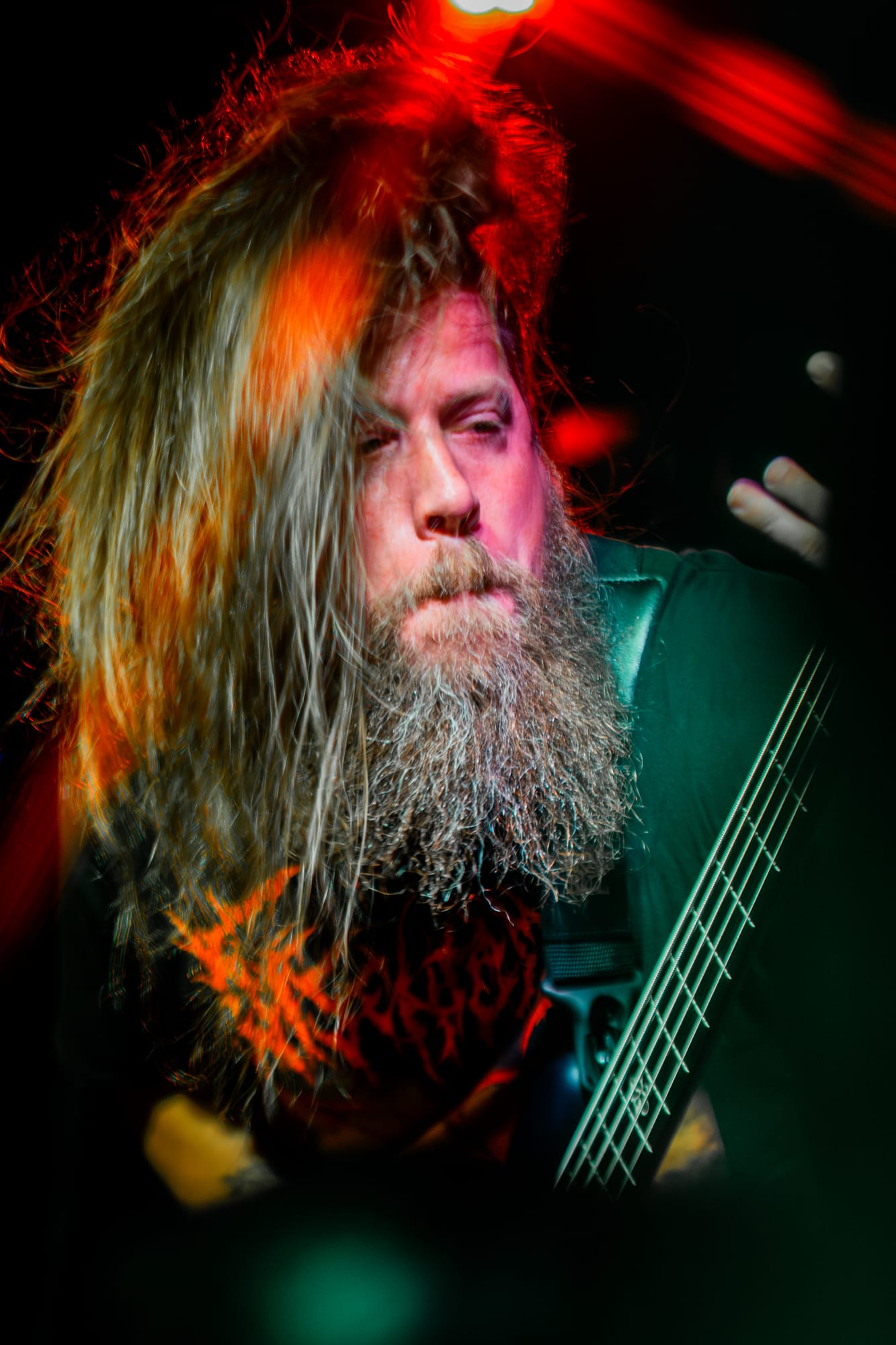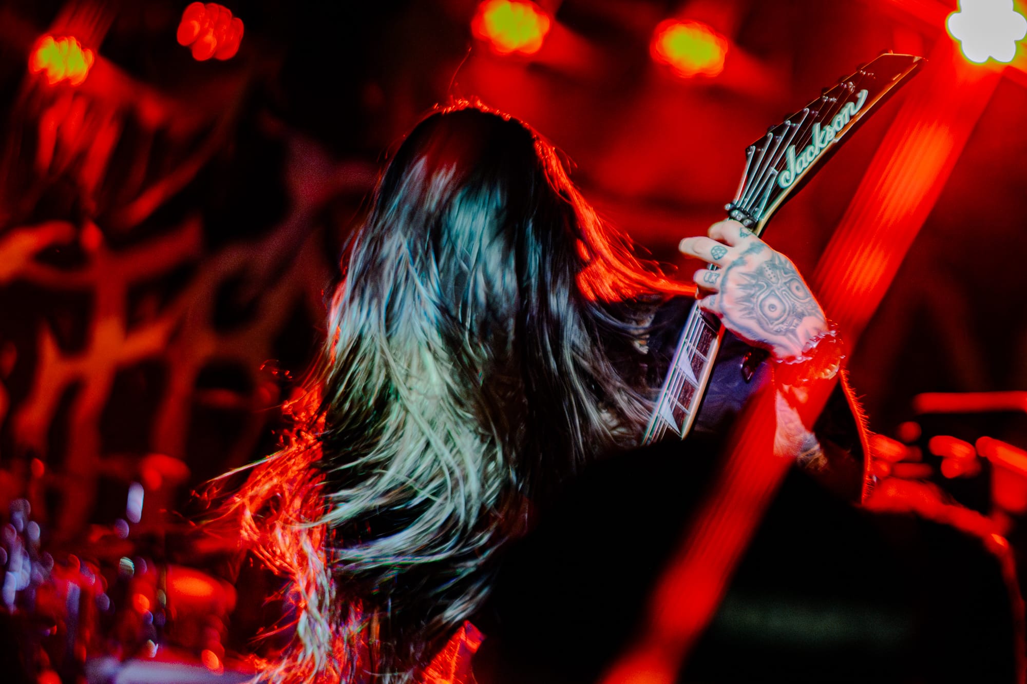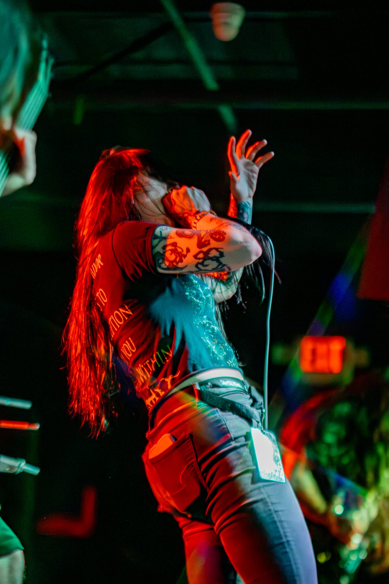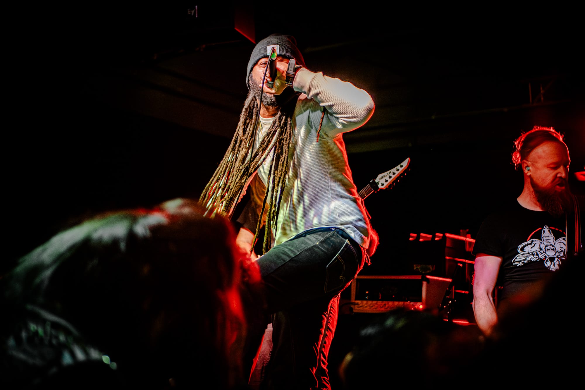 Skeletal Remains took the stage next. While they had a darker vibe to them, they still packed a punch of energy! The crowd at this point had been going crazy consistently for three bands, showing no sign of stopping. Skeletal Remains really set the mood with ominous backtracks that loomed in between songs. During their sound check I was really nervous about how clicky the triggers on the drum kit sounded, but they actually ended up sounding really good when paired with the low end this band has. Overall, I thought they sounded really good! I have been wanting to see them perform for a while, so I am glad I had the opportunity to.