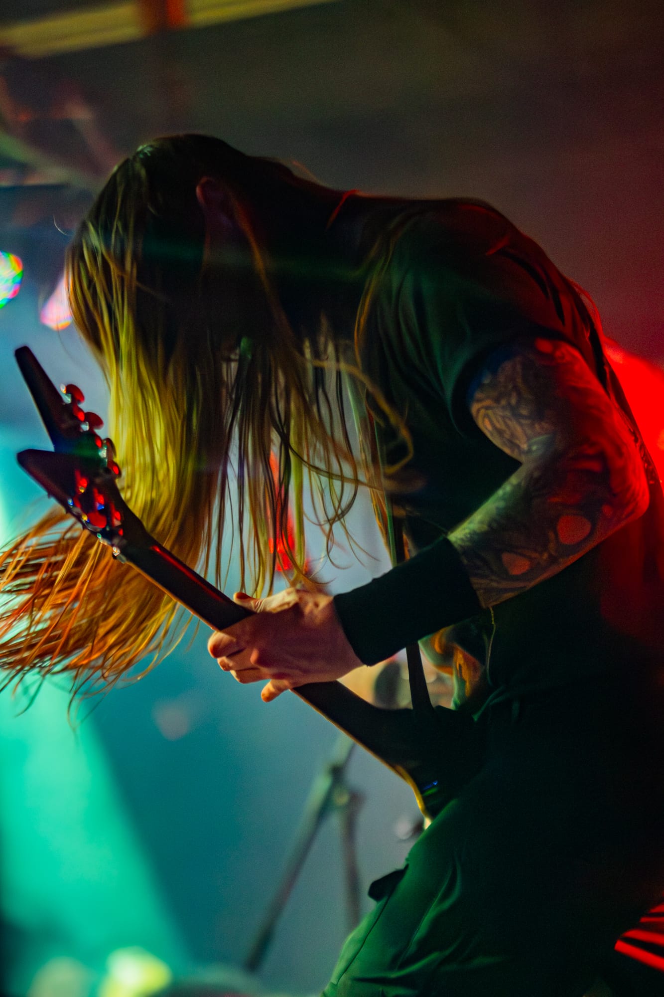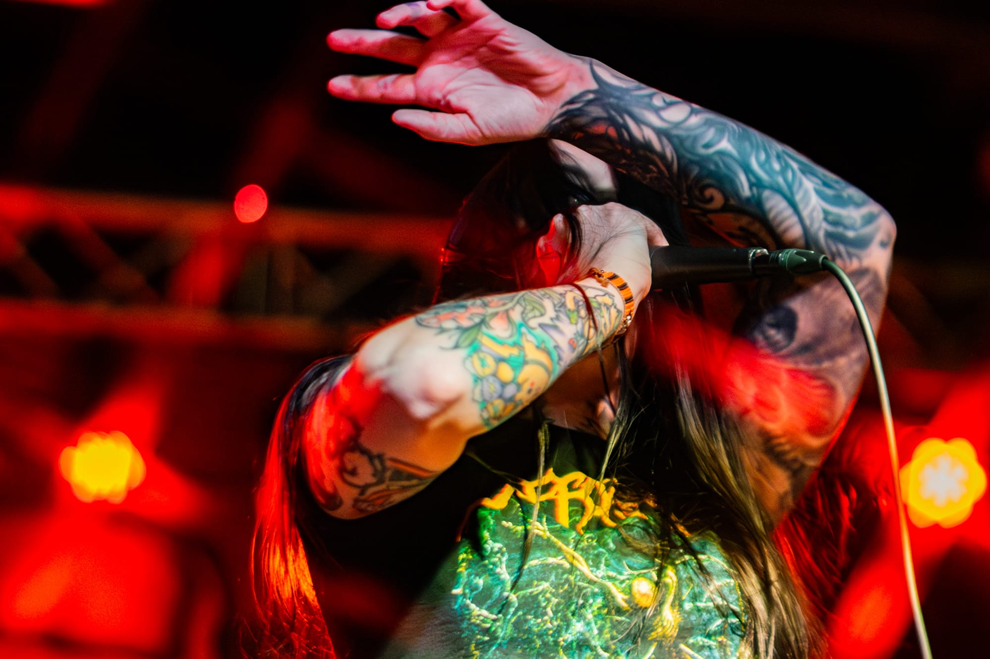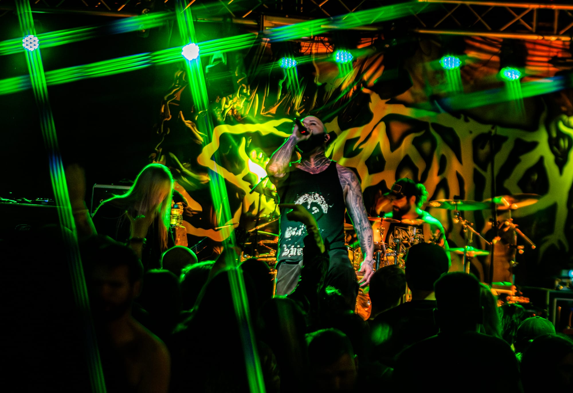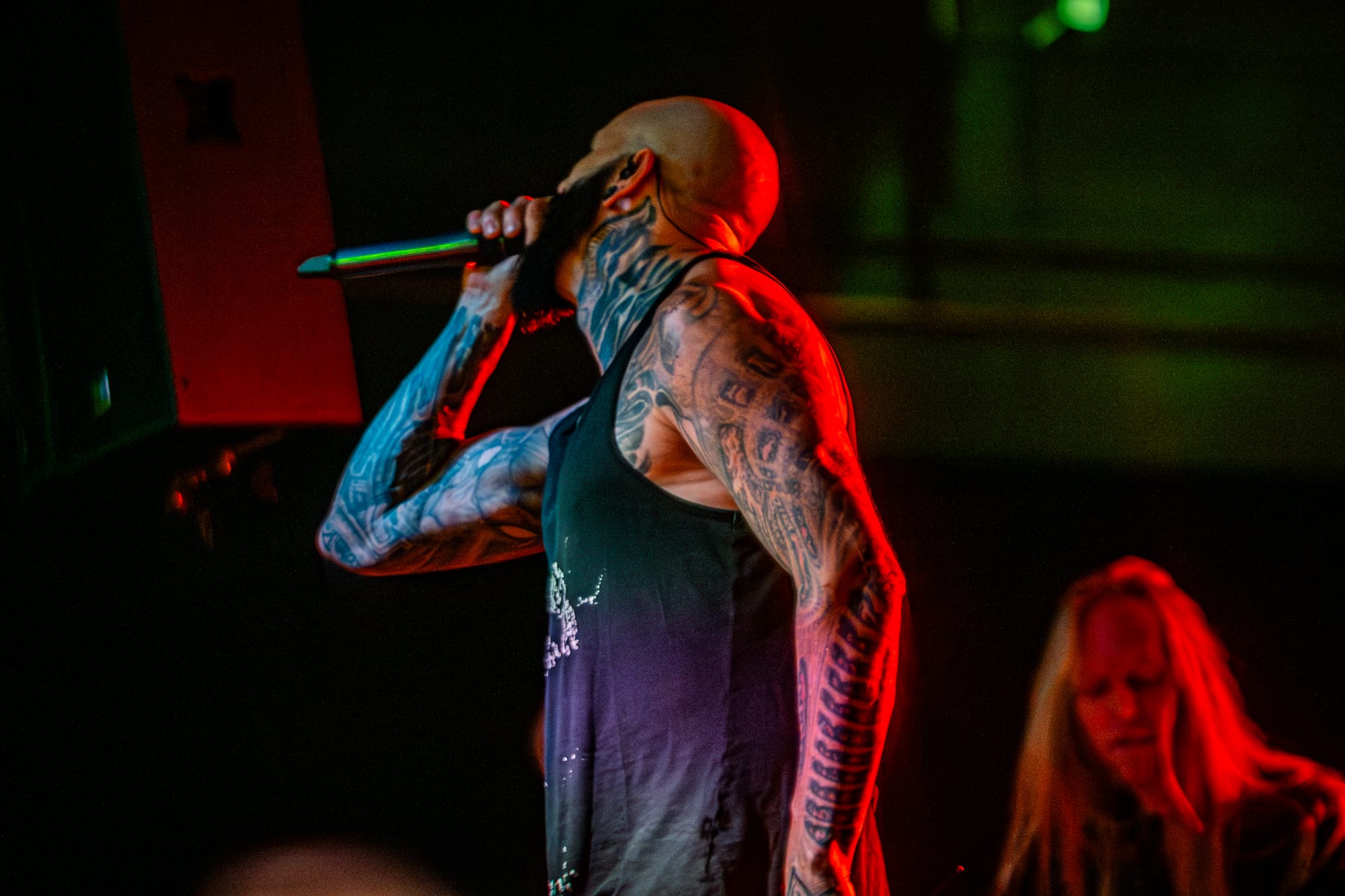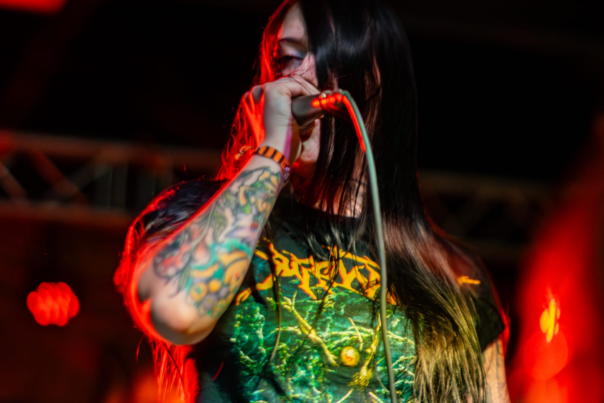 Co-headliners Suffocation performed next. Suffocation is one of the pioneers of brutal death metal. They have been around since the late 80s and are still killing it. This tour served as the album release tour for their recent release, Hymns from the Apocrypha. This new album was definitely one of my top albums that have been released this year, so I was psyched to be able to see them perform! Their set was robust, resulting in them playing for about an hour. They played everything off their new album, minus three songs, which was great! The Stabbing vocalist, Bridget Lynch, came out and performed alongside Ricky Myers for one of the last songs. This was great to see, especially since she notably filled in for Myers on one of the earlier dates of the tour while he was unwell. Towards the end of the set, you could tell people in the crowd were getting tired especially since it was a Monday night and they had been going nonstop the whole night, but it seemed like the crowd really enjoyed the performance!