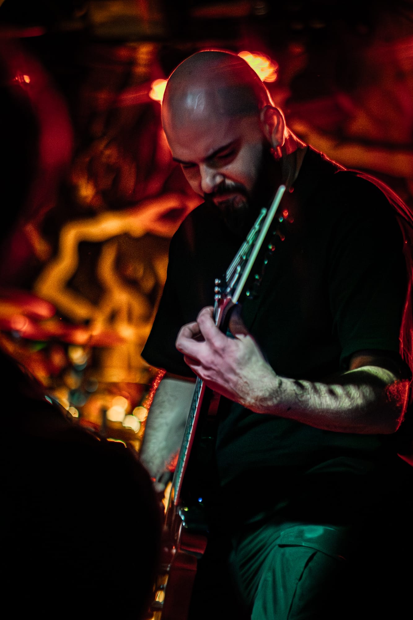 To carry out the energy initially provided by WoR, Stabbing came out and absolutely destroyed the stage next. Stabbing is a fairly new death metal band from Houston, Texas. They really surprised me with how great they sounded live. There is a groovy element to their death metal that I really enjoyed. They also had a fun presence on stage and the crowd ate it up! All of the members are extremely talented and entertaining to listen to. I appreciated the use of pinch harmonics in the song, "Final Flesh Beast." They played two songs off their recent EP, that are titled, "Vortex of the Severed Dead" and "Pulled Apart" that were very good! I honestly was not very familiar with their music before this show, but after their set I would say I am absolutely a fan!