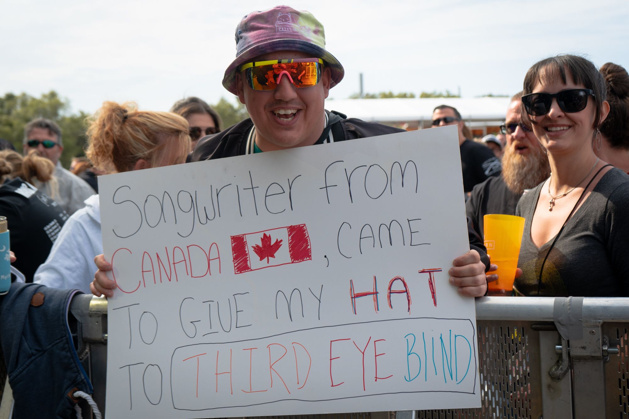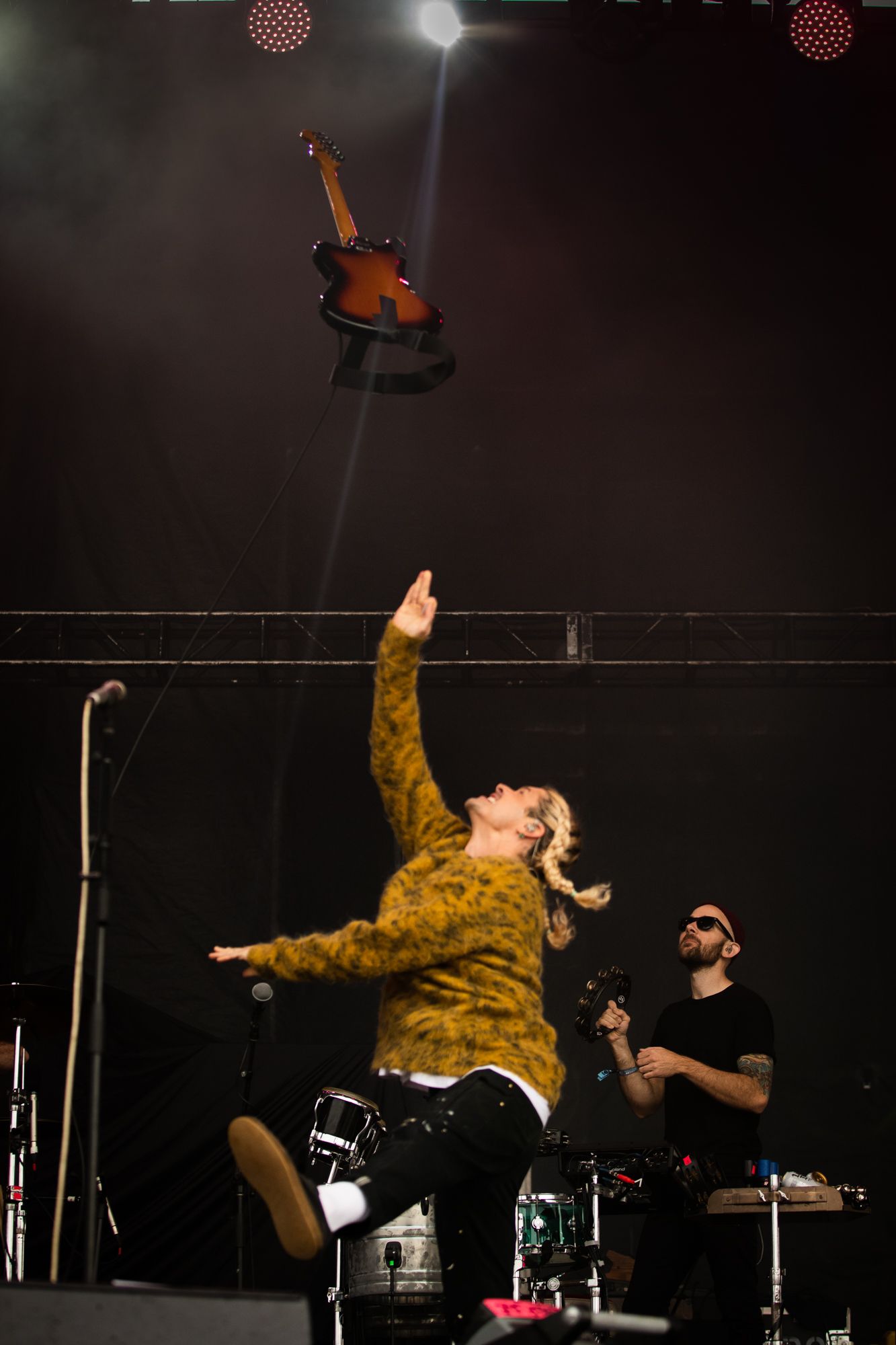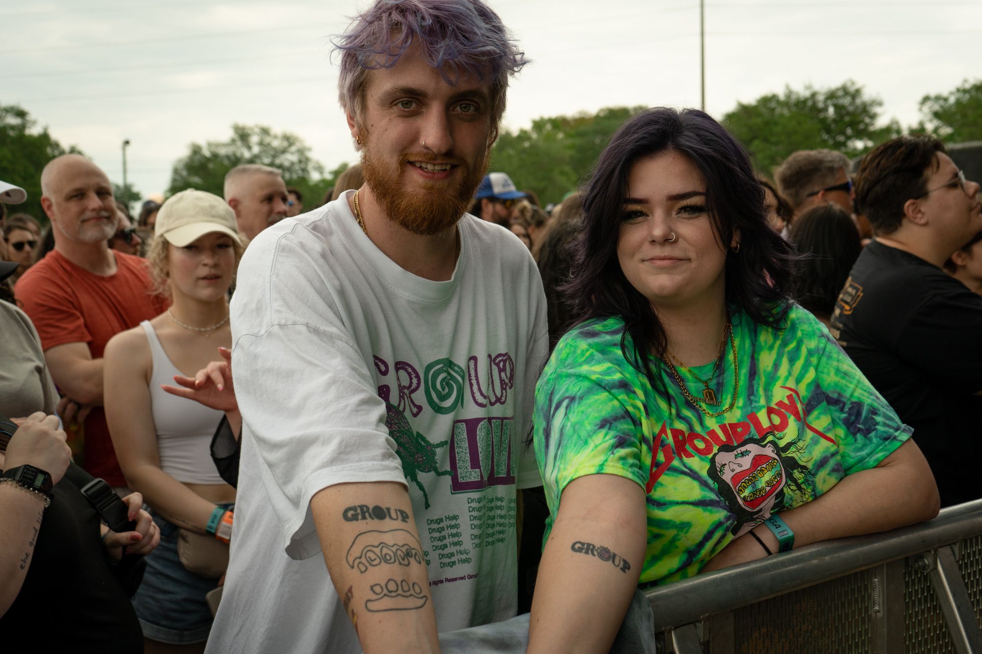 Waiting for Grouplove to take their place up on stage is where I met fans Tyler and Brittney. With tattoos for the band that match its members, this would be their 23rd time seeing them perform. When the band would take the stage, Tyler, Brittney and Grouplove’s members would recognize each other with excited smiles and pointed callouts of approval. That many concerts are for good reason, Grouplove will always be one of my favorite bands to see live. The chemistry on stage not only between married lead singers Hannah Hooper and Christian Zucconi, but between the entire band is untouchable. They will never not command the stage they find themselves on and send those radiant vibes undulating through the crowd from barricades to parking lots. Throwing guitars into the air, chants they promised their seven-year-old daughter they’d make the crowd echo, and two new songs by the names of Cheese and Hello alongside classics like Tongue Tied and Raspberry were all highs of the set.