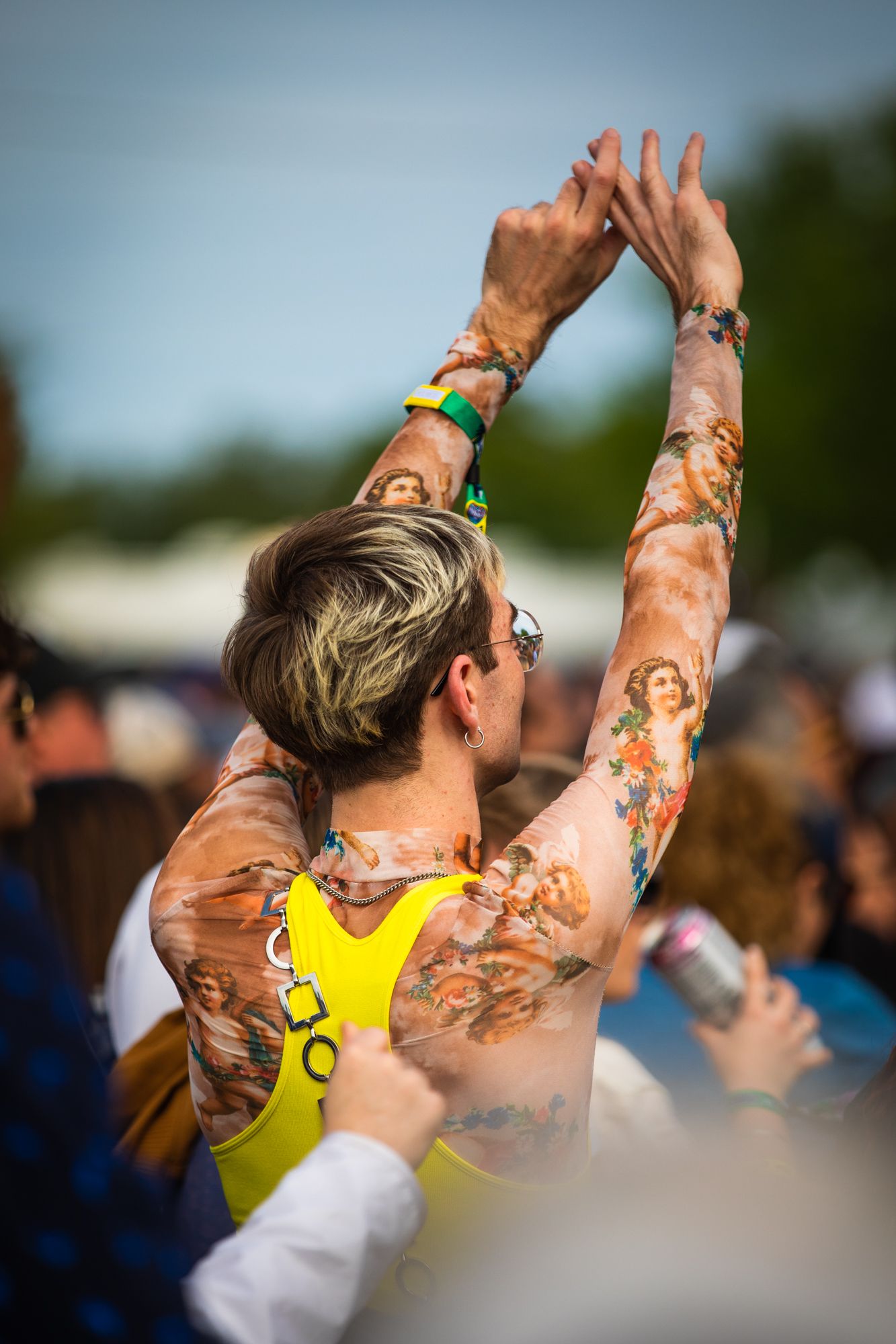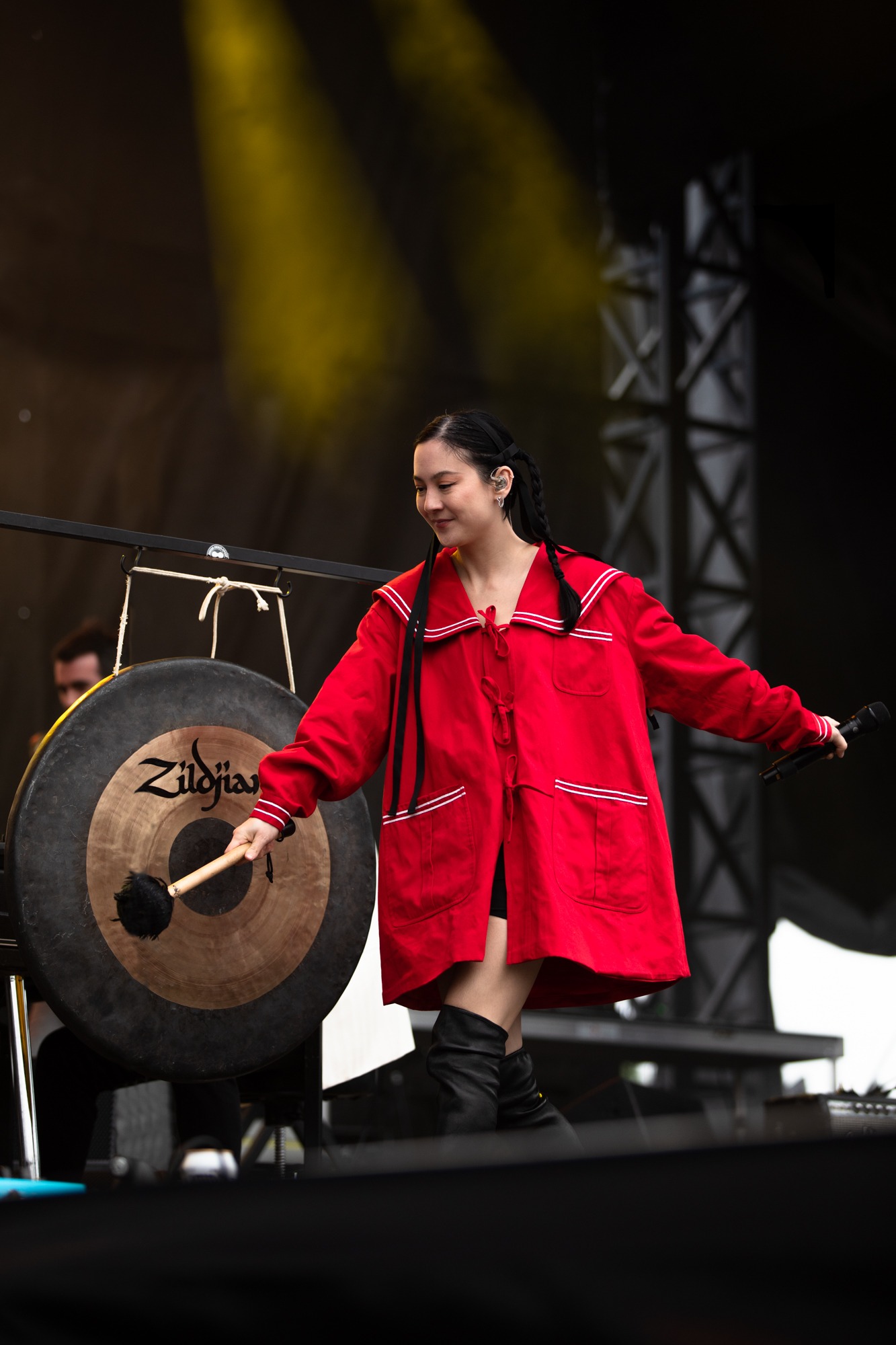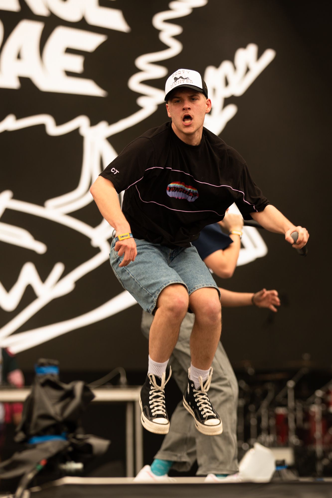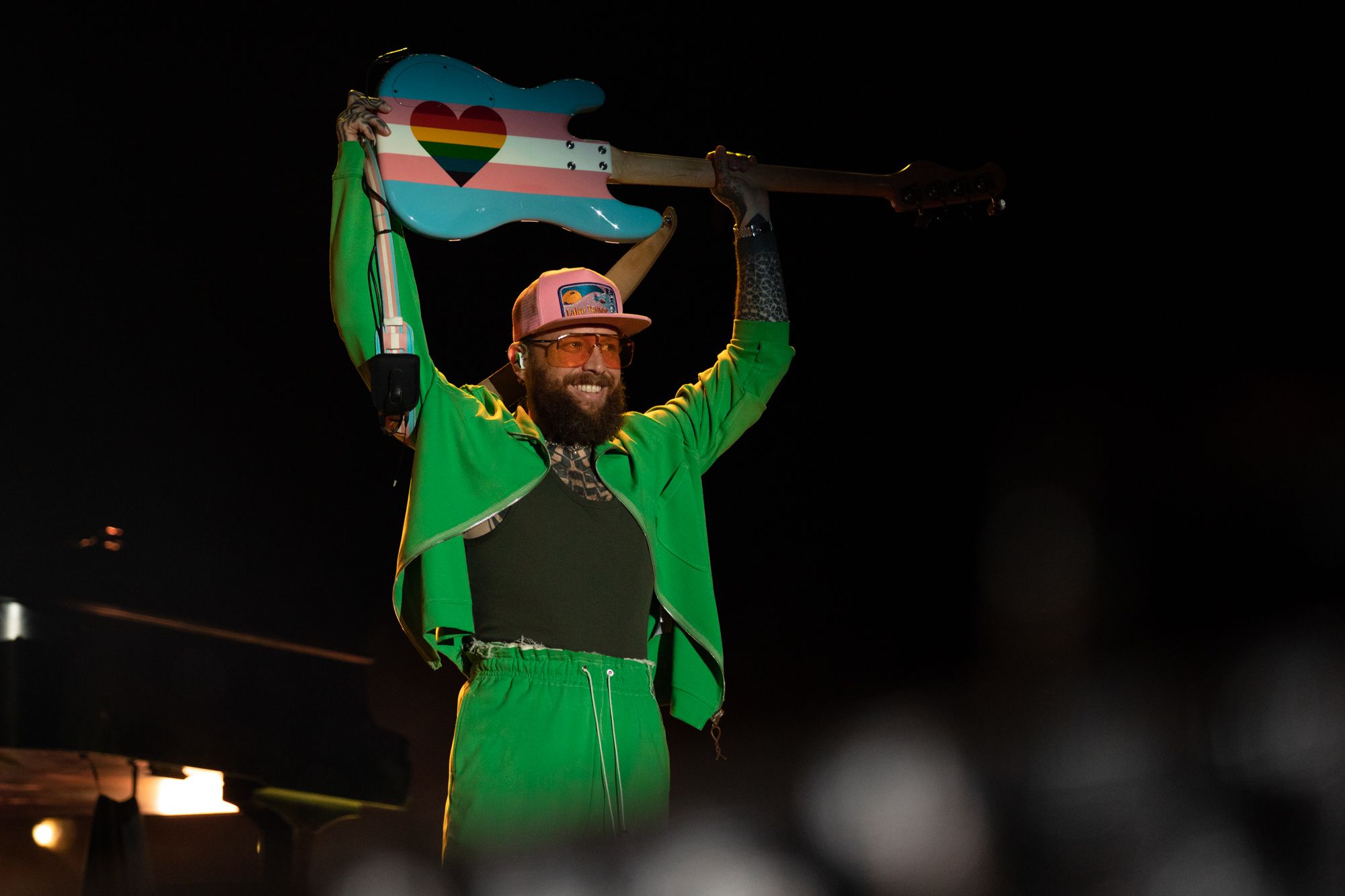 Waiting for Grouplove to take their place up on stage is where I met fans Tyler and Brittney. With tattoos for the band that match its members, this would be their 23rd time seeing them perform. When the band would take the stage, Tyler, Brittney and Grouplove’s members would recognize each other with excited smiles and pointed callouts of approval. That many concerts are for good reason, Grouplove will always be one of my favorite bands to see live. The chemistry on stage not only between married lead singers Hannah Hooper and Christian Zucconi, but between the entire band is untouchable. They will never not command the stage they find themselves on and send those radiant vibes undulating through the crowd from barricades to parking lots. Throwing guitars into the air, chants they promised their seven-year-old daughter they’d make the crowd echo, and two new songs by the names of Cheese and Hello alongside classics like Tongue Tied and Raspberry were all highs of the set.