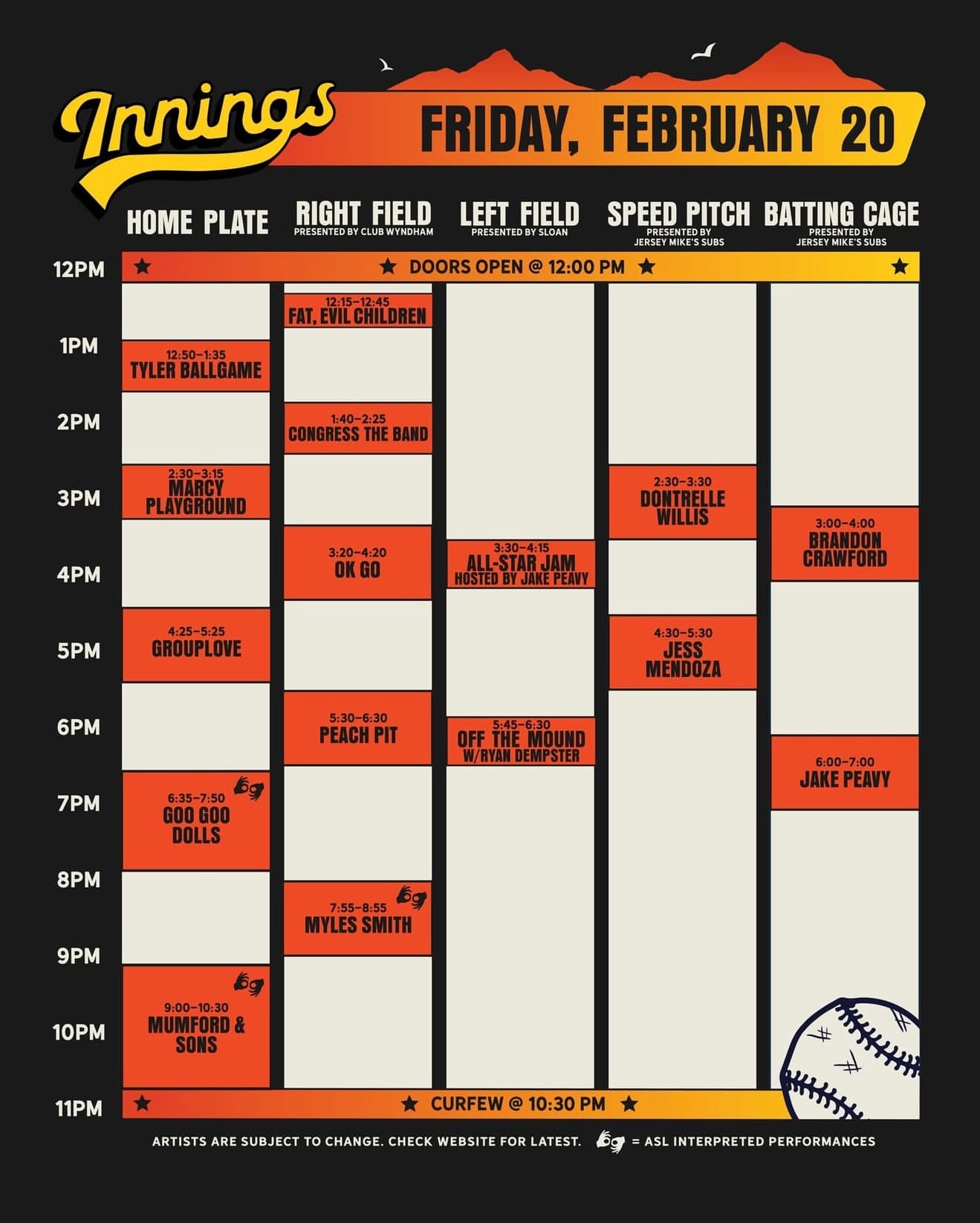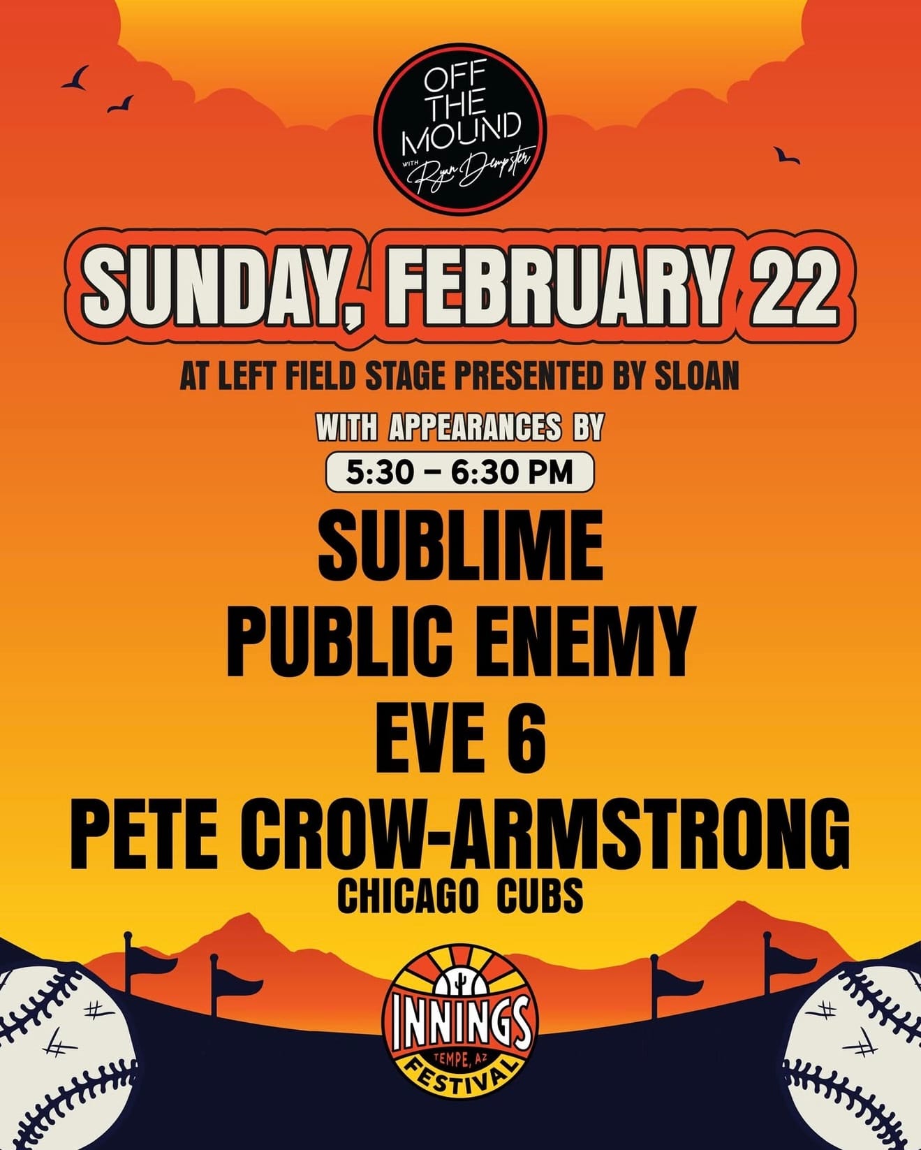Spring training kicks off this weekend, and that means the countdown to the Valley’s favorite festival is on. The 8th annual Innings Festival is set to take place this weekend, gathering music and baseball lovers from across the nation for three days of live entertainment and America’s favorite pastime. Set to take place from February 20 to 22, the festival returns to Tempe Beach Park in Tempe, Arizona, with its largest lineup since its debut in 2018. What has traditionally been a two-day festival has expanded this year to three jam-packed days of baseball inspired experiences, special guests, and an epic bill of artists. Headlining this year’s lineup is Mumford & Sons on Friday, Twenty One Pilots on Saturday, and Blink-182 on Sunday.