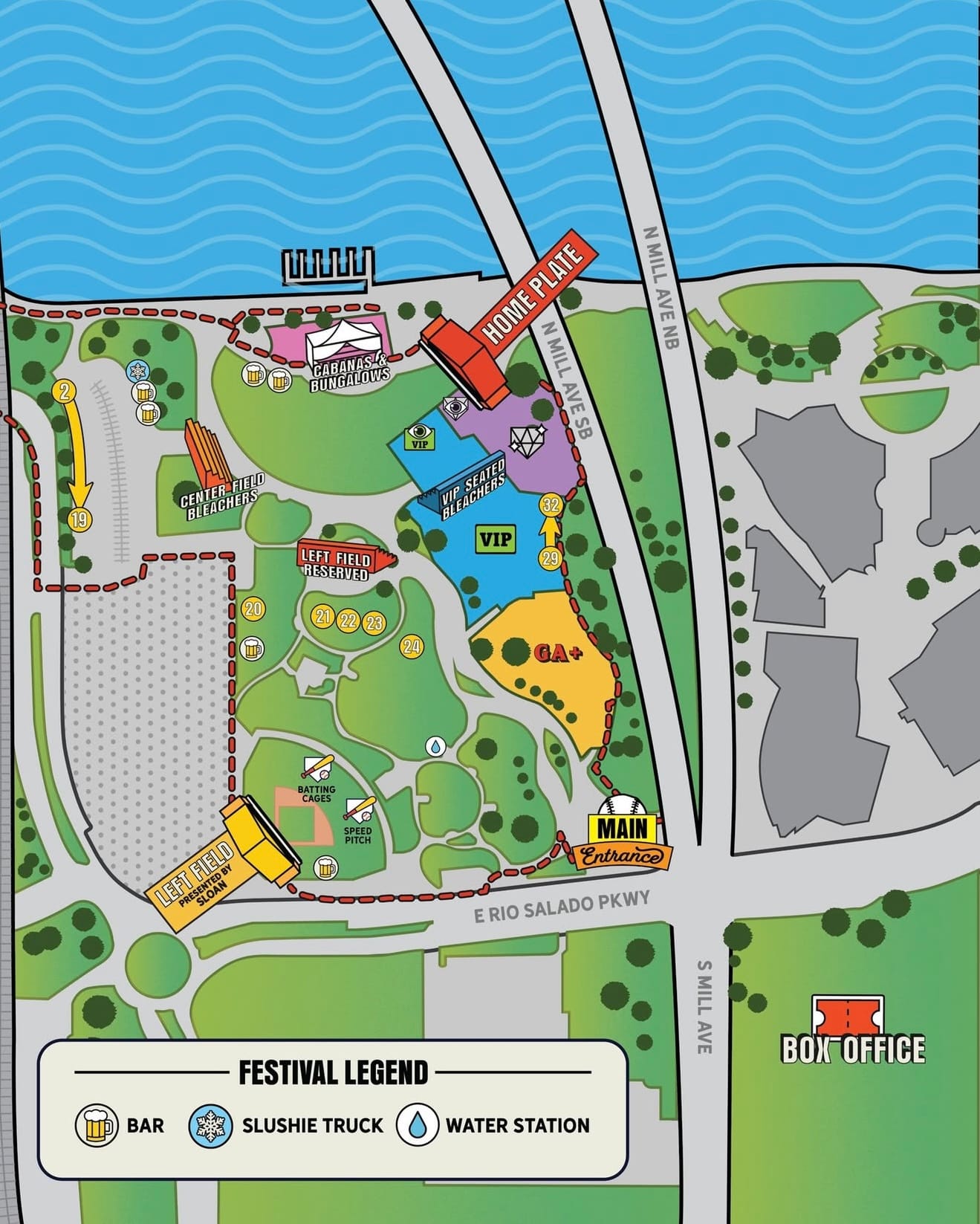 In addition to this year’s headliners, the festival will see some of the biggest names in rock, alternative, and pop, with the “Home Plate” and “Right Field” stages, hosting artists like Goo Goo Dolls, Myles Smith, Cage the Elephant, The Fray, Lord Huron, Sublime, and Public Enemy. Daily lineups and a detailed map of the festival grounds are available now. With 30 acts across three days and all of the activities in between, a little strategy will be needed to make the most out of your time.