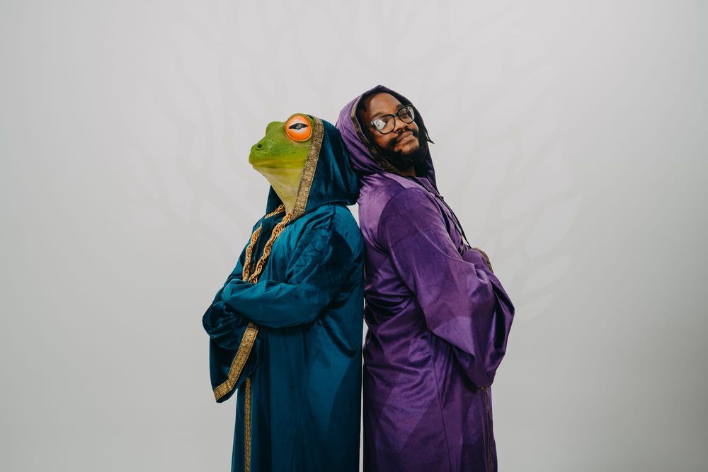 It's kind of like the freedom of it. You just sort of get to watch your virtual moves to people online, and people have funny comments like someone thought we were an AI band. I didn't know if that was a compliment or a jab, but I was with it. I don't know. You just sort of get to watch what happens when you go and make stuff with people. And we talk — me and everyone else in the band — we talk all the time. It's just that we've never met in person and it's fun that way, but there's plans. The Frog is everywhere. You never know exactly who The Frog is going to be, but they're everyone.