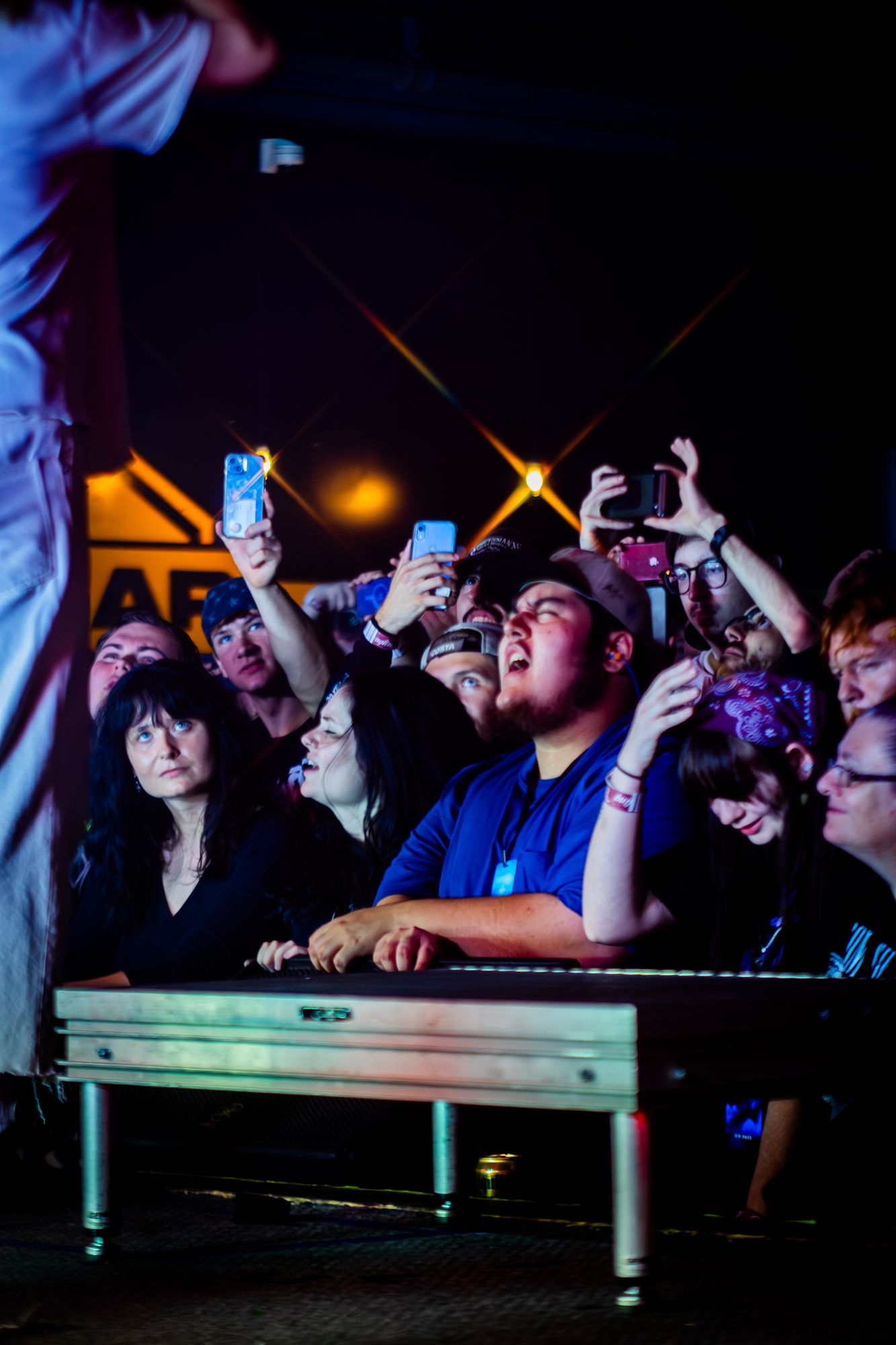 Next to take the stage was Melbourne, Australia's Void of Vision. I was very impressed with this band's performance. I have never seen them live before, but they had a ton of aesthetic put into their performance. Much like the last two bands, they had a lot of energy and had a tight sound. Vocalist, Jack Bergin really knows how to lead a room, several times requesting the crowd to move and jump. There were times he was basically screaming at us without a mic, and yet he was still extremely audible. It was impressive! I thought that the use of backtracks to introduce their songs was an interesting touch, that I haven't witnessed before. The choice of voice for the announcer added just another touch of aesthetic to the band's performance. I also have never seen a drummer stand up and request a circle pit for a song before. I appreciated the energy and desire for crowd participation from this band. Their set included songs such as "BERGHAIN", "DOMINATRIX", "Ghost in the Machine", "INTO THE DARK", and "THE LONELY PEOPLE." Overall, this set was really fun and interesting to witness. It definitely set a precedent for headliners, Invent Animate.