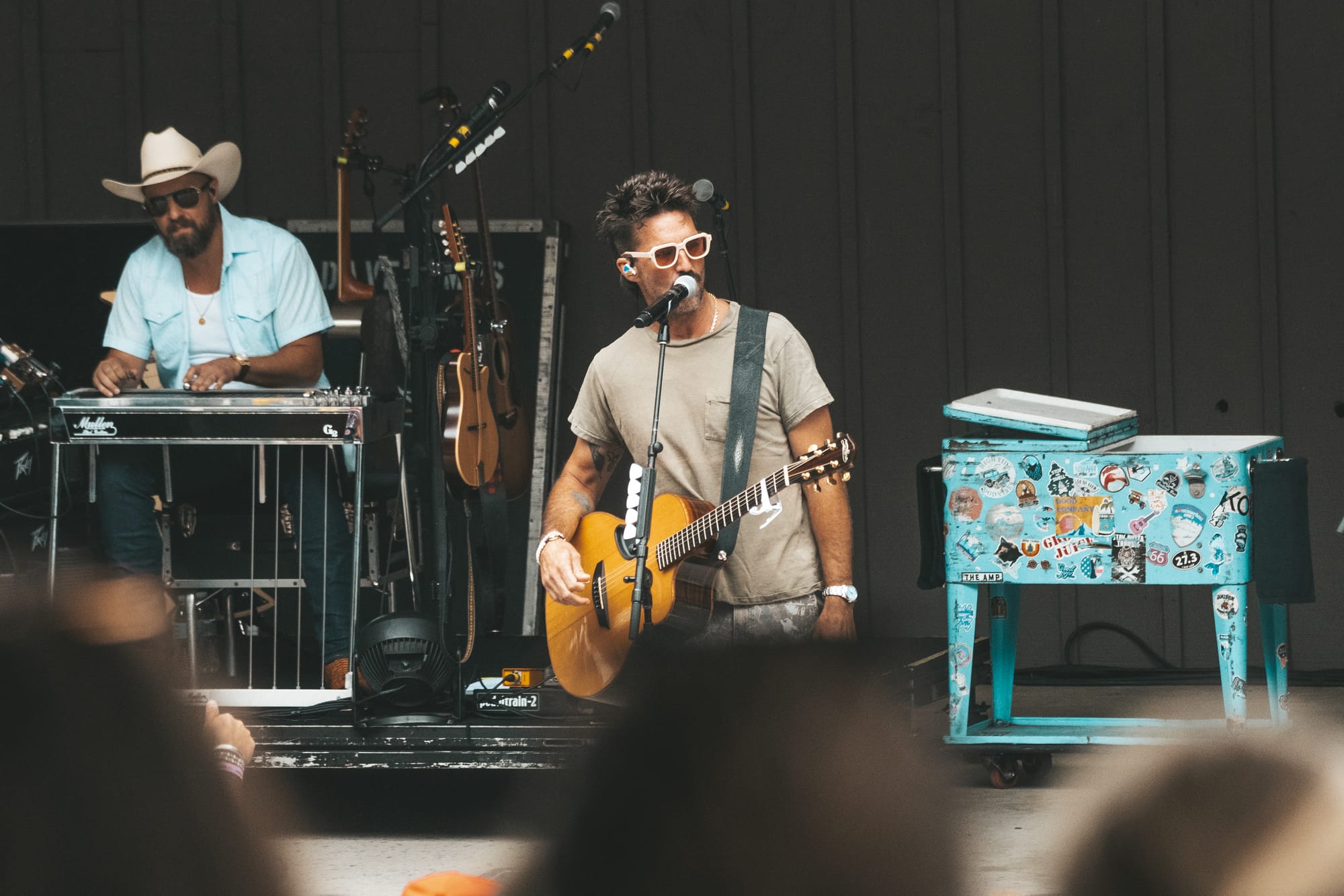 The stage setup is pretty basic, as it usually is for an Indian Ranch show. That isn’t a knock on the venue. It’s the time slot of 1:00pm start times, so there is no need for an elaborate light show. This makes the artist rely on pure talent to perform their songs. It’s just you and your fans, and you better deliver! There is nothing to hide behind! On stage, Jake did have his normal beer coolers. Those coolers are filled with ice-cold Miller Lites.