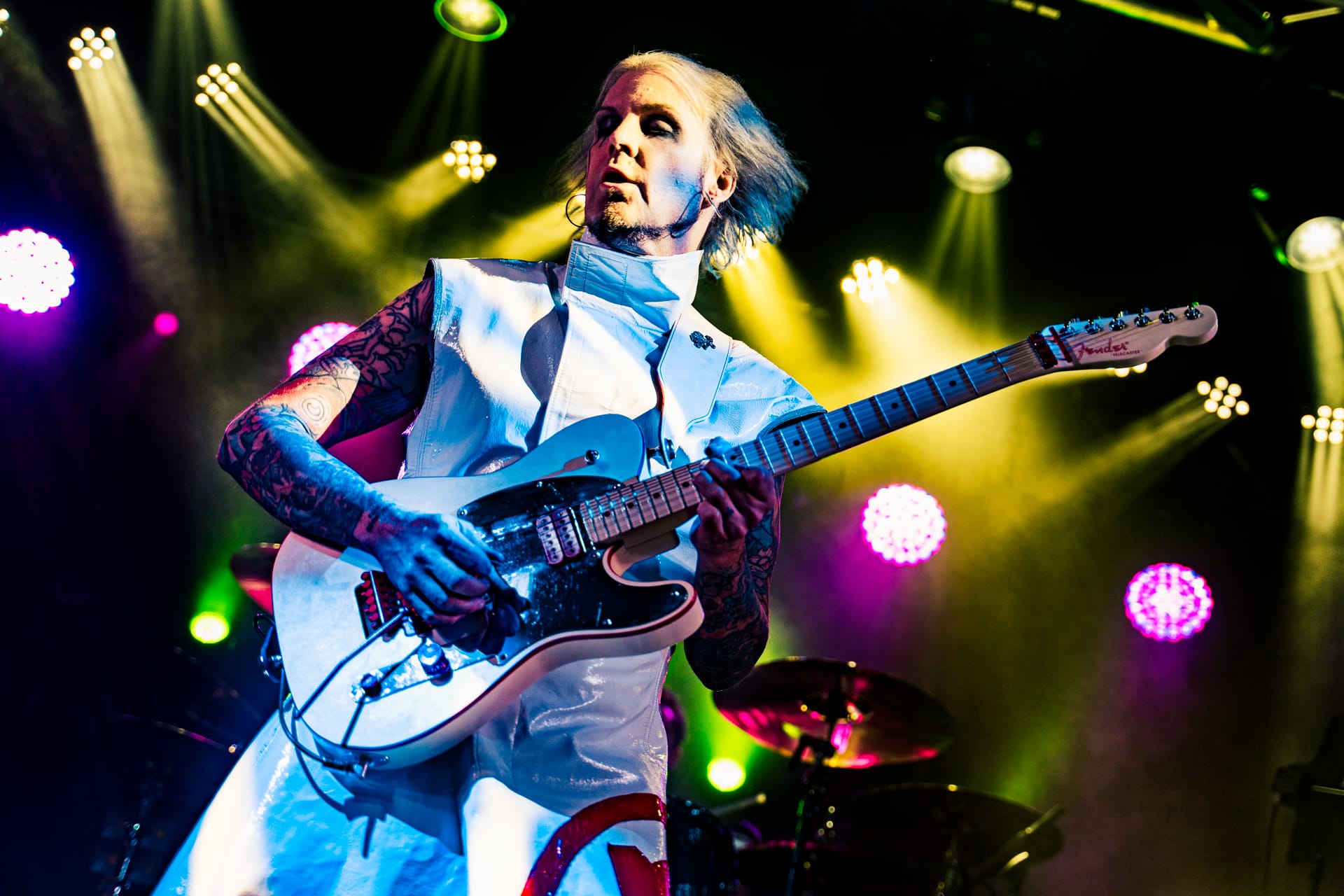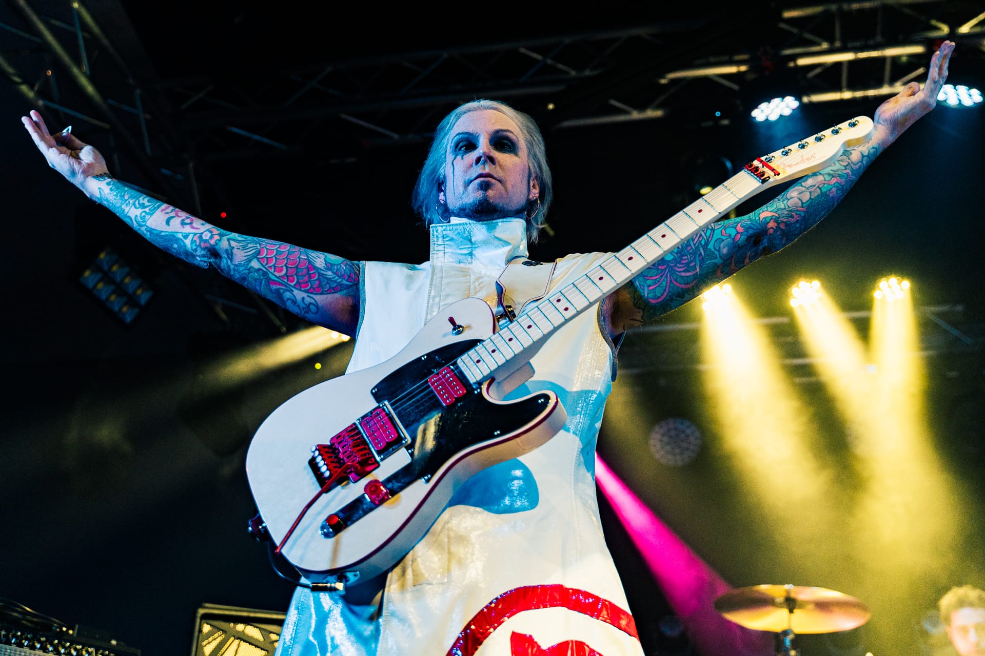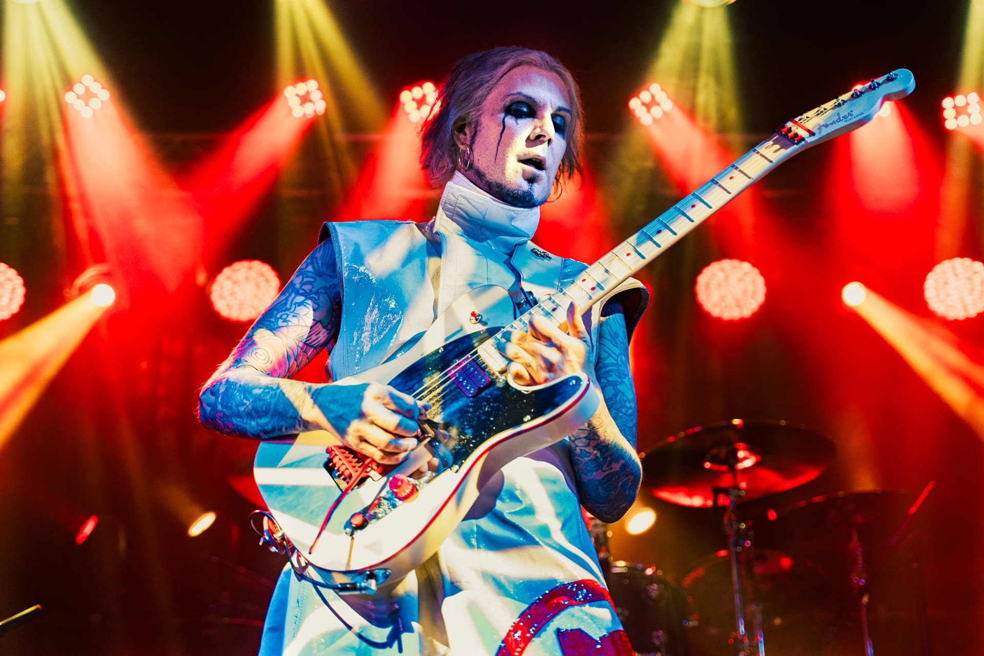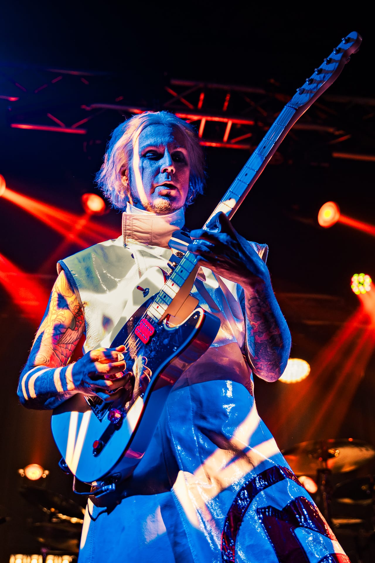 His set opens with the epic “Season of the Witch” and really doesn’t give much breathing room as he quickly switches guitars to move from track to track. The atmospheric “Cactus Flower” is one of the calmer moments in the set, as John 5, with his face draped in black fabric, plays it while serenely backlit. Reminding the audience that he’s joined Motley Crue, to which plenty of cheers are heard, John 5 dons his signature guitar with an emblazoned “CRUE” on the strap and launches into a medley of solos and riffs from their most popular tracks.