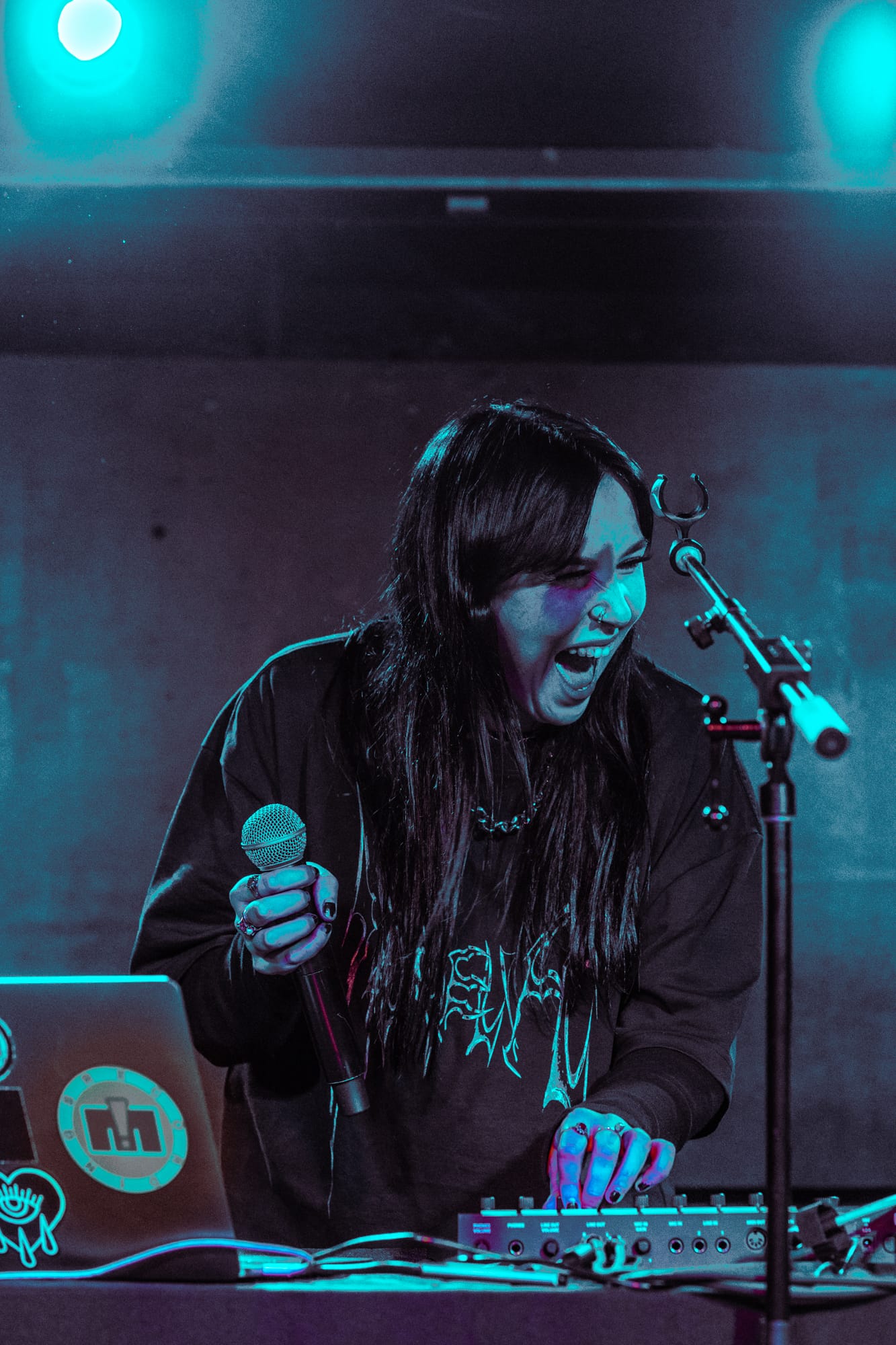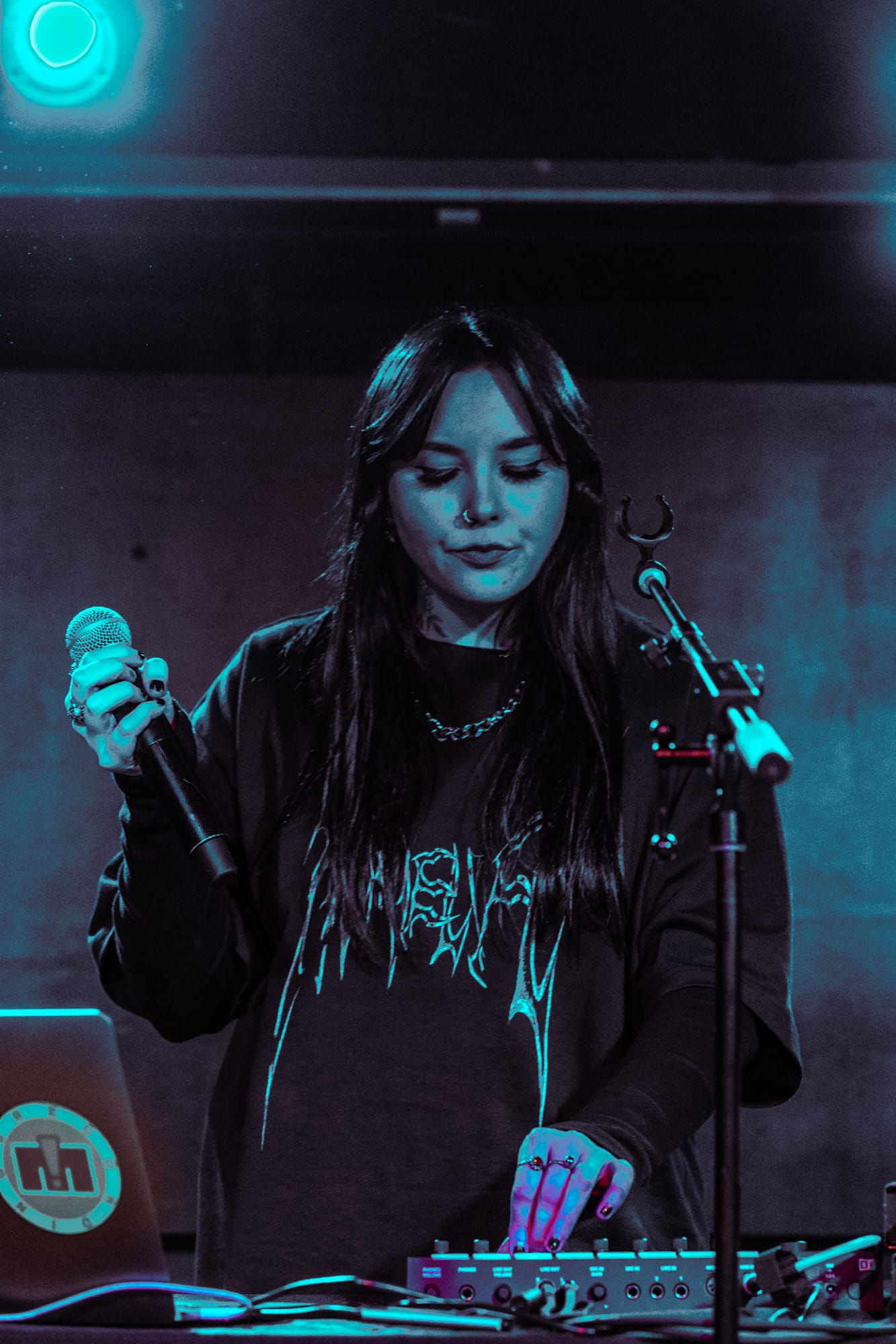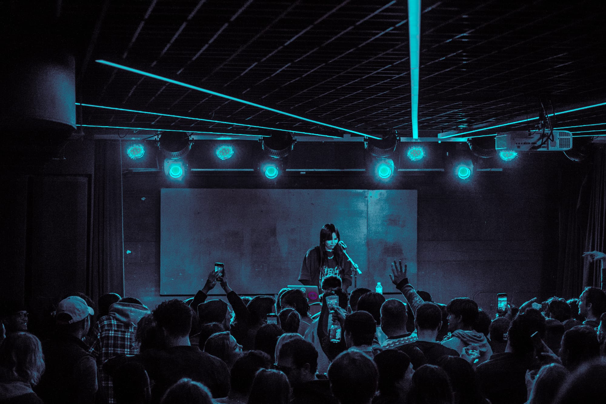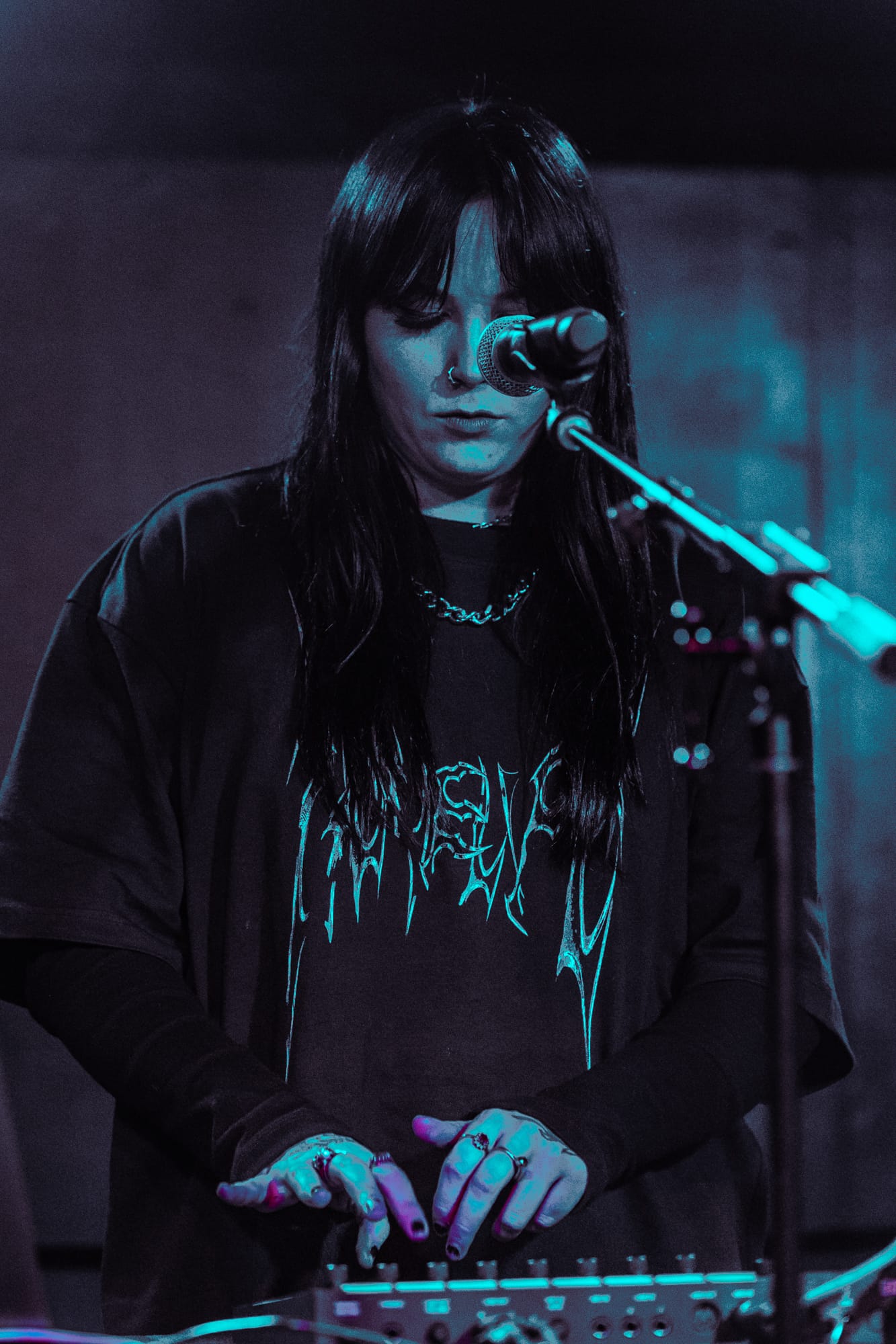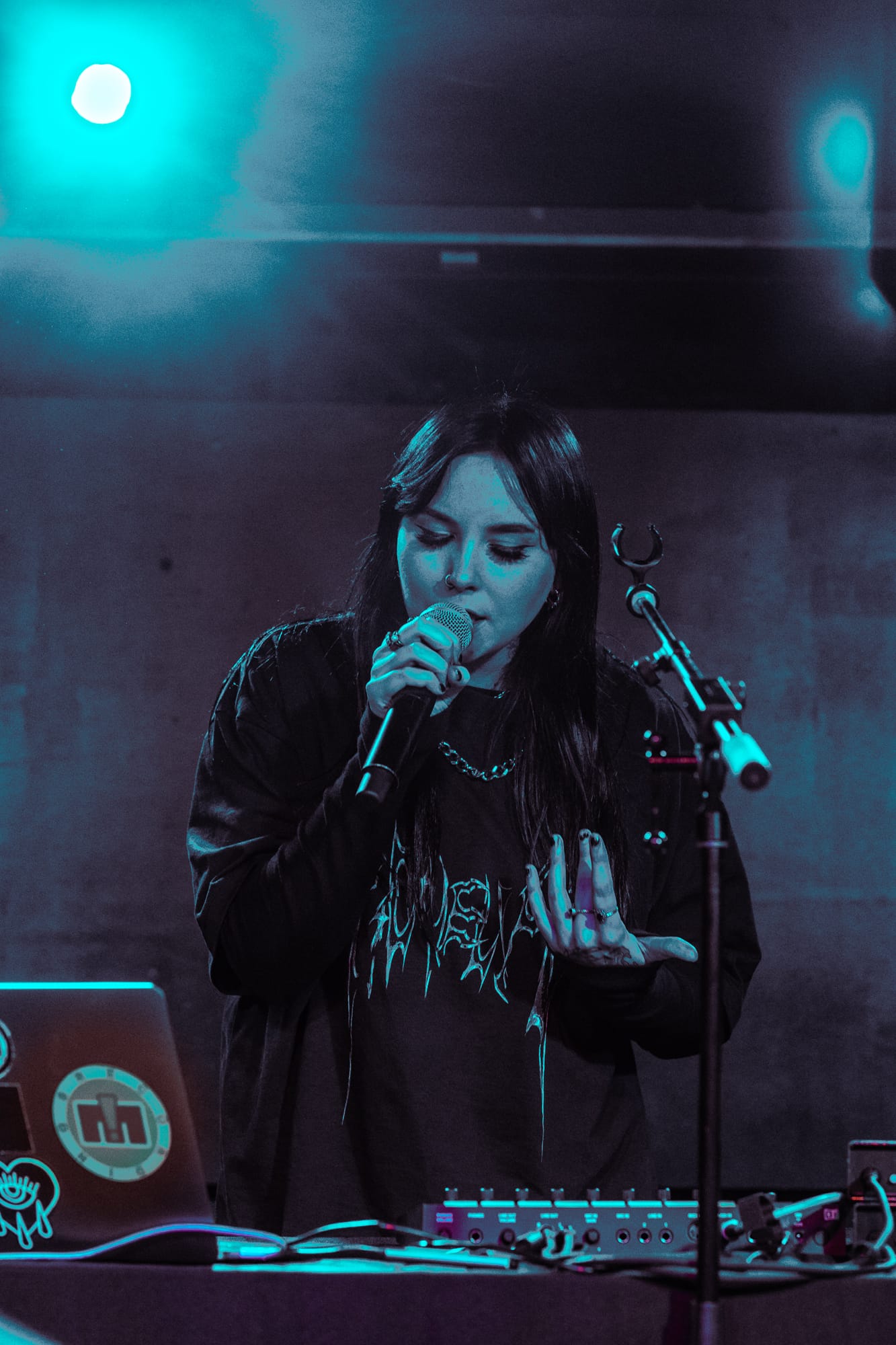 Kenya stood behind a table that had her laptop, a mixing board, and a microphone stand stretching across the table. She smiled and introduced herself to the crowd, mentioning that this was her very first time performing in Toronto, and wasted no time getting into her opening song “After Party Lover”. Kenya mixed her own tracks live, while also singing them, her voice soft, almost like a warm hug, complimented her instrumental tracks perfectly. There was no pause between each song like at a standard show when an artist finishes one song before going into the next, instead Kenya would mix them and seamlessly transition into the next track. “After Party Lover”, transitioned into her song, “Paris” which is easily one of my favourites from Kenya. An interesting take too that I enjoyed was Kenya would describe her thought and work process on each song before performing them so the audience could understand her feelings and background to each track.