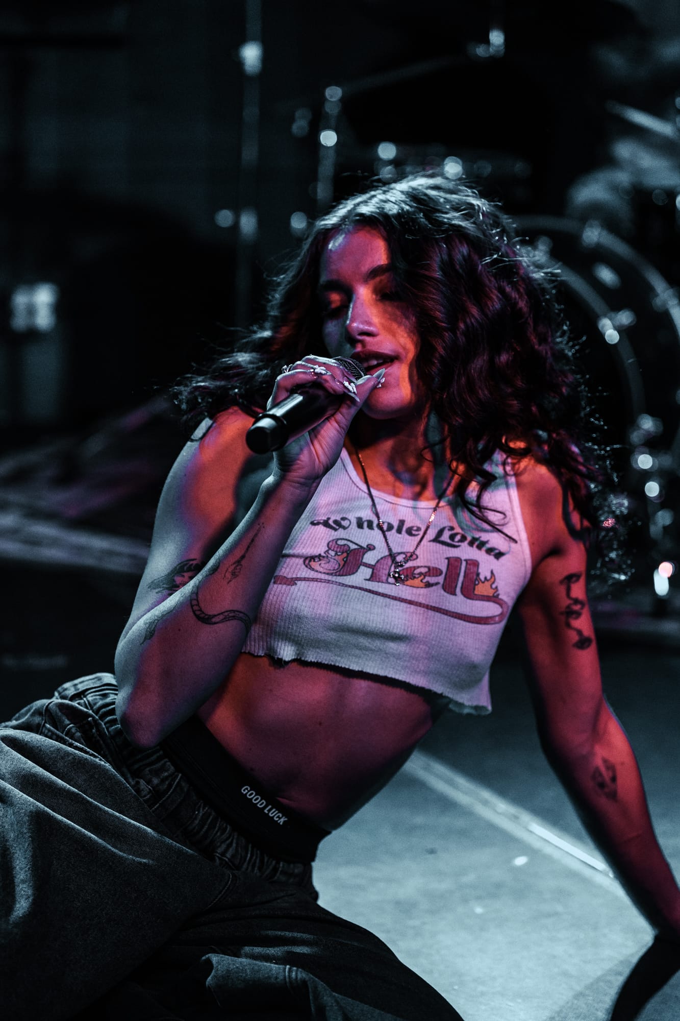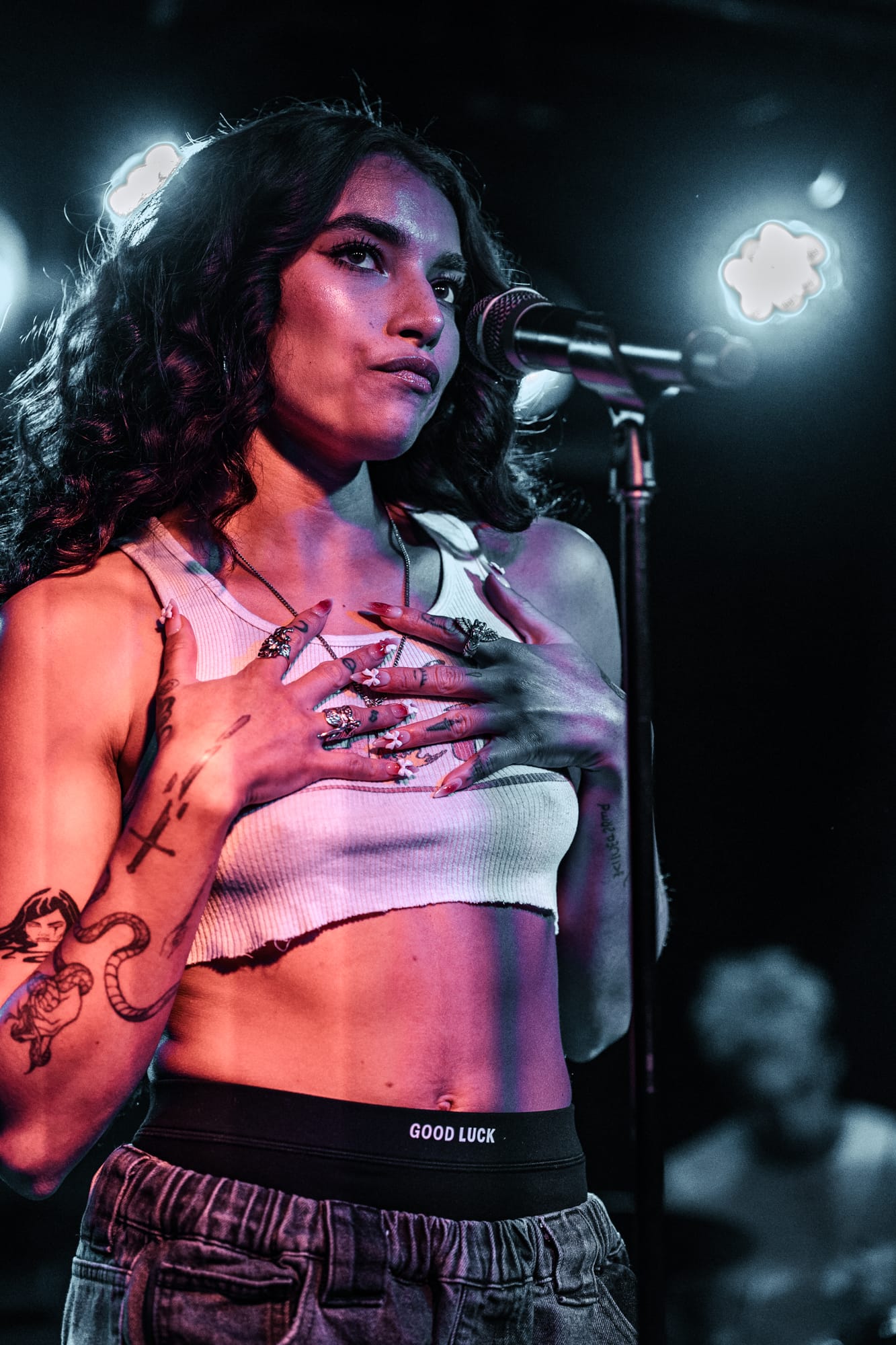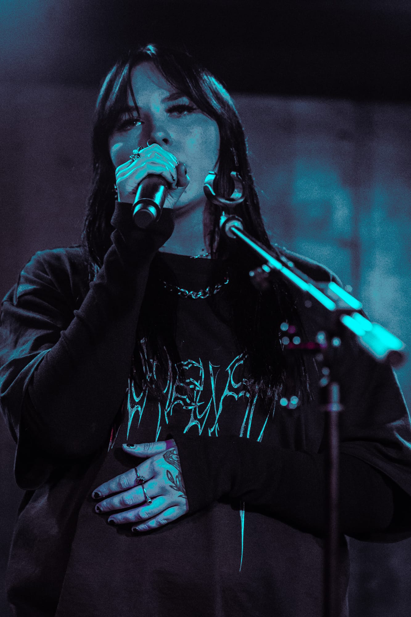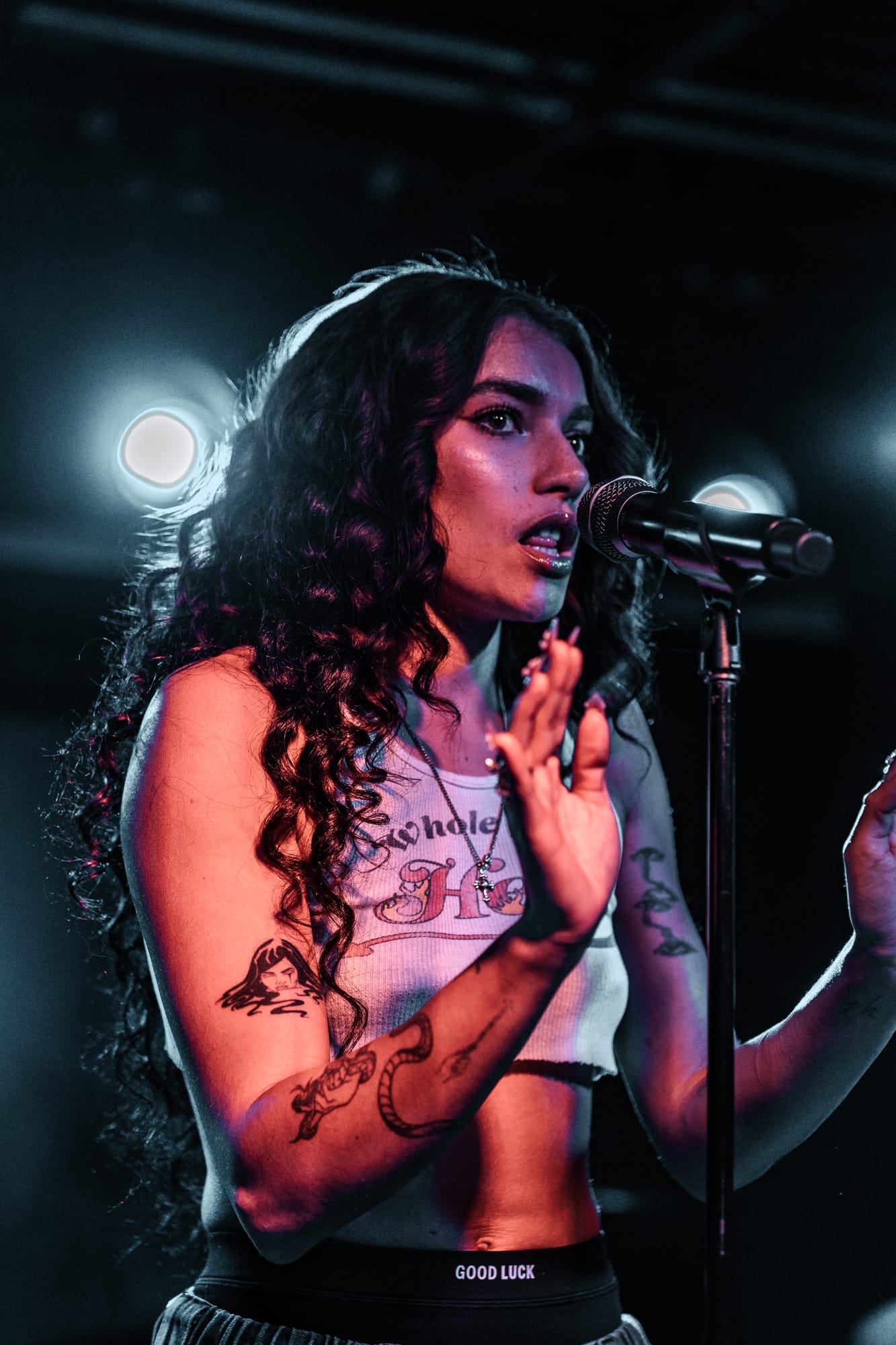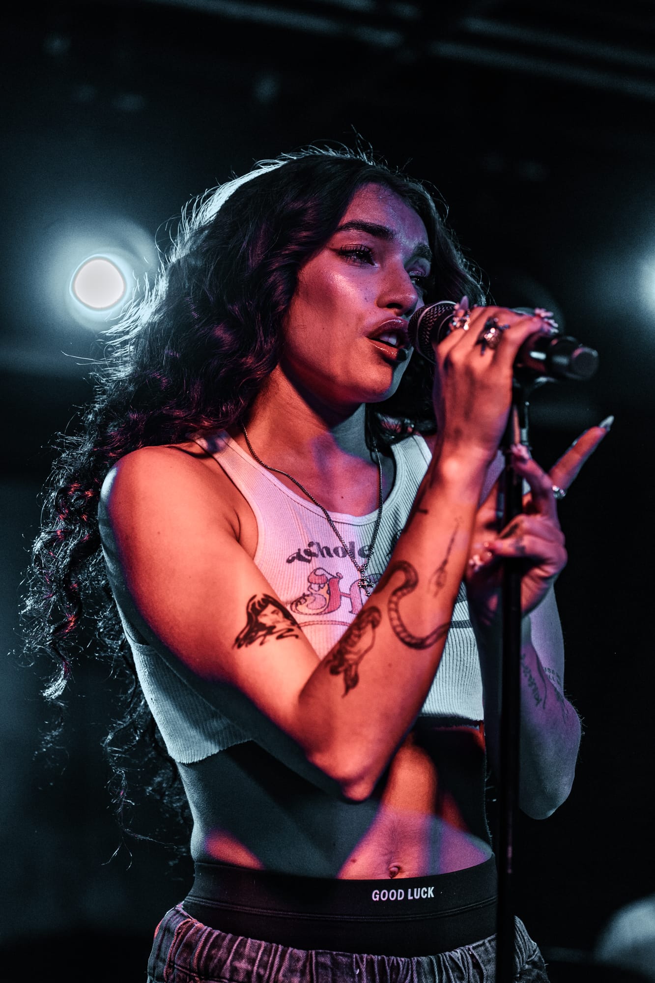 Later into her set after performing songs such as “Sad” and “Only In My Mind”, Kenya spoke to the crowd saying that she wrote all of these songs at home in her bedroom, and never thought she’s ever be on stage touring, performing her songs for people around the world. With the venue being such a small tight knit area, fans could easily speak to Kenya and she would respond. She is a very humble and kind person, and interacted with as many fans as she could during her set. Continuing on, Kenya performed her own rendition of Oliver Tree’s song “Miss You”, before entering her final song of “Strangers”.