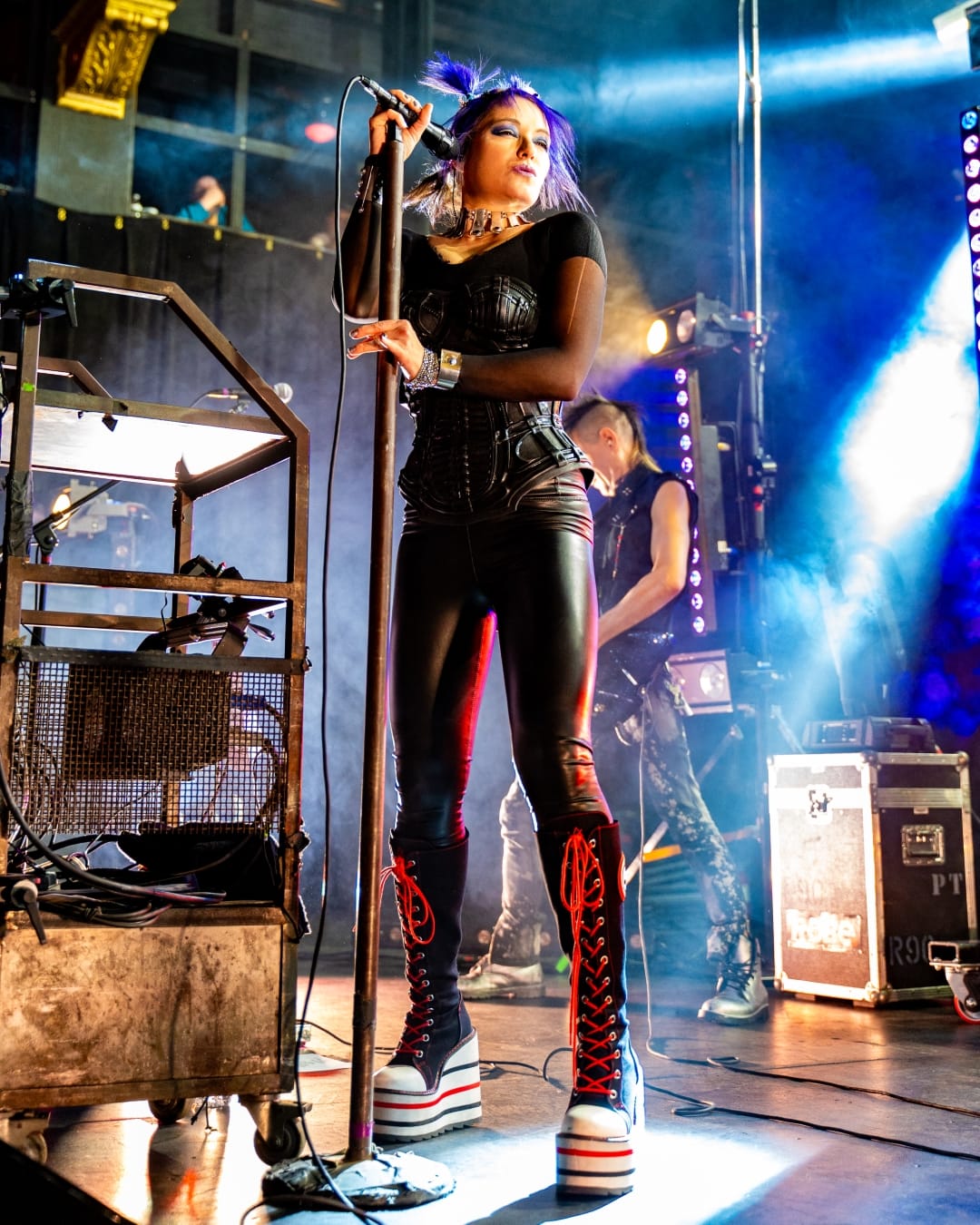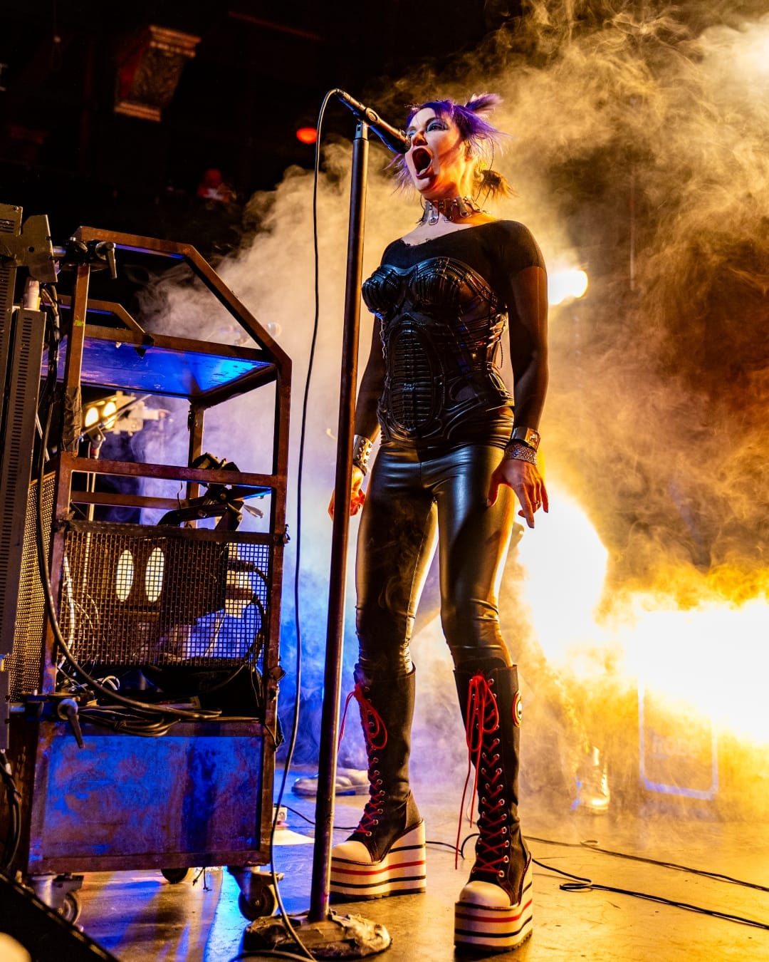 “Airhead” gives Cifarelli the lead vocal time, as well as “Touch,” which, while a softer track, shows a lot of range for both her vocals as well as the group’s sound in general. “Turn the Light On” is another highlight from Let Go, and the politically-themed song features Kapt'n giving vocal samples through a megaphone. Aside from coverage from the latest release, the set does cover almost all of KMFDM’s fan-favorite tracks, even weaving in support from their previous release. I’m glad that newer tracks such as “Hyena,” and “All 4 1” have found their place in the set as well.