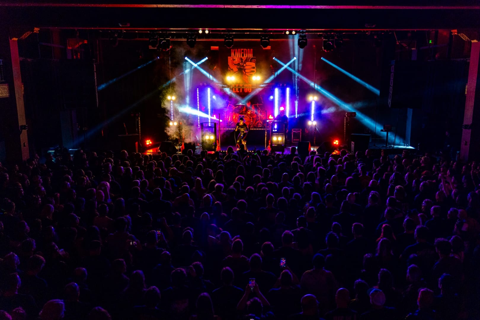 The Rave in Milwaukee always gives KMFDM a warm reception on their tours, and it’s no different for this one, as the venue was already packed before the opening act, Cyanotic. The industrial outfit, based out of Chicago, was a bit heavier than KMFDM, but was still able to pump up the crowd with the thumping beats and electronic sounds.
