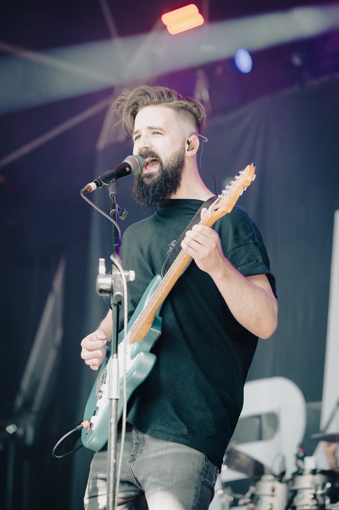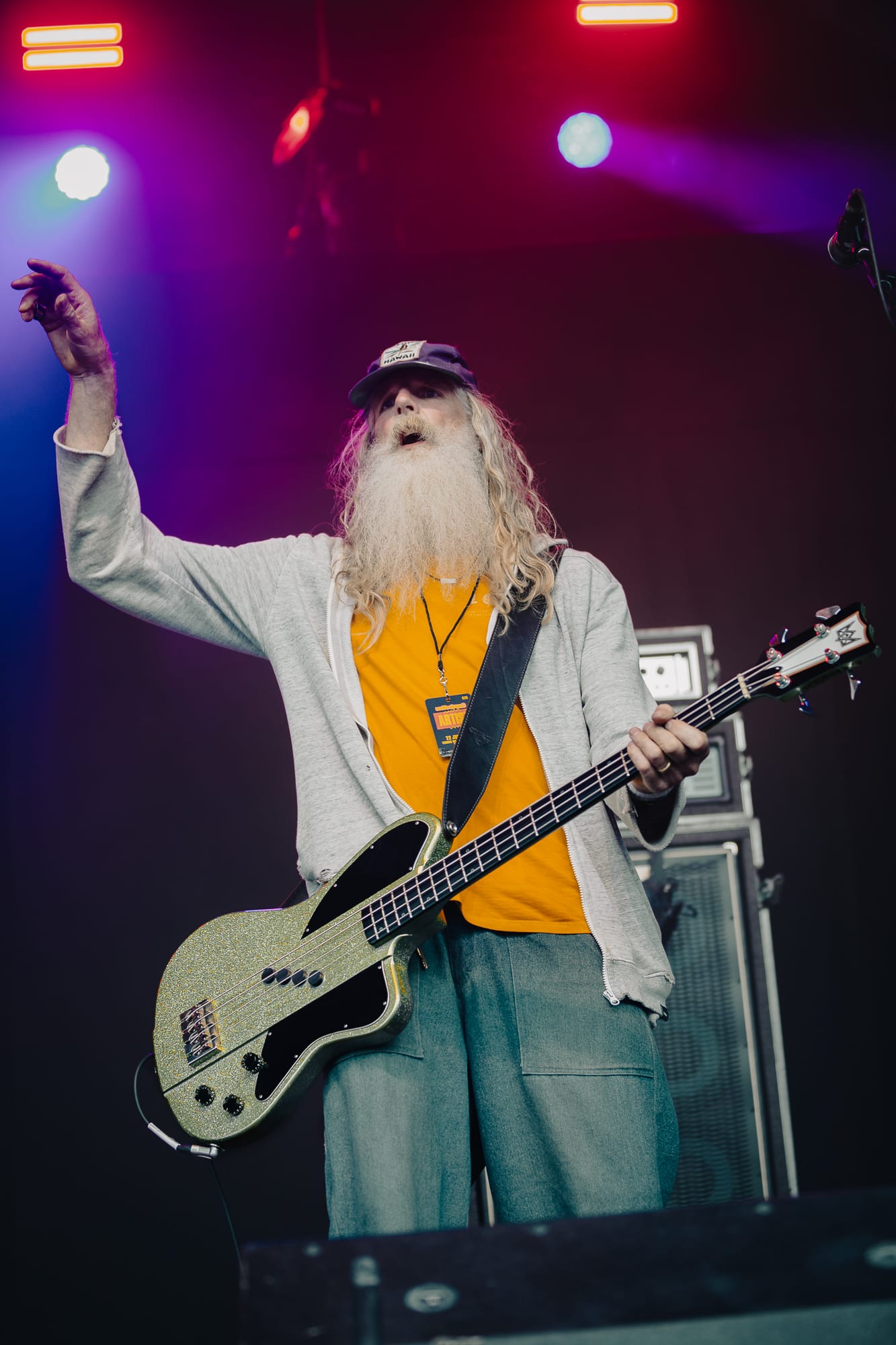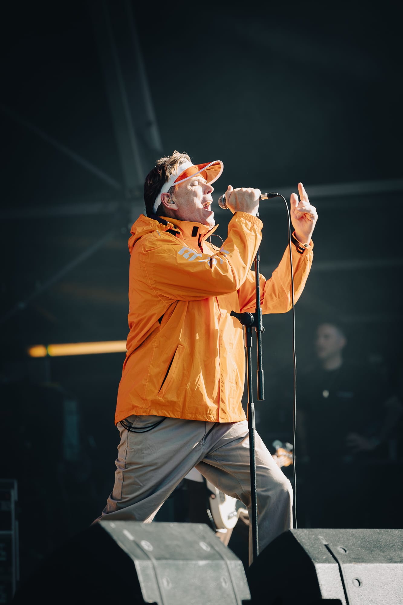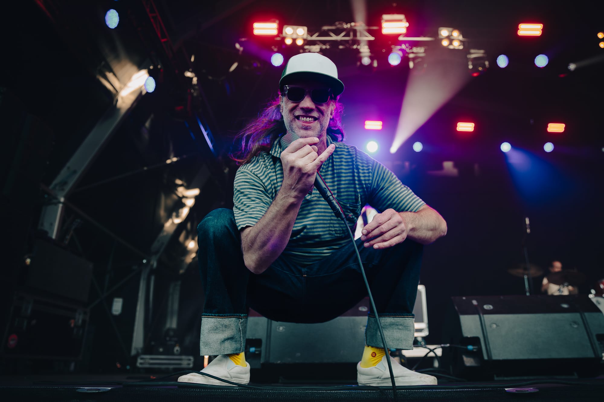 Into the early evening now and the sun is harsh and beaming down directly onto the Main Stage. A appears, with front man Jason Perry, sporting a full ‘Just Eat’ delivery driver uniform, insulated bag and everything.