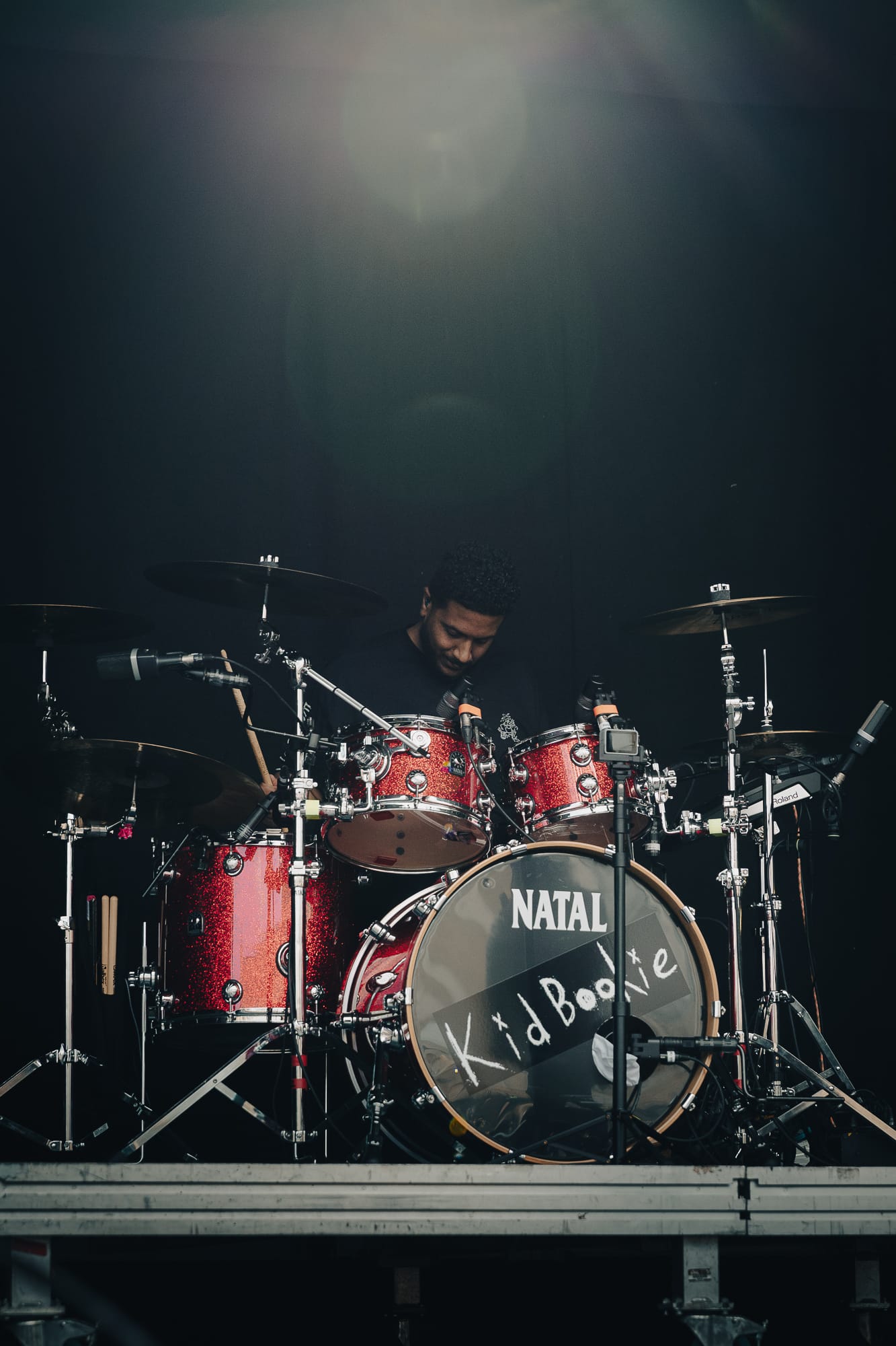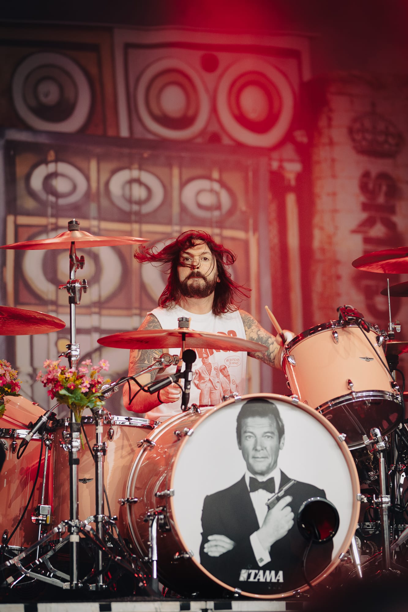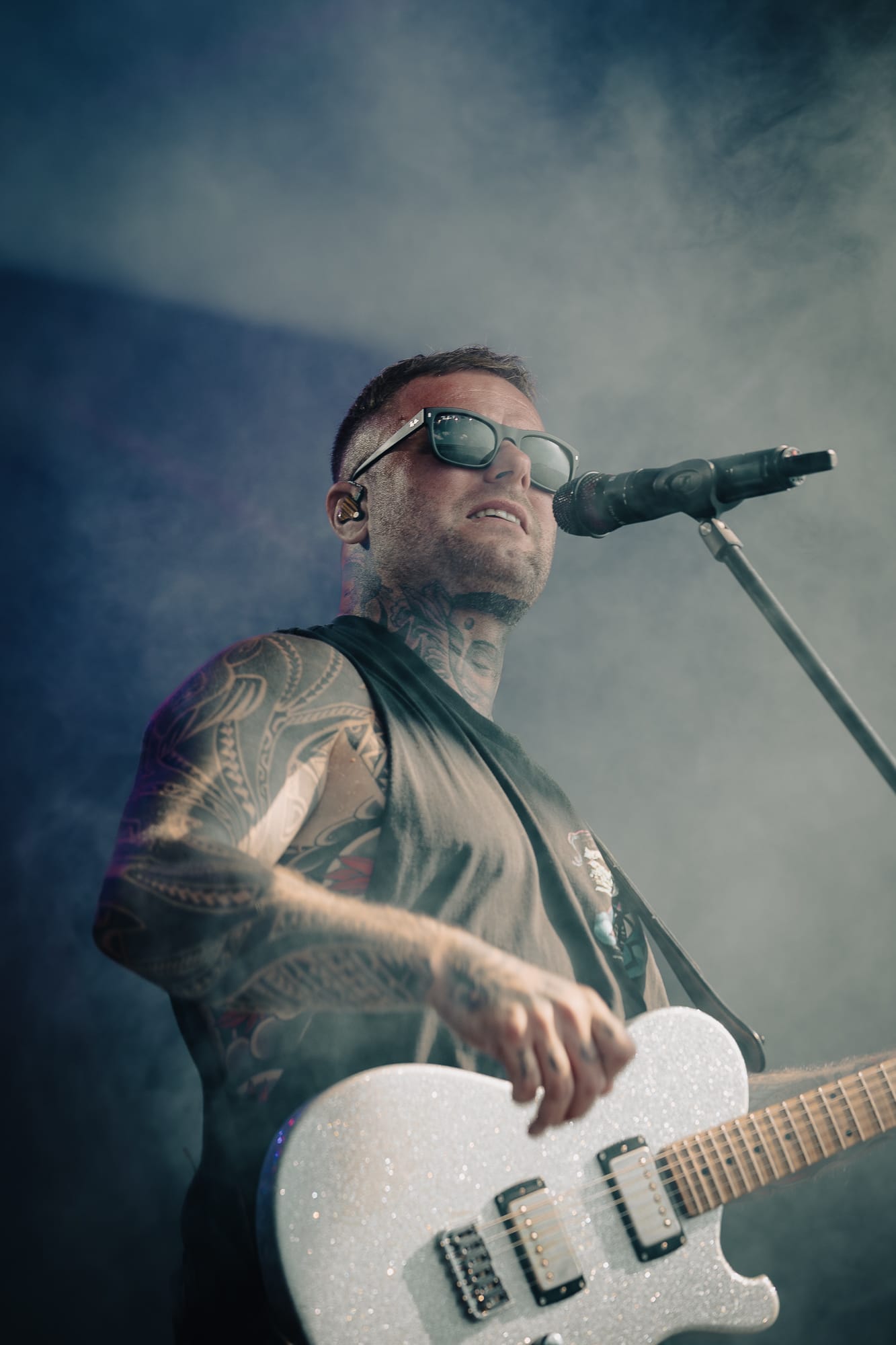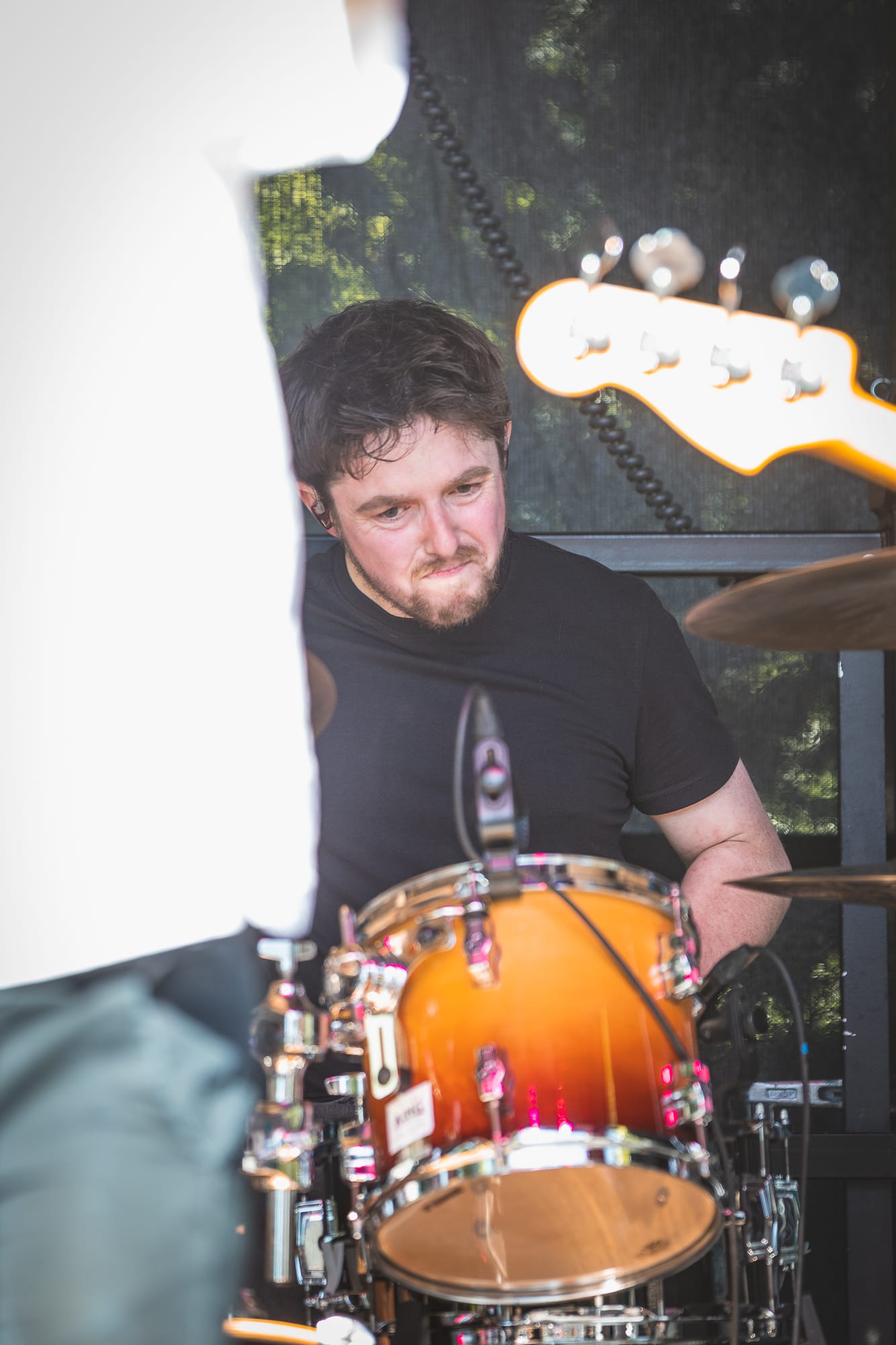 The banterous back and forth continued as he slipped into full Corey Taylor mode, shouting for all of us 'maggots' to get down on the floor, before on the count of 3 …….just staying there and relaxing for a little while. There was also a brief interlude of football chat to fill some time, questioning Gareth Southgate's selection choices and the England team's overall performance at the current UEFA European football tournament, all whilst the audio techs frantically tried to fix an issue with Giles Perry’s keyboard/sampler set up.