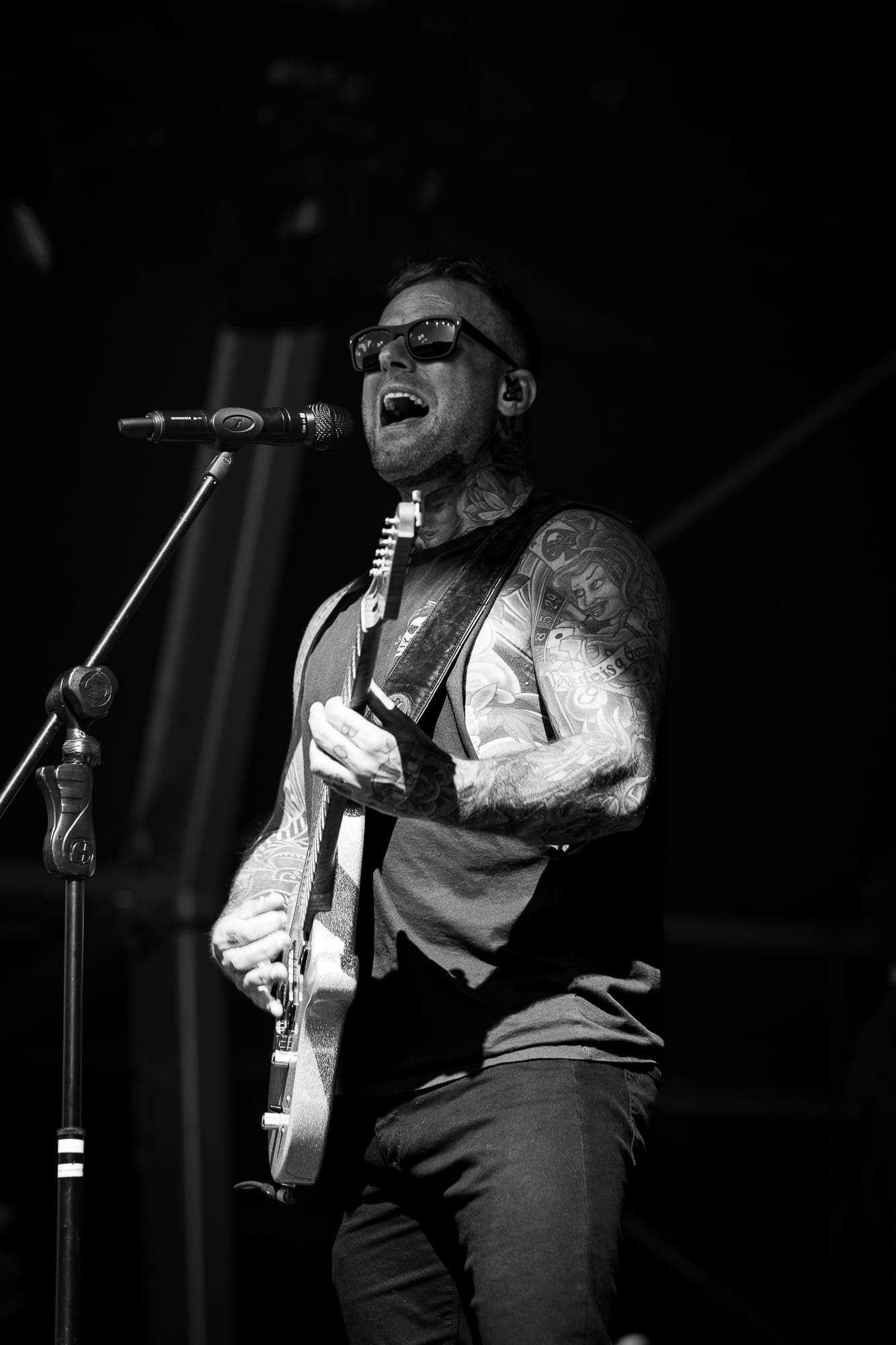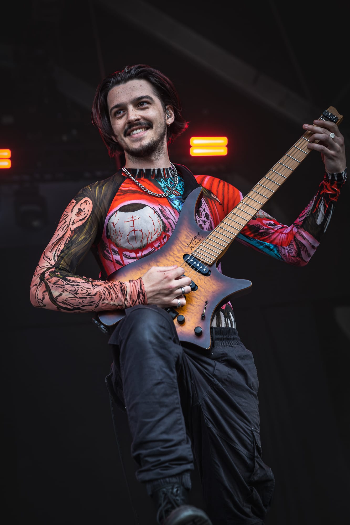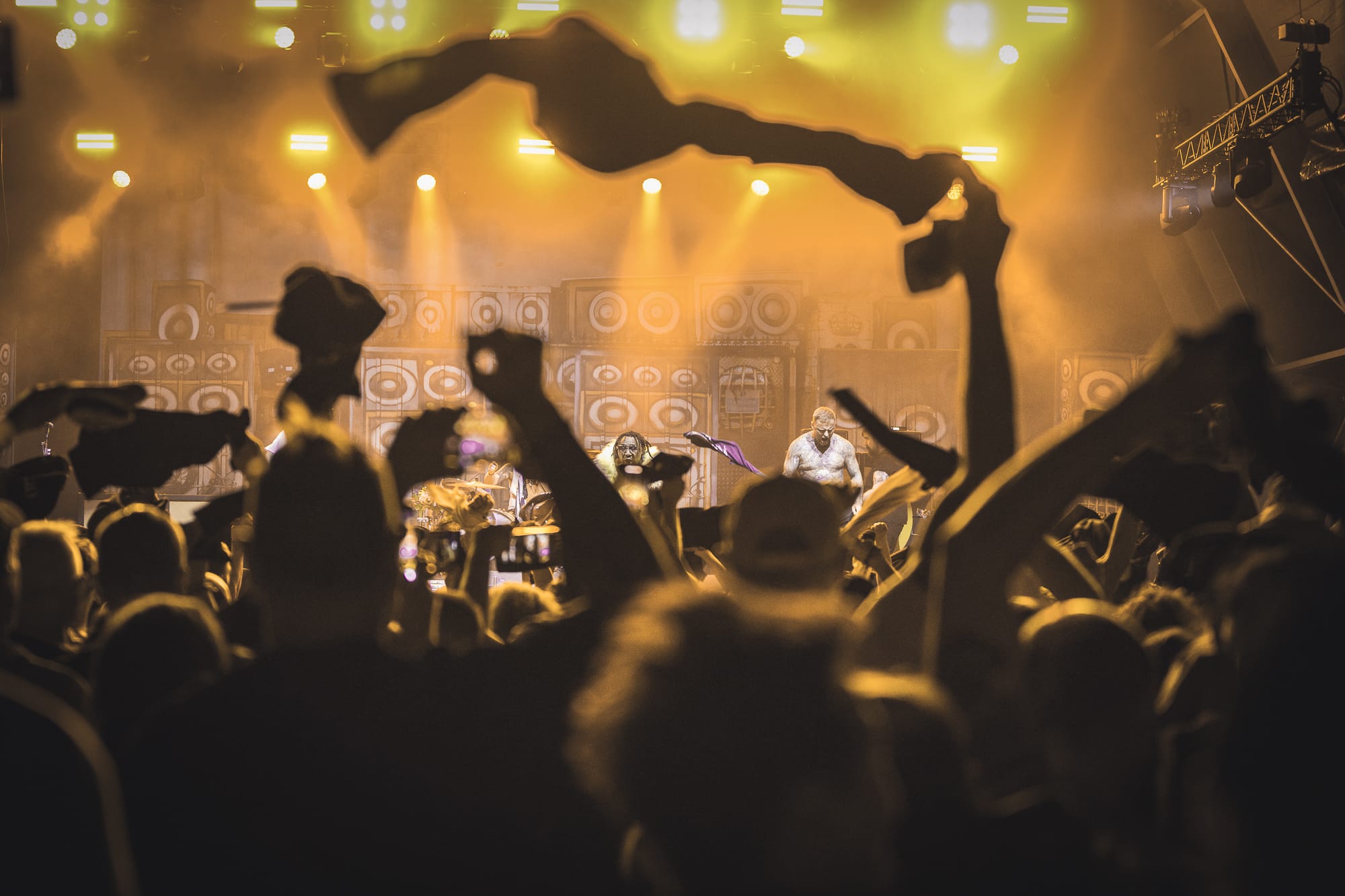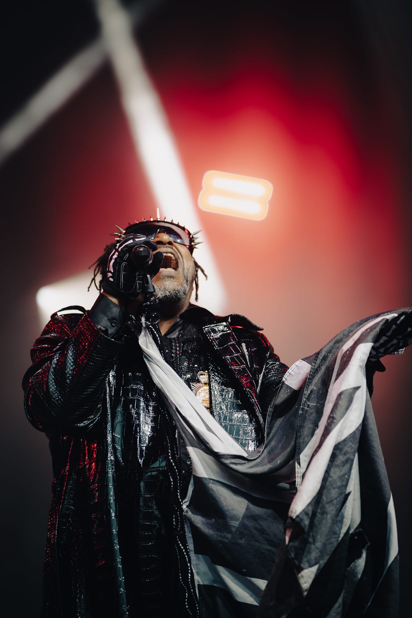 Tension was built in the crowd, the lights flared and the stage was bathed in red, before a remix of the Imperial March from Star Wars played as the band emerged one by one, finishing off with Benji (arguably the most charismatic frontman in metal at the moment) decked out in a black leather trench coat with the massive signature Union Black flag aloft, it was straight into the set proper with a heavy opening of “Set Fazers” followed by “Pressure” and “Rat Race”.