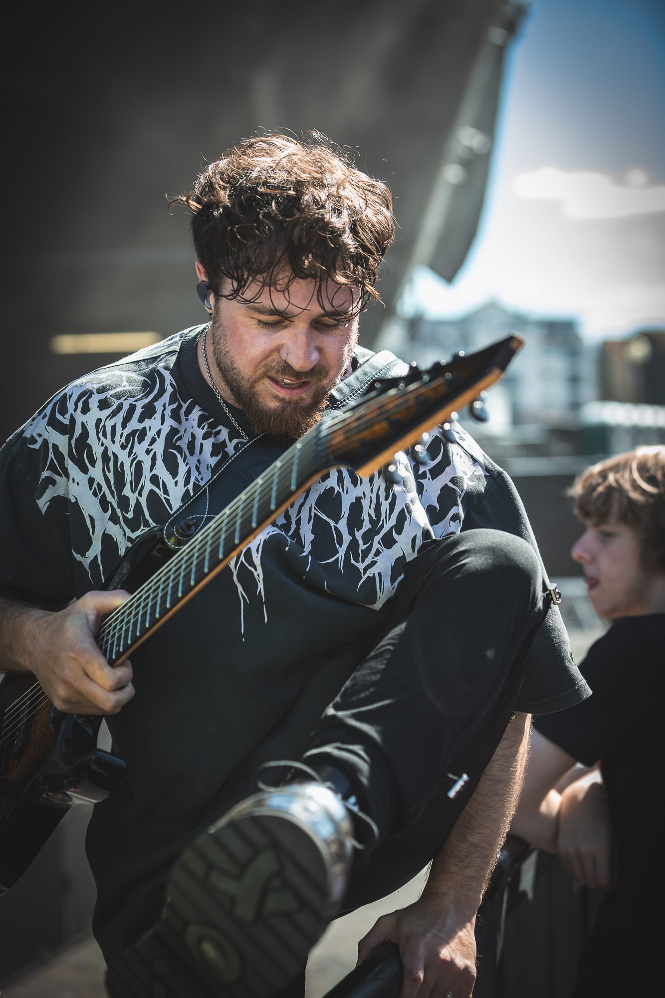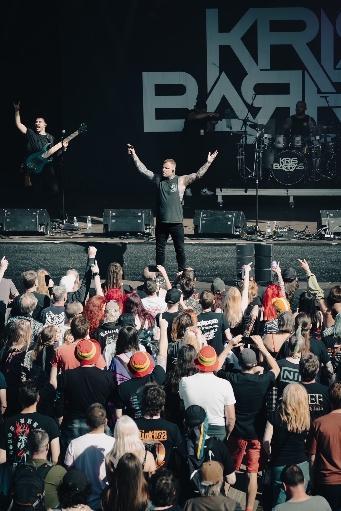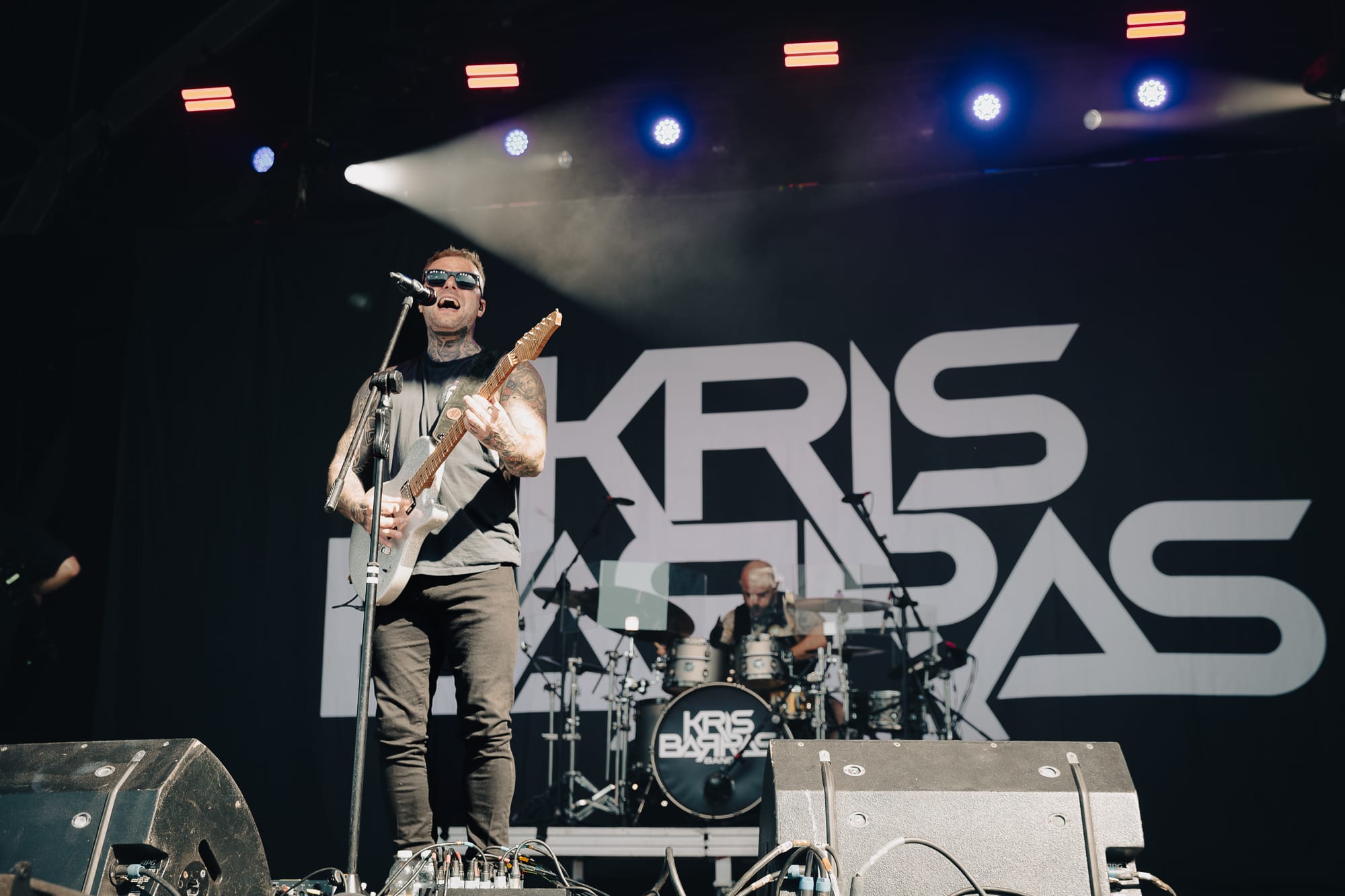 On the back of their recent UK #5 album Halo Effect, the Devon-based Kris Barras Band were greeted by a crowd, now noticeably swelling in numbers. Fronted by former MMA fighter Kris Barras, commanding the stage with his sizable, unsleeved tattooed arms; but if you thought he was skilled at fighting people, just wait till you see him shred on guitar. During this 45-minute set, which treated those assembled to a romp of Blues adjacent Shoegaze-y Rock, riffs were plentiful, some of which were downright outrageous, with at one point Frazer Kerslake provided a very Tim Henson-esq solo on his bass.