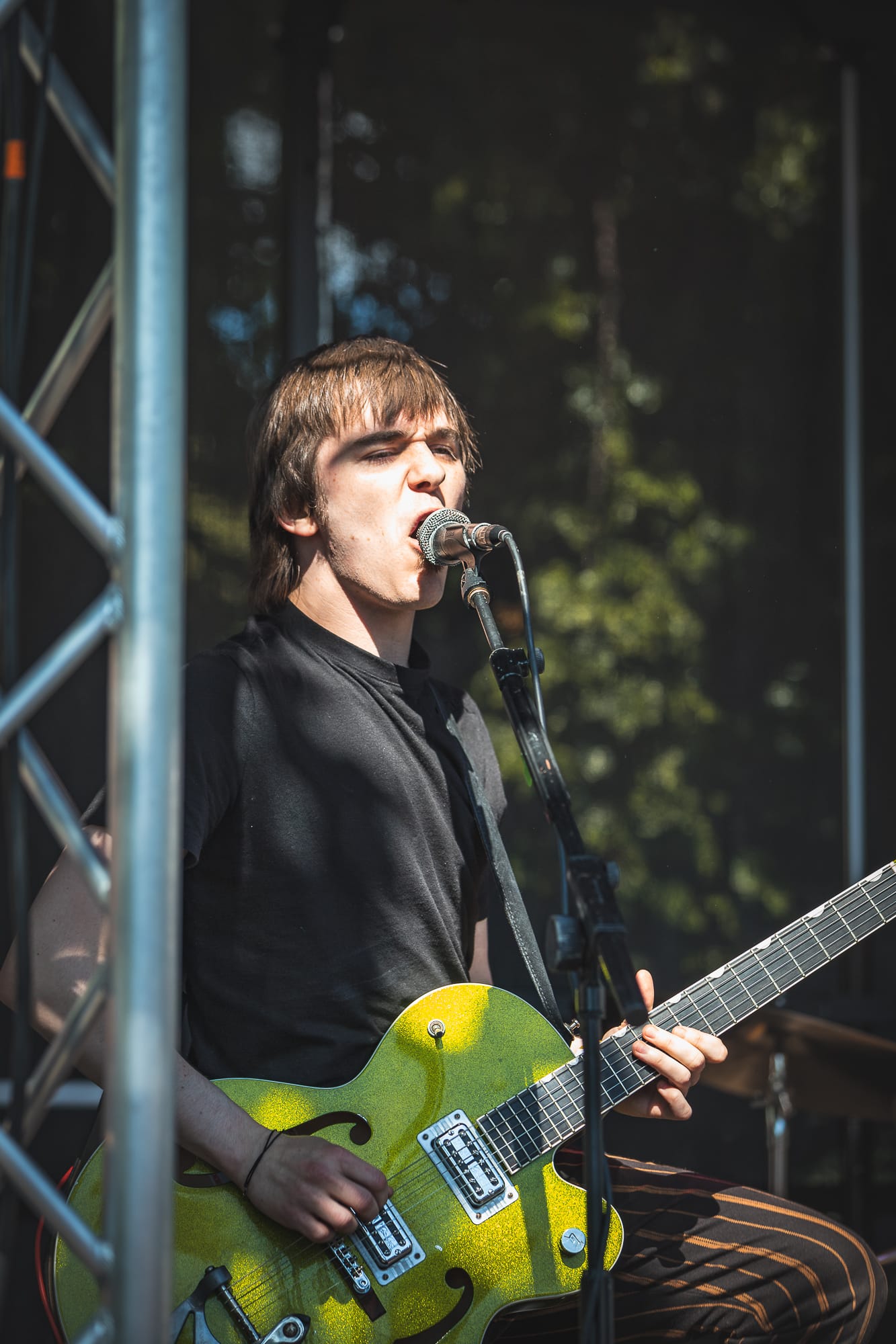 Then, four-piece and local lads Mother Vulture definitely won the award for the biggest performance on the smallest stage. The energy that those boys gave and in return the assembled crowd gave back to them was unreal. The vocal performance from Georgie Valentine is something that truly has to be witnessed in person. With spins, kicks and hair flips a plenty from Chris Simpson and Brodie Maguire on Bass and guitar respectively (I’m sure Matt West would have also got involved if he was not stuck behind the drums).