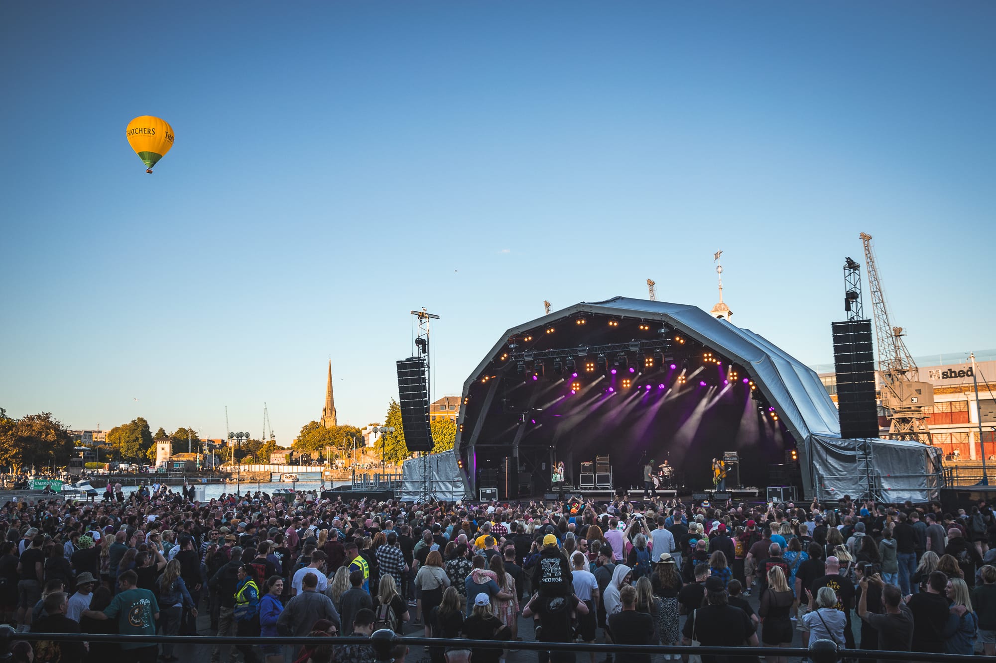 By the end the crowd, who were now packed, in high spirits and in fine voice, were treated to a completely unrelated flypast of a couple of hot-air balloons advertising Somerset's own Thatchers Cider, things could not be more Bristol.