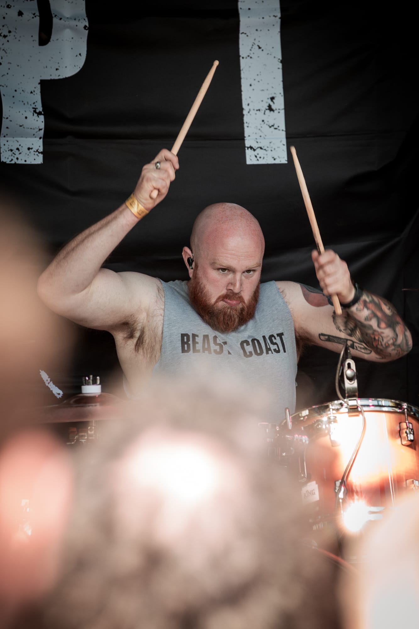 Another set of local lads, Bristol-based RXPTRS drew probably the largest crowd of the day for the Second Stage with their particular blend of Rock, Metal, Punk and Hardcore. A set that was complete with crowd surfing around and on top of the assembled picnic benches.