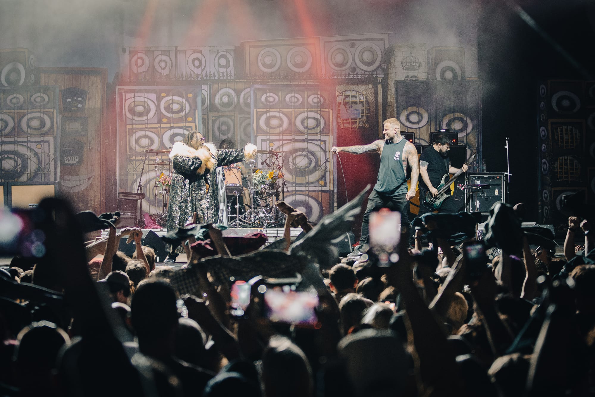 Having been in the business since the mid 90’s, they know that their fan base is now slipping into the bracket of a particular vintage group. Perry orchestrated a 'walking pit' in the crowd, instructing fans to go slower than a jog but a little quicker than Captain Tom in his last days, which went down well with the gathered masses.