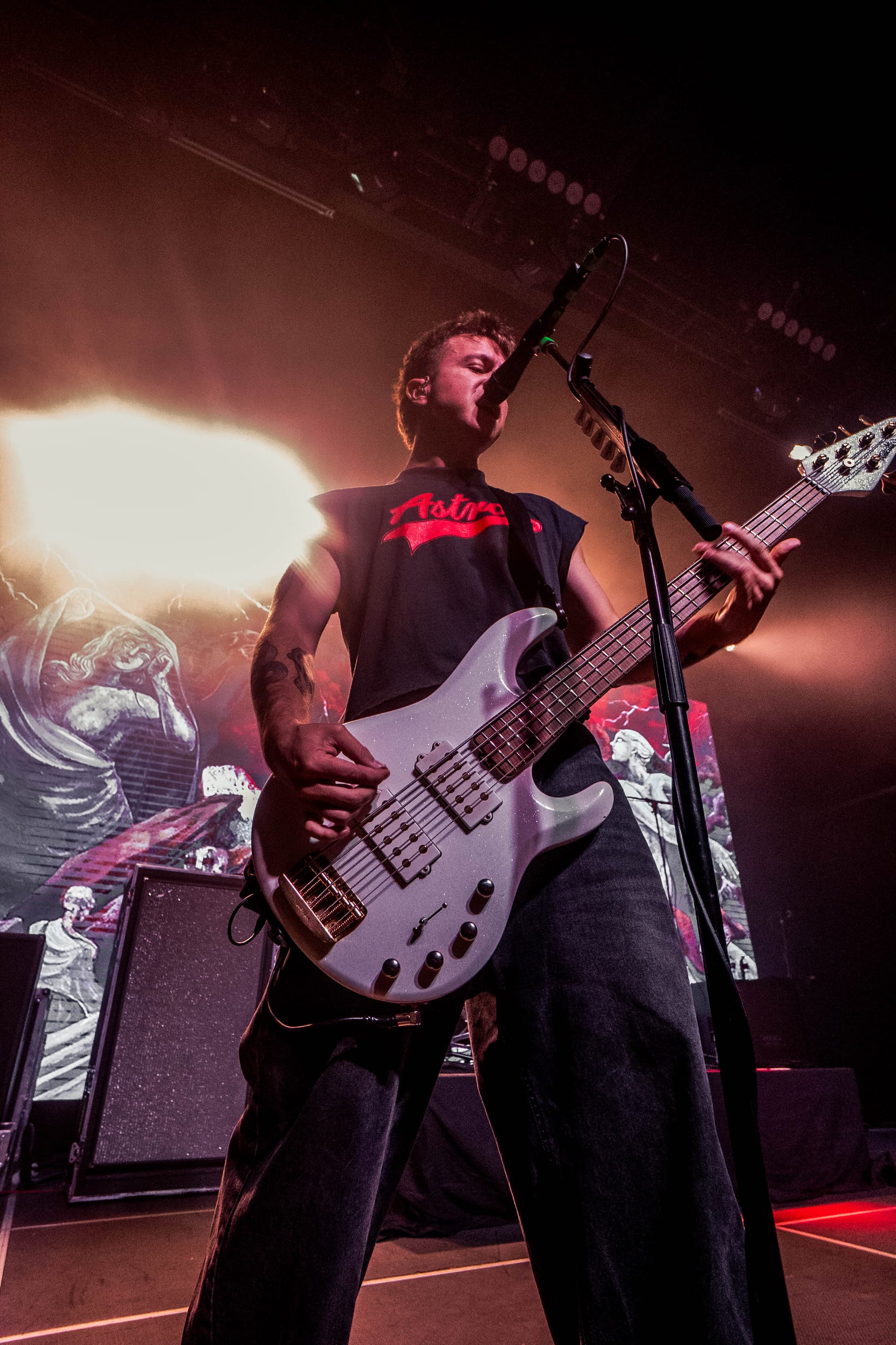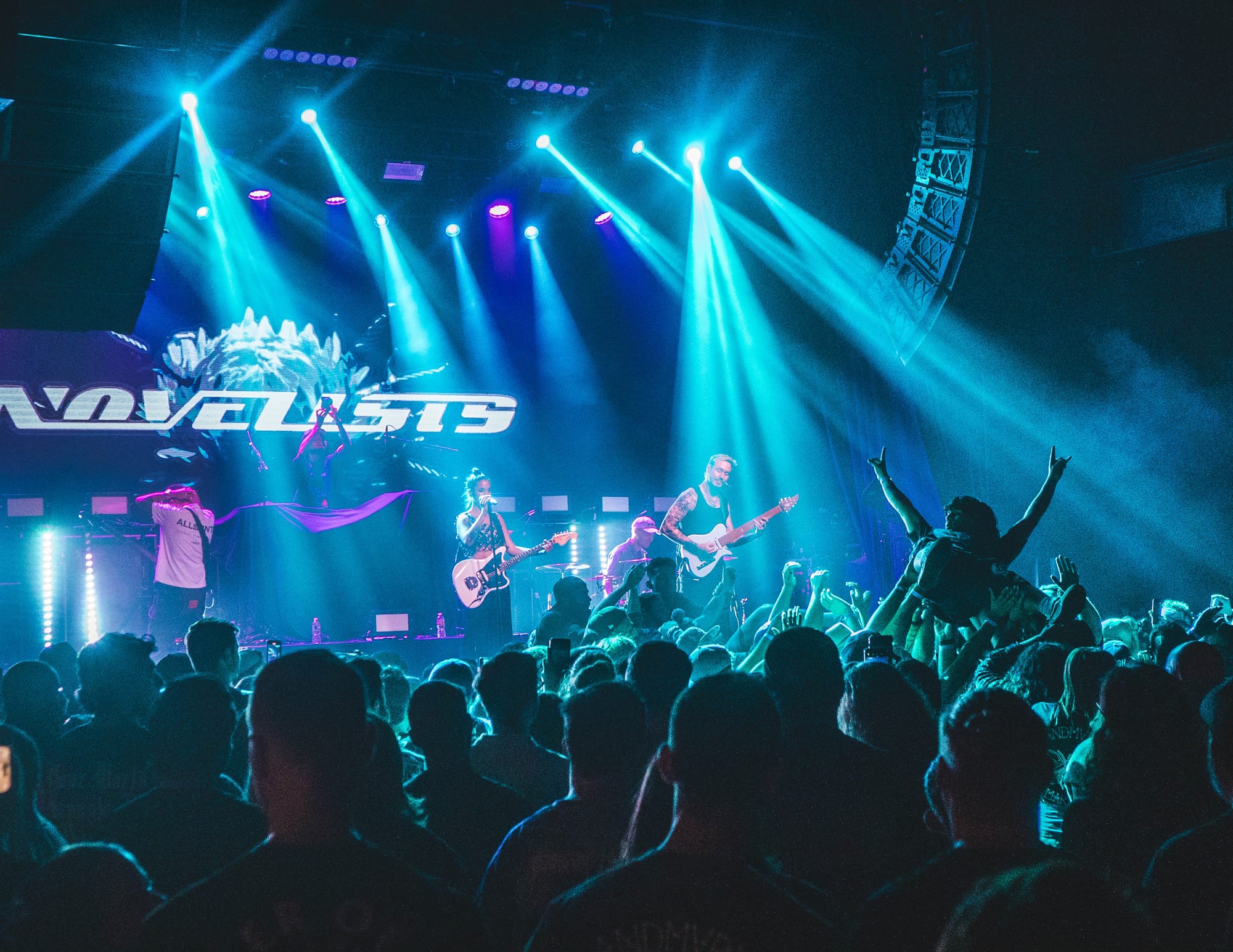 Hitting the stage next was yet another band I could have sworn I have seen perform live before. Yes. I'm talking about NOVELISTS. Their hit single, "Herectic", features LANDMVRKS and showed the true skill of the band. 2023 saw the induction of current vocalist Camille Contreras and with that brought 2025's "CODA", an album that in my opinion has solidified NOVELISTS place as metalcore royalty. Their set was crippled with circle pits, mosh pits, and an endless barrage of crowd surfers that showed Dallas that they are a force not to be trifled with. And just when fans thought the night couldn't have gotten any better, Florent Salfati joined the band on stage to close the set with a bang. I haven't heard that much of an applause for an act in quite some time.