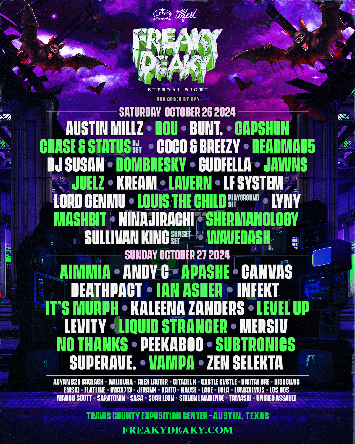 The Travis County Exposition Center in Austin, Texas gets a spooktacular visitor for the second year in a row as Disco Presents brings Freaky Deaky Music Festival into town Saturday, October 26th and Sunday, October 27th.