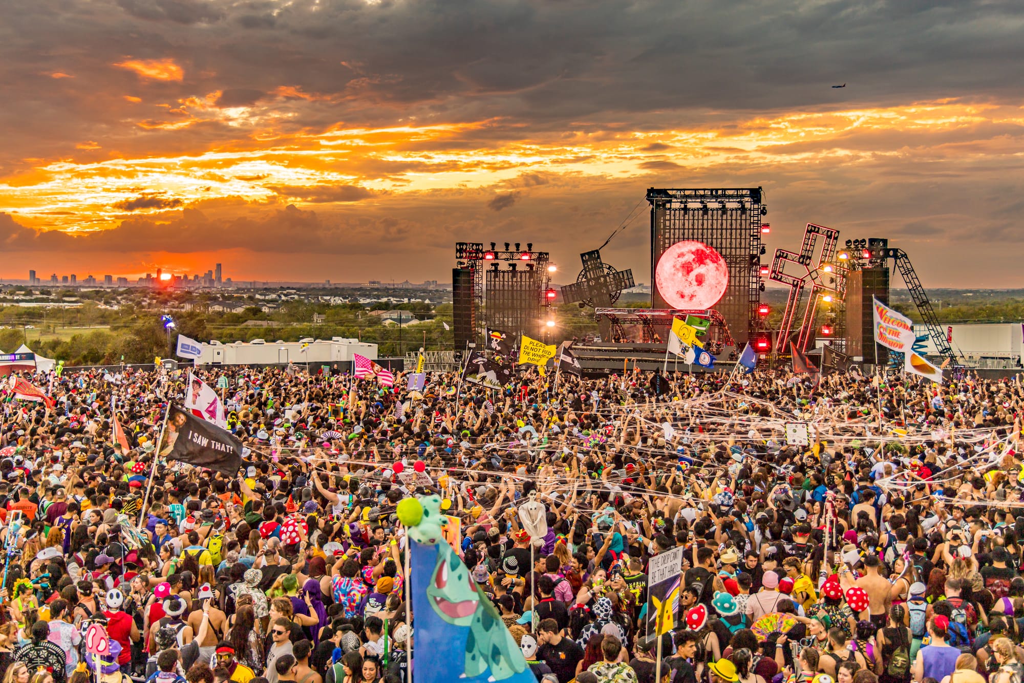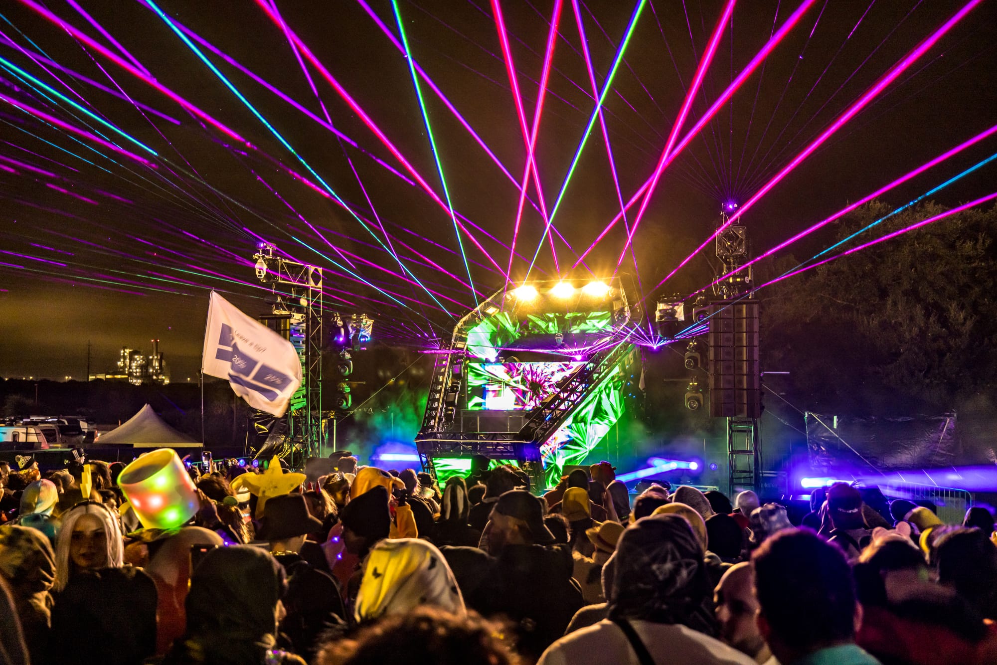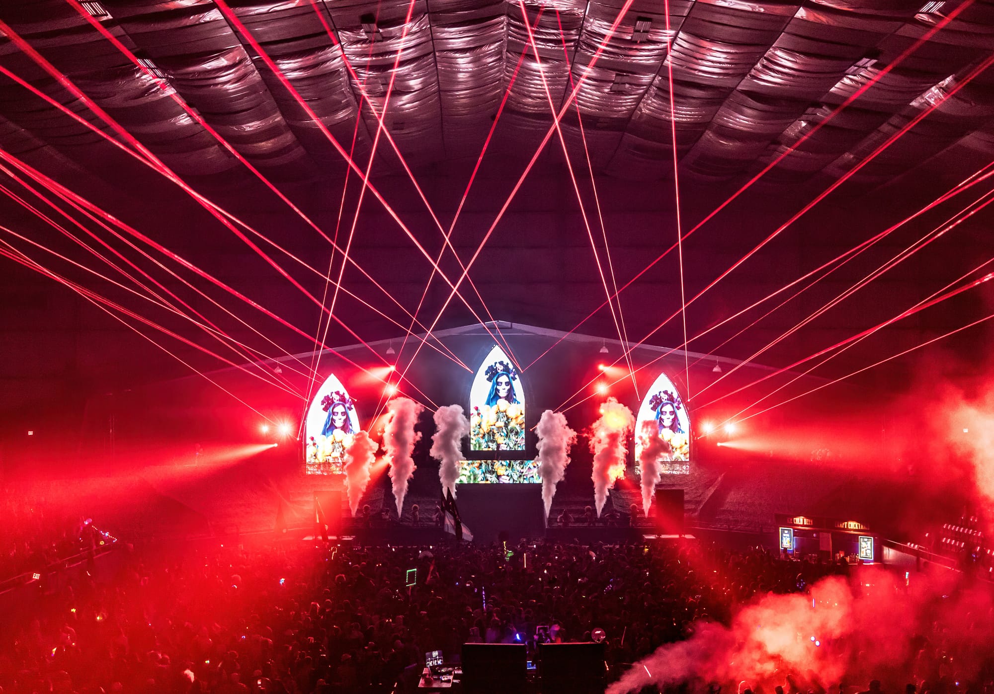 The festival gives a very "rave to the grave" vibe with a haunted house, ominous cinema experience, and a costume contest. All the stages have scary fun names such as The Crypt (shaped like an actual coffin!!) and The Boneyard, accompanied by drone shows, pyro, and, of course, ghoulishly good laser displays.