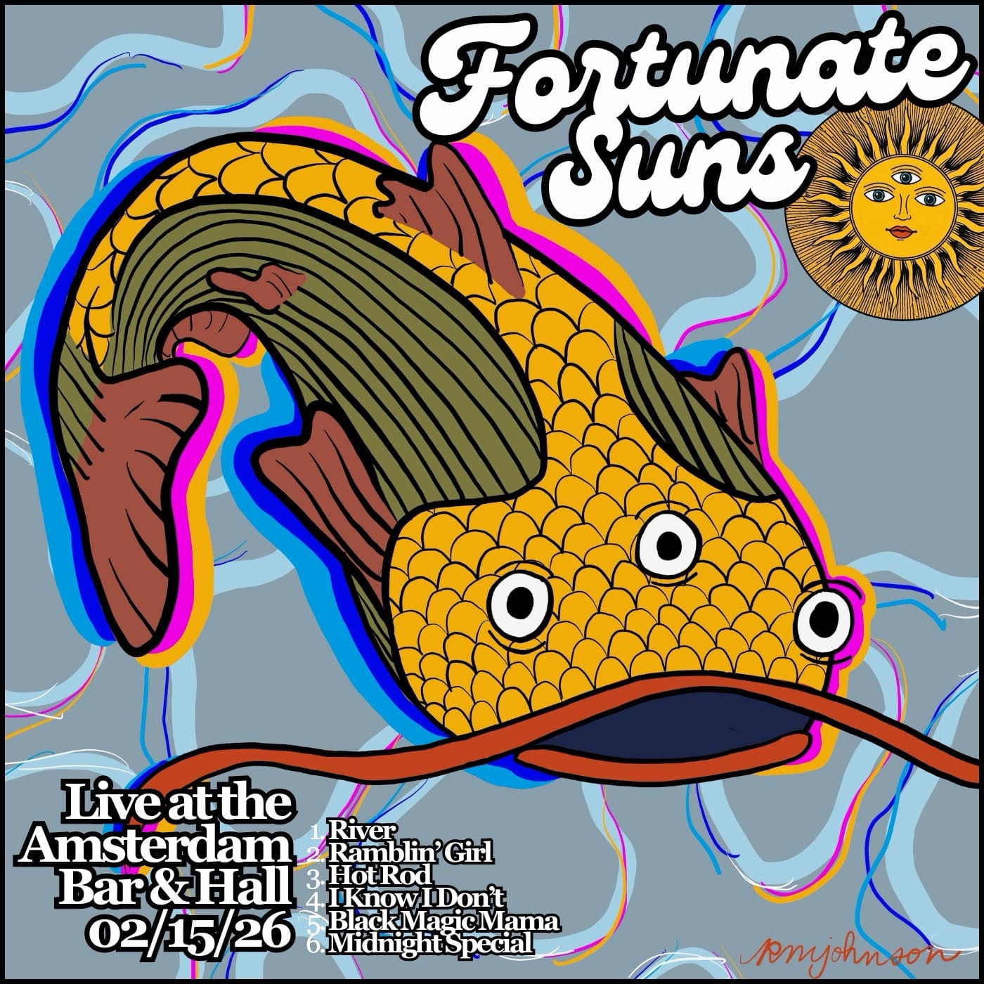 “Live at the Amsterdam” is something that warms my heart to hear. To listen to how these guys have grown in the year since we met them with “Last Train Out” is really something special. The addition of their bassist, Henry, is a welcome one that makes the sound all the more powerful and creates a fullness that wasn’t there before. When speaking with the band, they told me that this performance was the highlight of their year, and I can see why. It’s positively electrifying, a runaway spark that I’m sorry to have missed seeing in person. The album doesn’t drop until April 4th, that is, except for this rendition of "River," which comes out on the 20th of this month, so for the time being you’re just going to have to take my word for how good it is, but if that won’t do for you, you can always catch the band at one of their shows to see what it is I’m raving about for yourself. In the meantime, I would like to leave with this little message from the Fortunate Suns to all of you. “Just thank you. We’re all so grateful for everyone who has been a part of the Fortunate Suns’ first year and their continued support. We’re excited to keep this train rolling! Love, Andy, Austin, Henry, and Ty."
