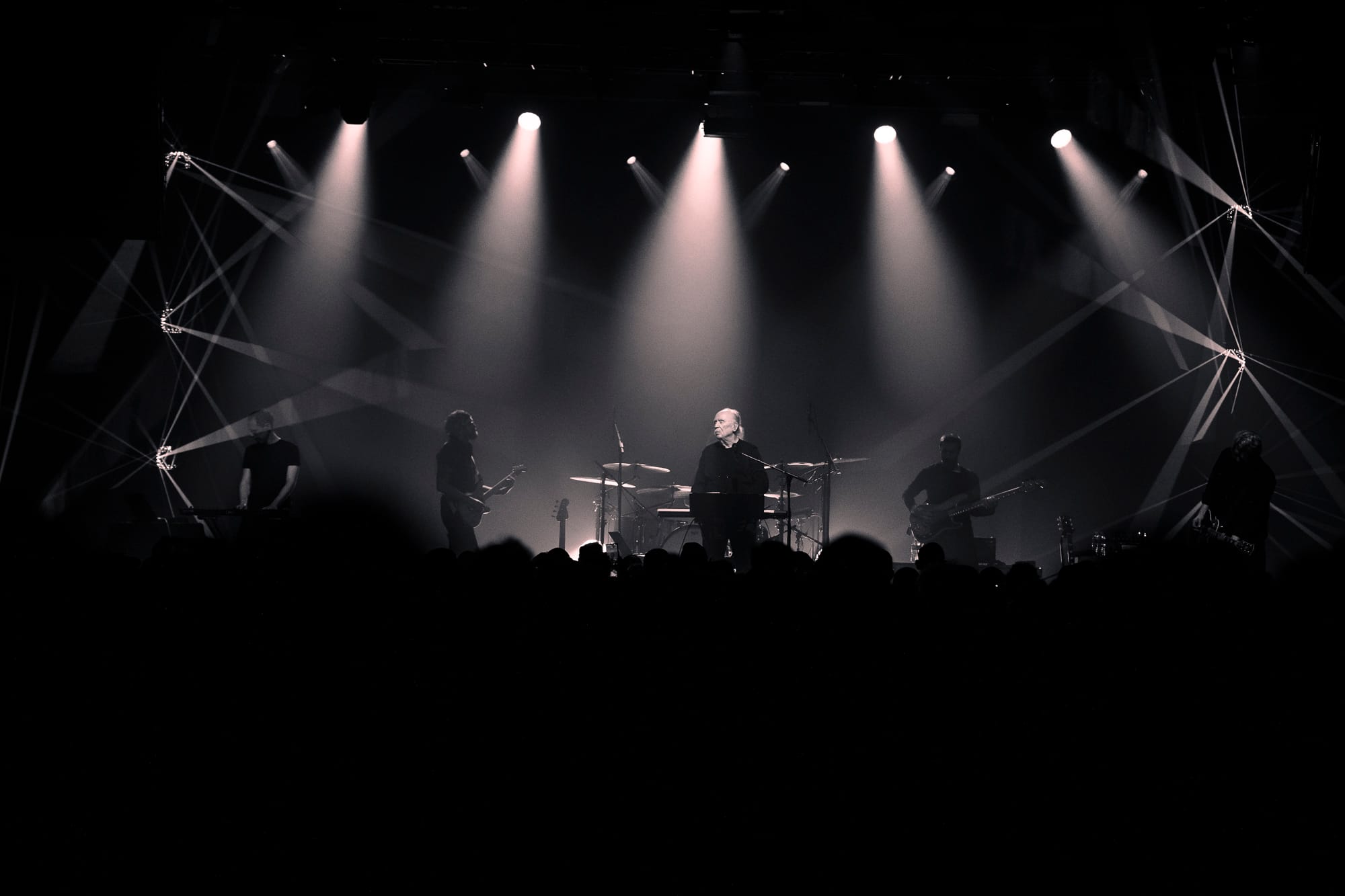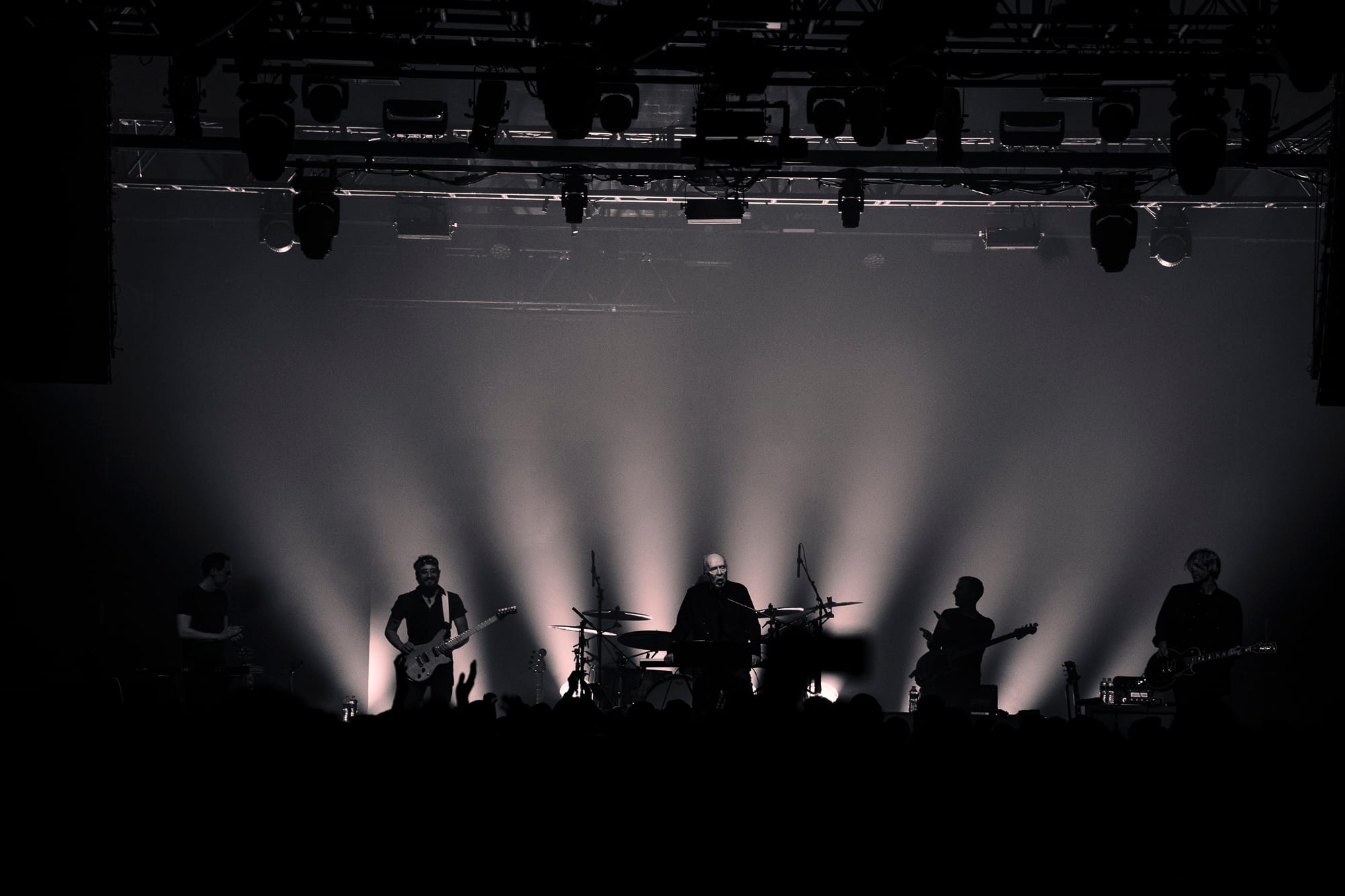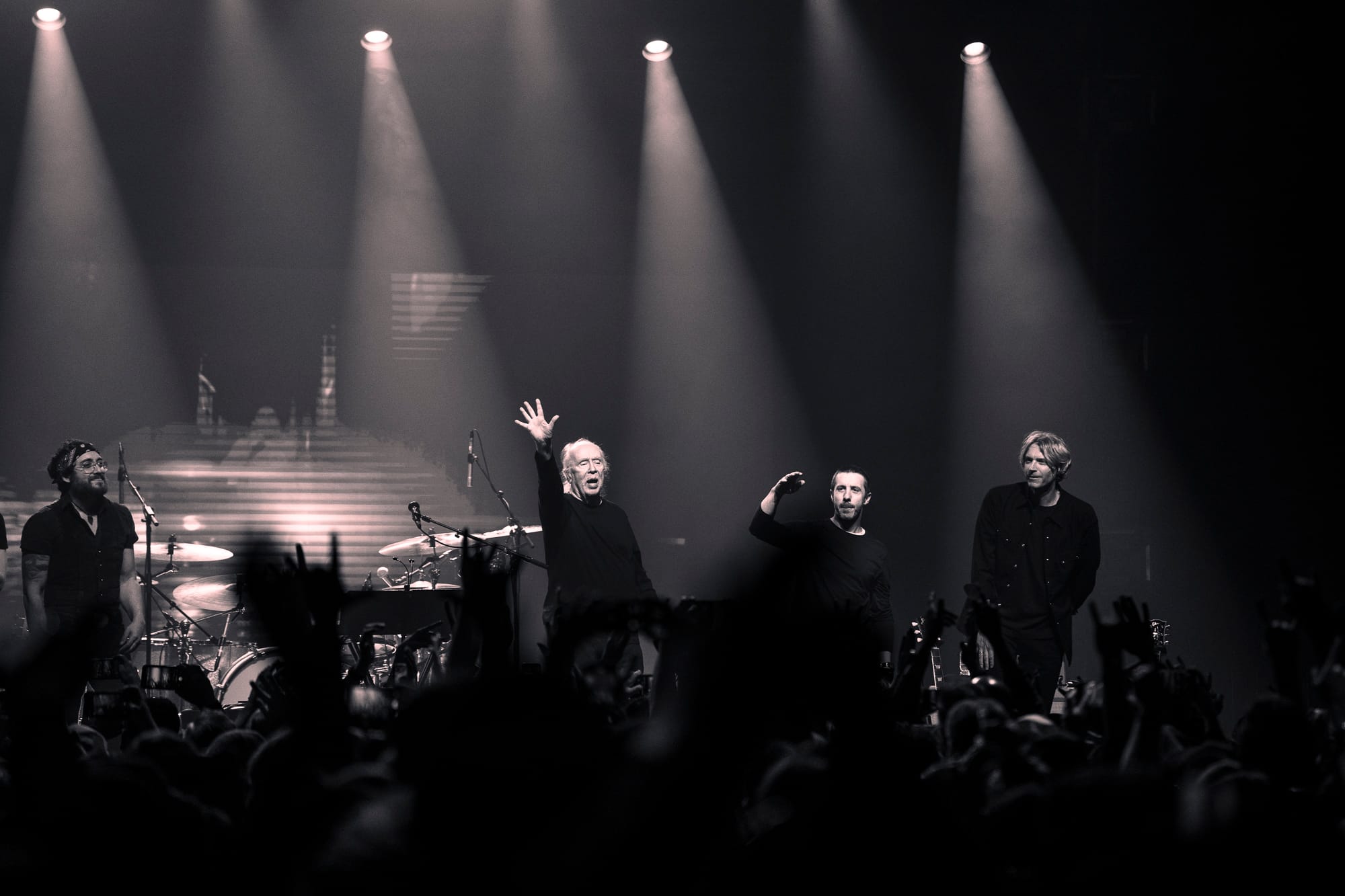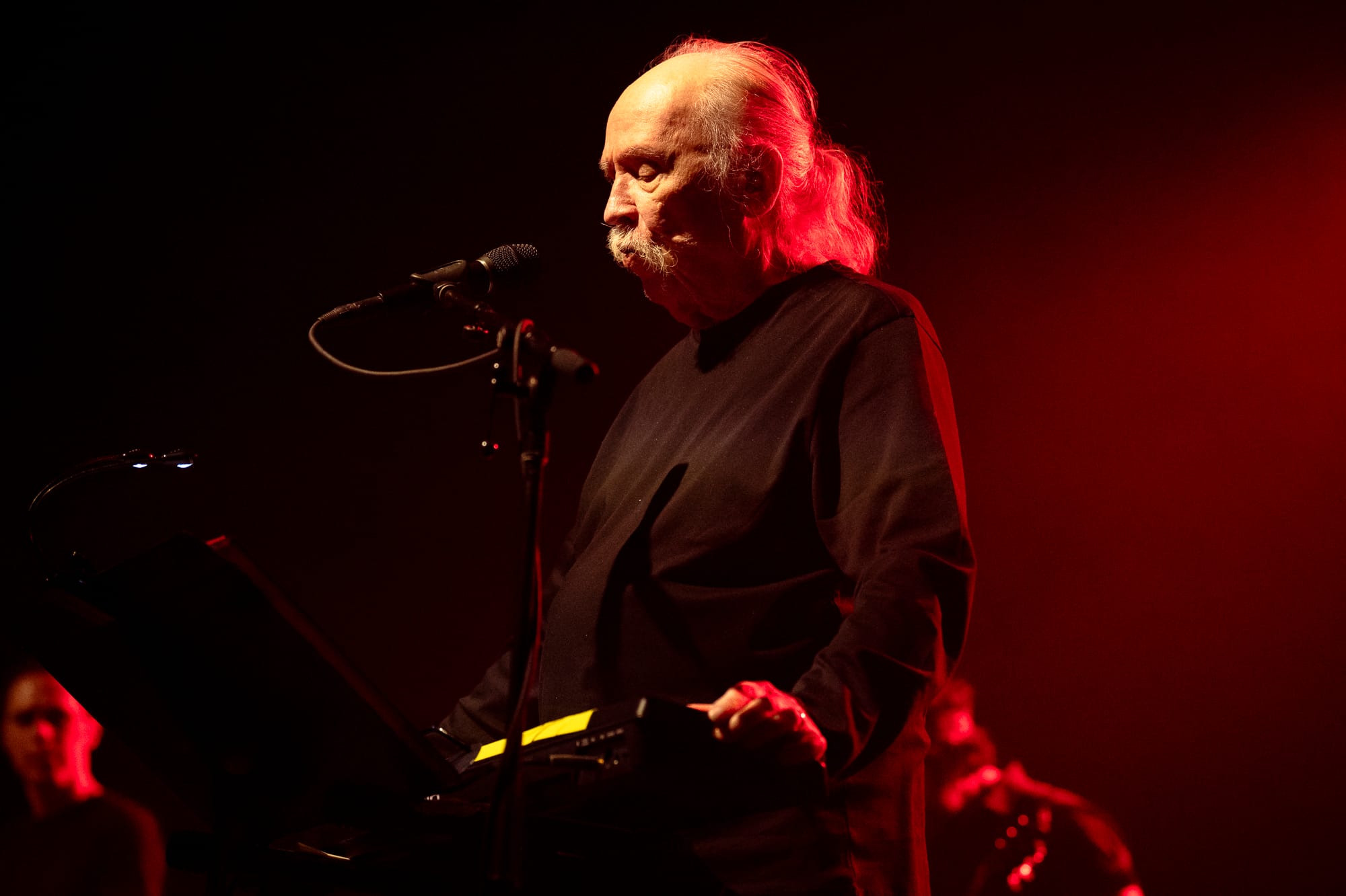 The beams of red light that stood tall like columns pressing into the crowd lit the interior of the brick factory in a uniform hue. Reverberating off the walls rang John Carpenter’s voice, enthusiastically reciting the “TV Broadcast” of his 1988 film “They Live,” "we are like a natural resource to them, deplete the planet and move on to another." Then, in his first live show since 2018, Carpenter appeared from the side stage, accompanied by his five-piece band. With a bouncing bass line, sliding guitar trails, and a steady drum beat, they’d debut their first live performance of “Wake Up” from the same film. A debut which was quickly followed by another for “Last Rites” off of 2024’s “Lost Themes IV: Noir” album, written and released with touring members Cody Carpenter and Daniel Davies.