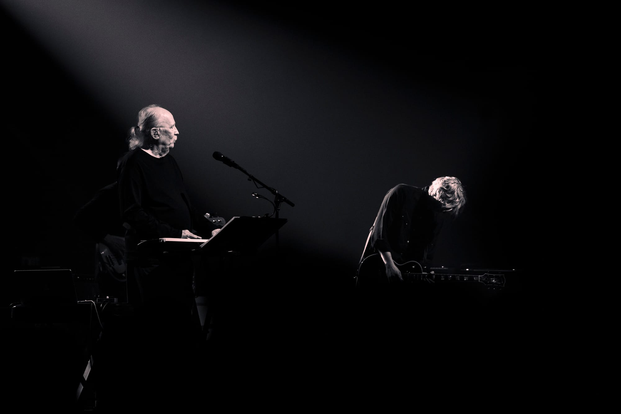 Although now the ripe age of 77, John Carpenter stands proudly on stage, slamming power chords that fuel the music’s heart. Looking over to his right, he then gets to watch his son Cody Carpenter on Lead Synth participating in his father’s legacy by either playing the songs he wrote over a prolific career that shaped the landscape of horror media, or playing the music he created with his father, ever pushing the scene of ambient synthwave. The whole band is tight as a group, routinely impressing me with audio recreations of recognized themes that caught my ear while working through the thick crowd and stopping me in my tracks, hijacking my full attention.
