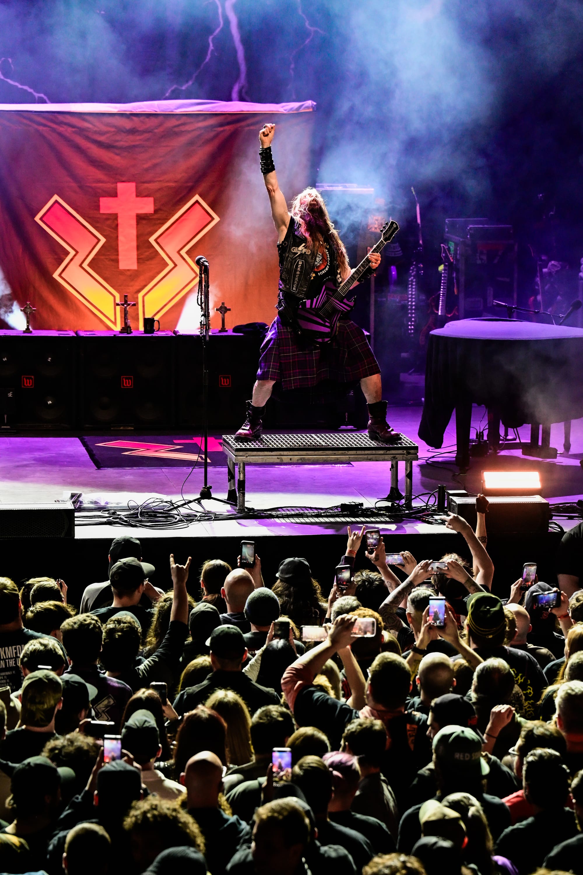 The emotional core came mid-set: a three-song run that seemed to have more weight than riotous fist-pumping numbers. A cover of “No More Tears” detonated the room, with Wylde stretching the outro into something both celebratory and reverent. When he told the crowd that Ozzy would be proud of them, it didn’t feel like a throwaway line. It stuck. The next track, “In This River,” which came with visual tributes to Vinnie Paul and Dimebag Darrell, saw Wylde sit behind a piano. The beautifully powerful “Blessed Hellride” followed. It was less a sequence of songs and more a statement of purpose, a reminder of where Wylde has been, and why he rides on.