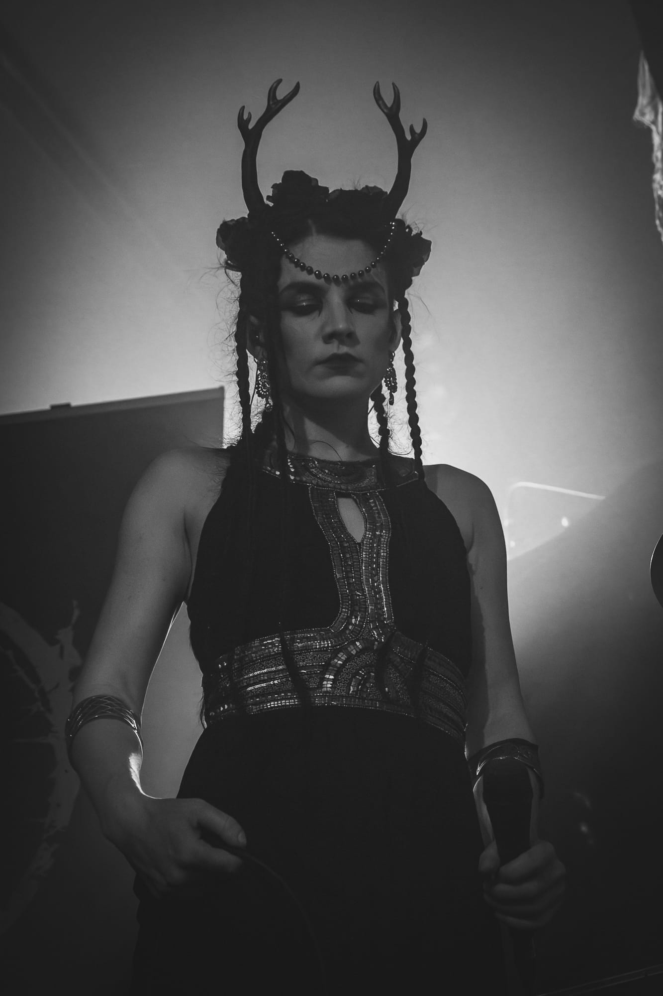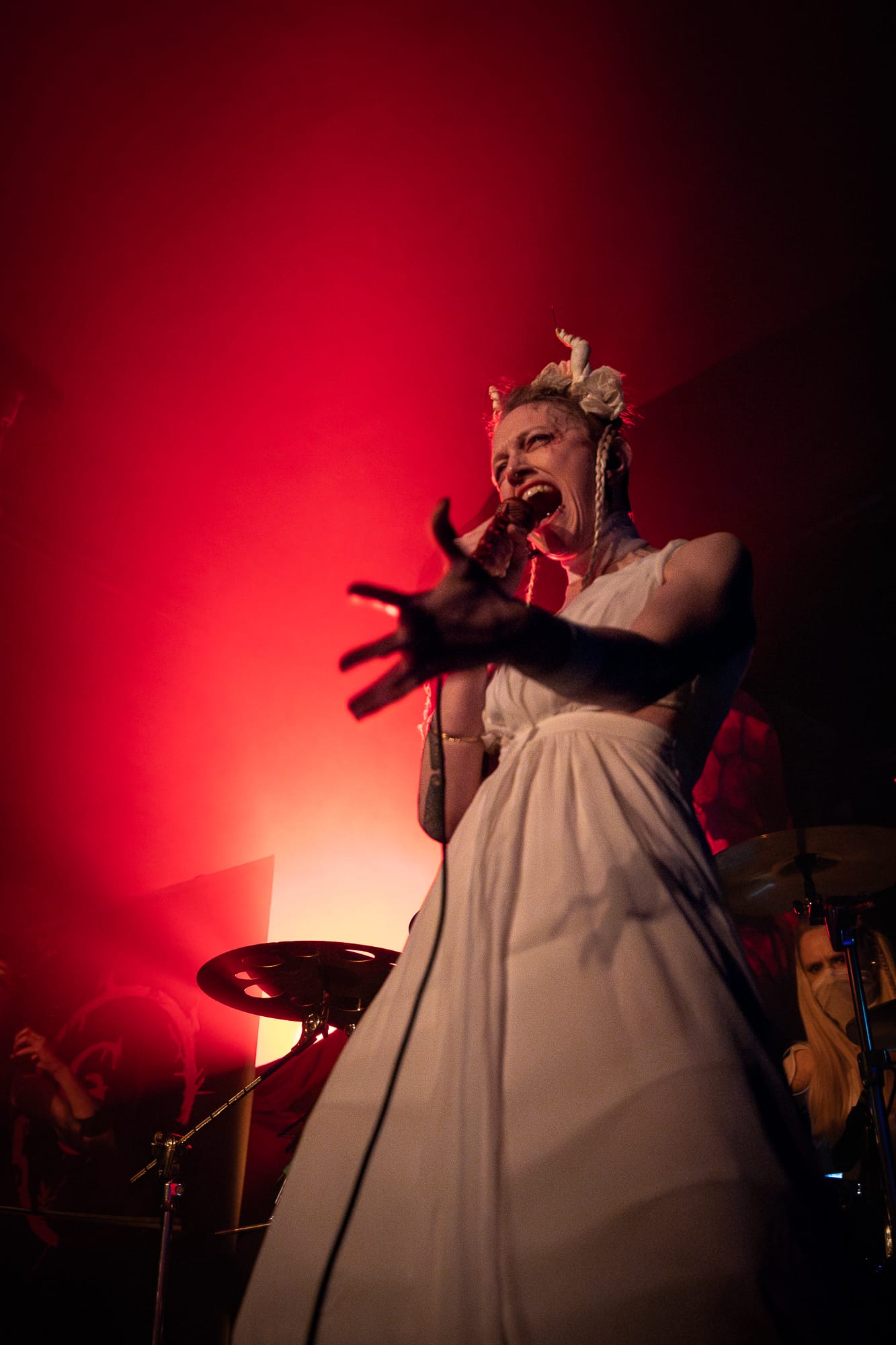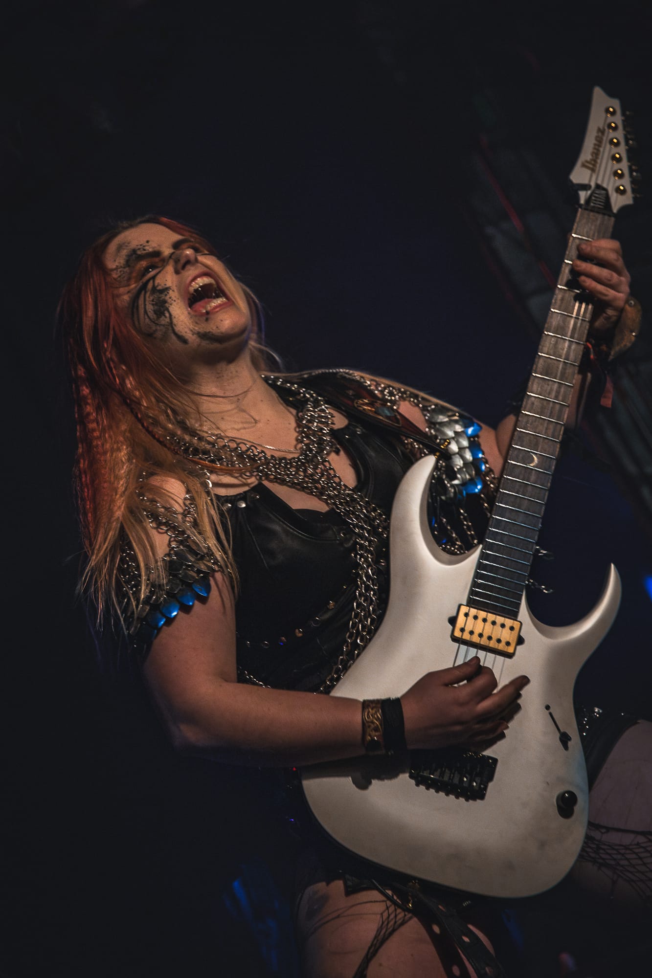 Before the Finnish rock monsters took to the stage, the sellout crowd needed to be suitably warmed up, firstly by Brighton-based outfit Crimson Veil. Fittingly bathed in an ethereal red glow, the otherworldly set, punctuated by Mishkin Fitzgerald’s haunting vocals, left all in attendance fully under her hex. Giving vibes of a pagan ritual, the dark visuals of the band were personified by the suitably atmospheric staging which, combined with the emotive strings of Hanah Piranha, encapsulated their particular brand of dark progressive metal perfectly.