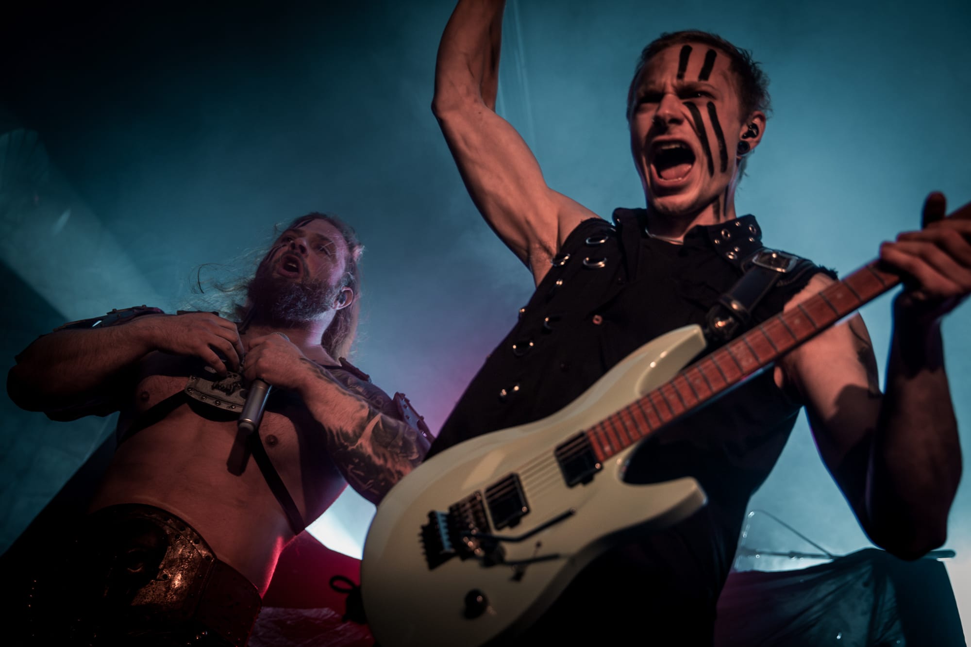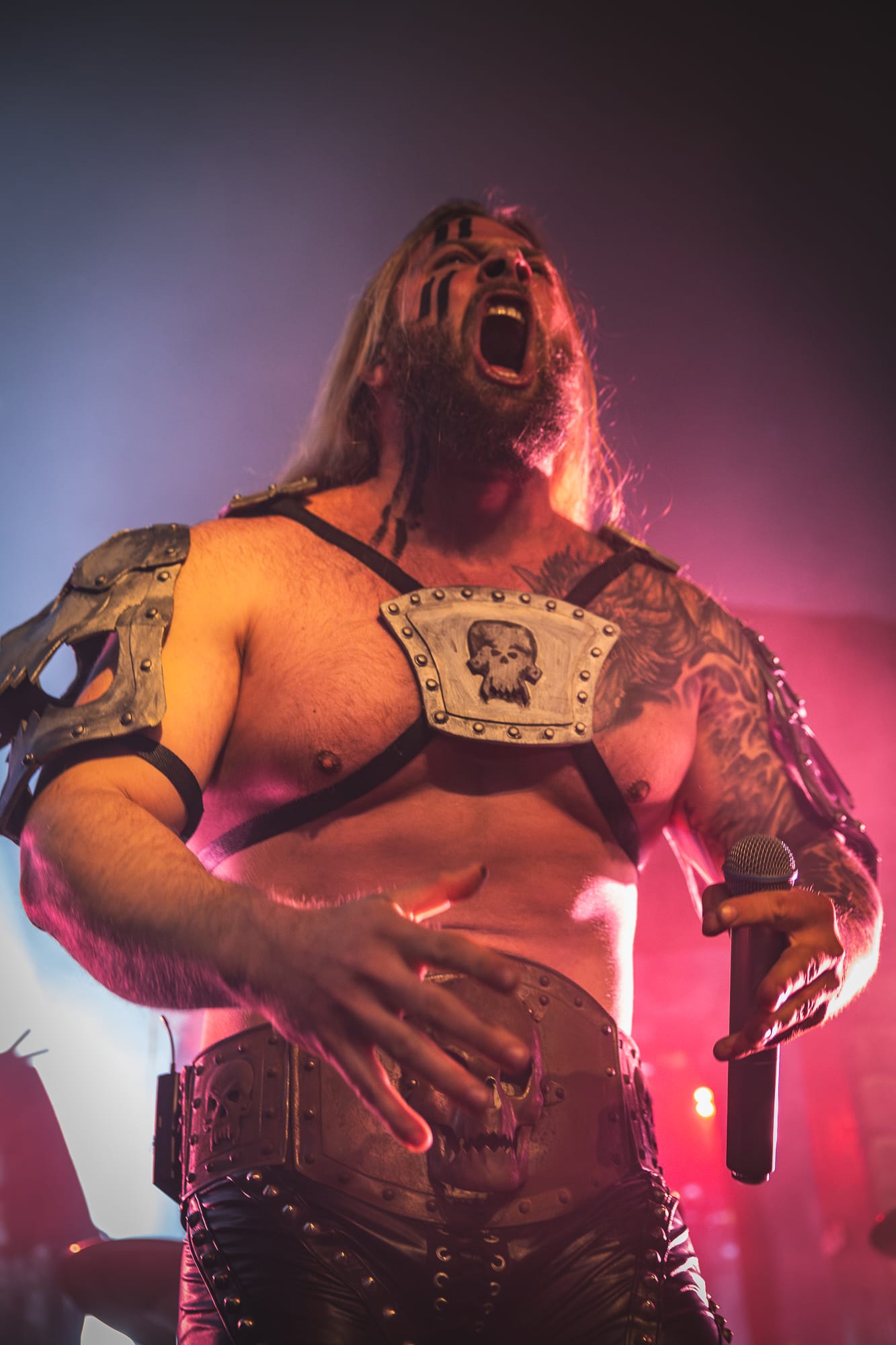 Then, with a complete shift in tone, were German power metallers All For Metal. Co-fronted by the booming voice and metaphorical ‘Mountain of Power’ that is Tim “Tetzel” Wagner and the incredible range fiercely delivered by Antonio Calanna, All For Metal delivered a raucous show full of punch. With a sound reminiscent of acts like Manowar and Brothers of Metal; All for Metal, complete with a bass playing cackling steampunk monkey, took us on a fun high energy romp through tales of Nordic legend and conquest. All in attendance were fully onboard, chanting back on demand the hooks to "Raise Your Hammer" and "Hear The Drum." Although their time on stage was fleeting, they surely made many new fans on the night. Closing their set off with Mjolnir raised aloft in Tetzel’s sizably worthy arms, the crowd were left definitely wanting more.