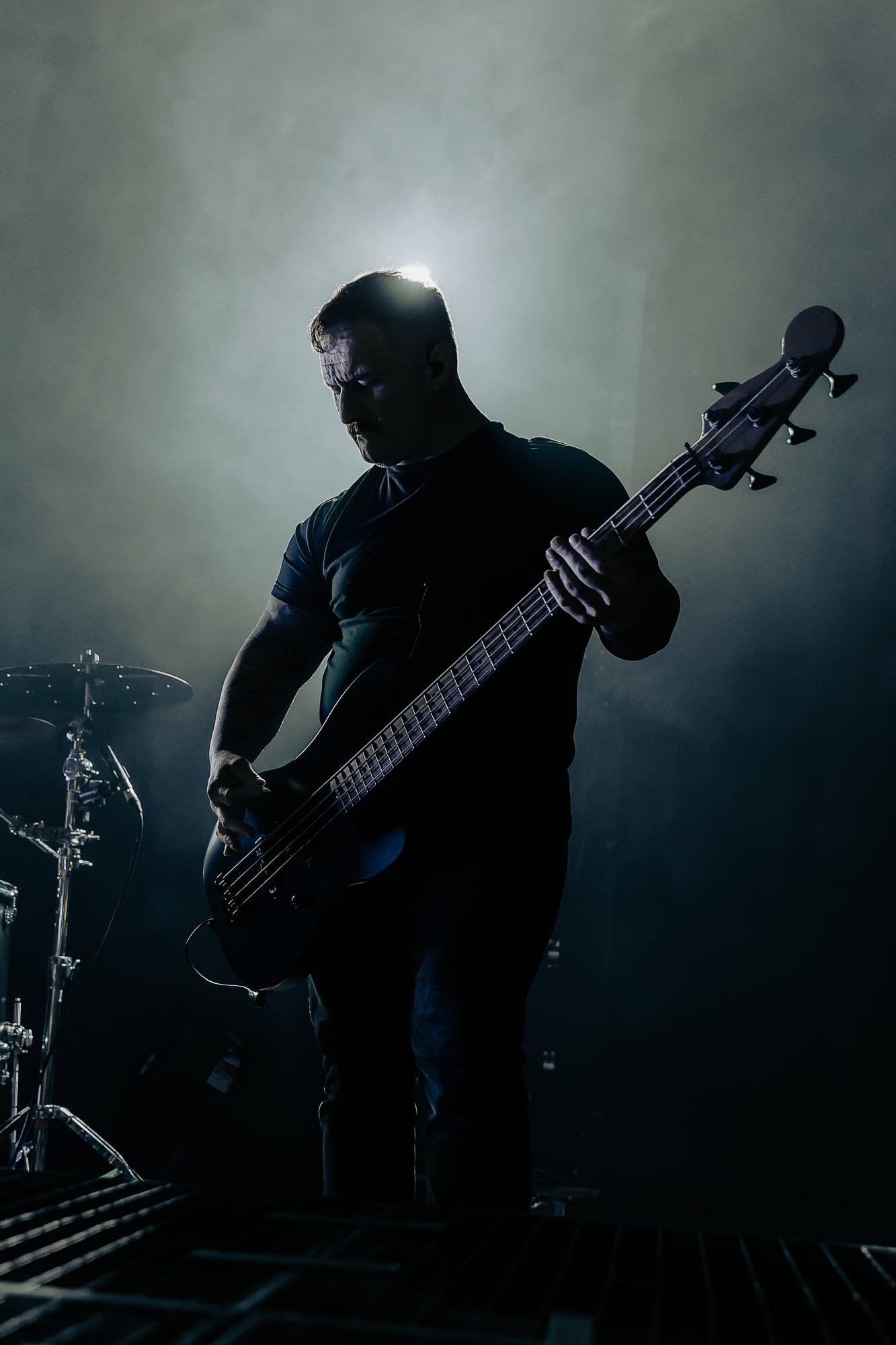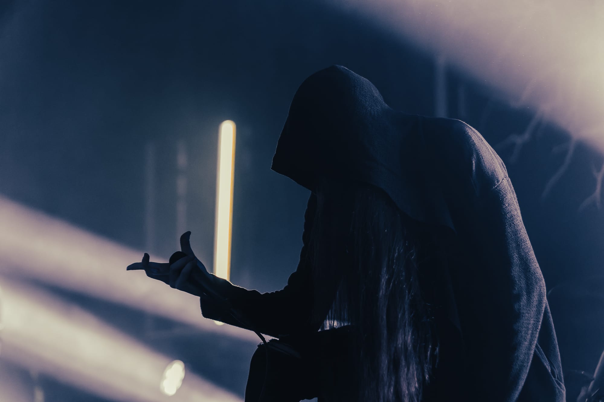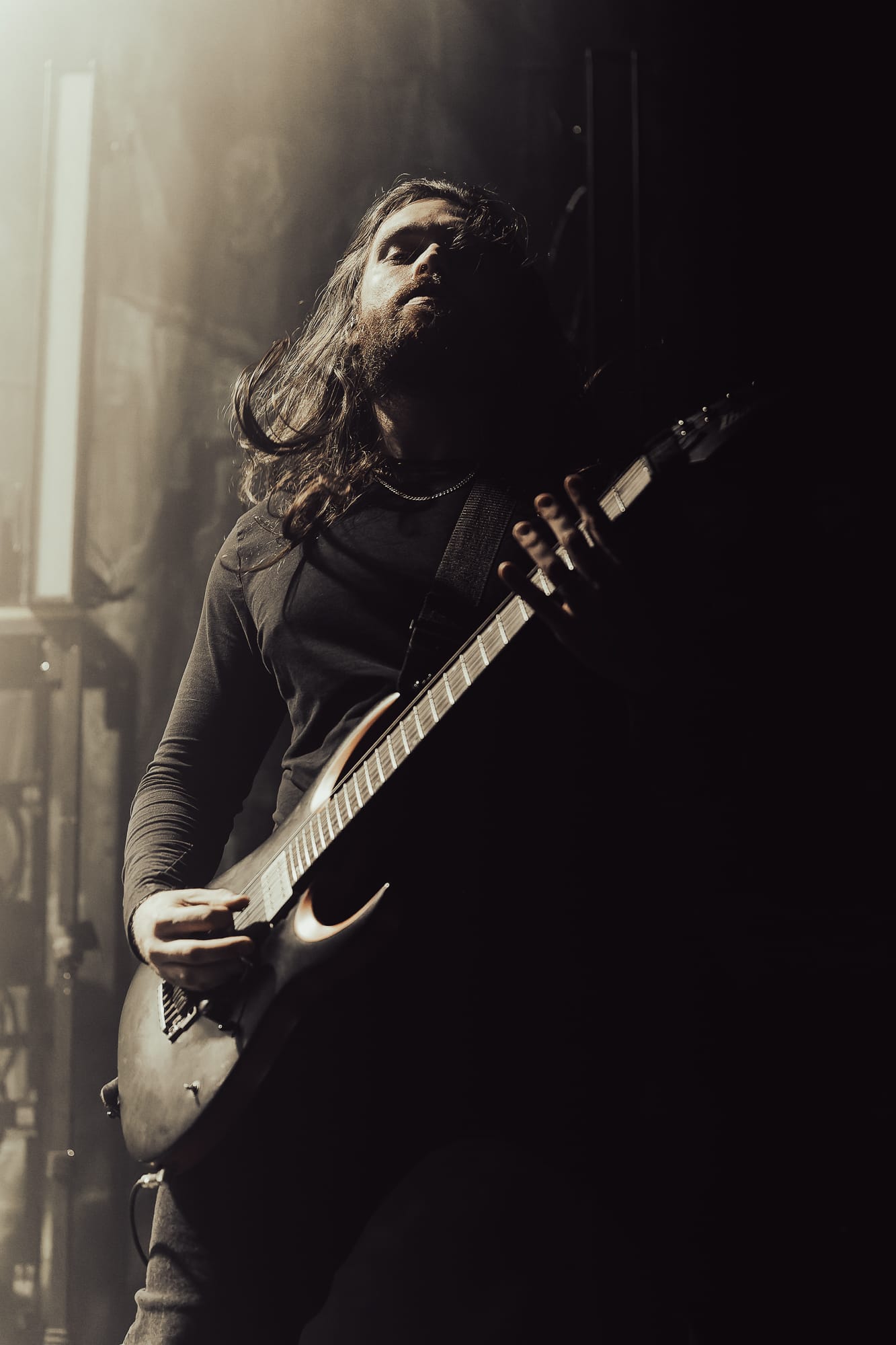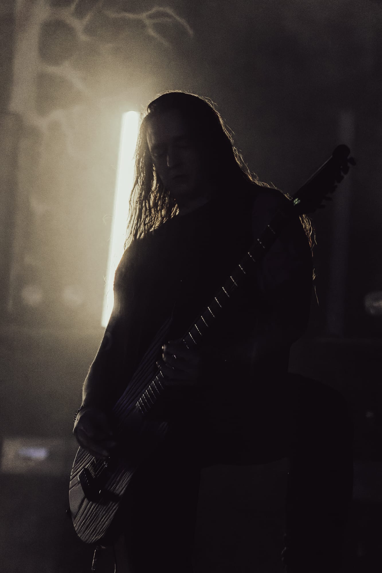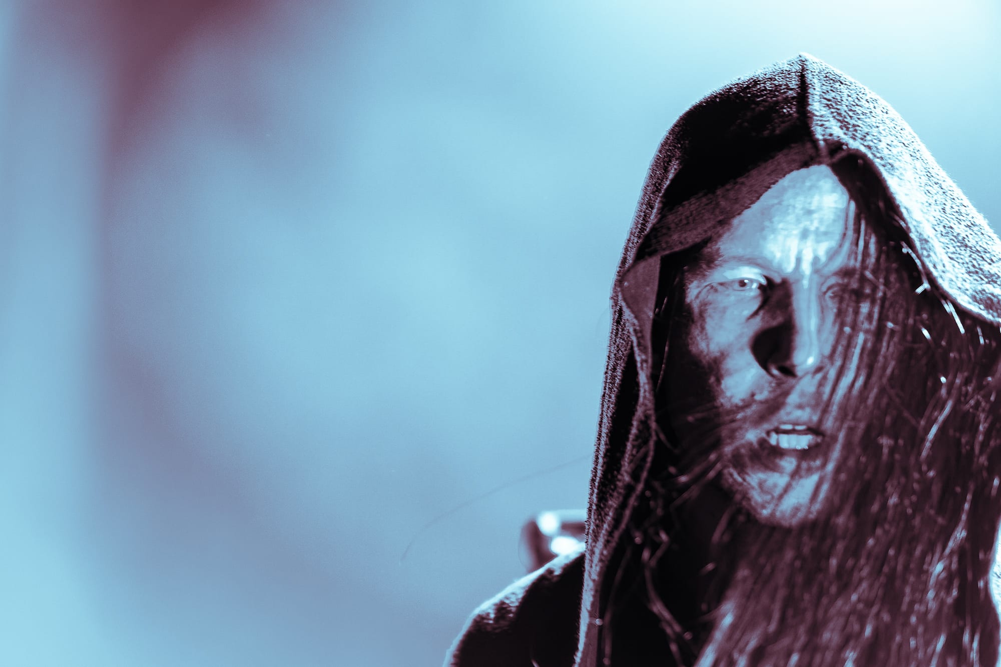 Fog fills the stage and is bathed in blue and red lights as both guitar and bass are given a brief moment of their own before vocalist Filip Danielsson emerges, hooded and cloaked, to kick the night off with the titular track from the 2021 album, Välde.