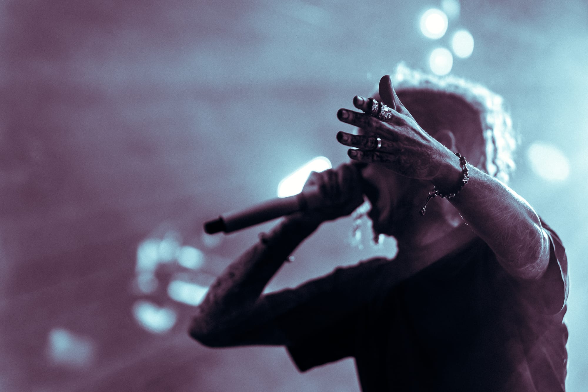 Vocalist, and arguably the nicest guy in metal, Will Ramos, apologizes to the crowd, saying that he has been suffering from the flu on this tour and that his voice isn't doing what he wants it to do. He then proceeds to summon literal demons, producing sounds that no other person on earth can; I wish I was able to be so on top of my game even on an off day. That aside, he then asks for some assistance from the crowd as we break into "Sun//Eater," which is our first dip into 2022's breakout album, Pain Remains. The song sees an enormous front-to-back crowd split. "Cursed to Die" comes next.