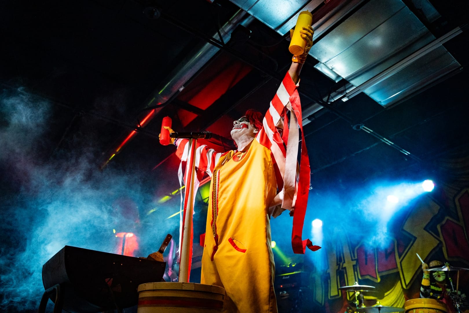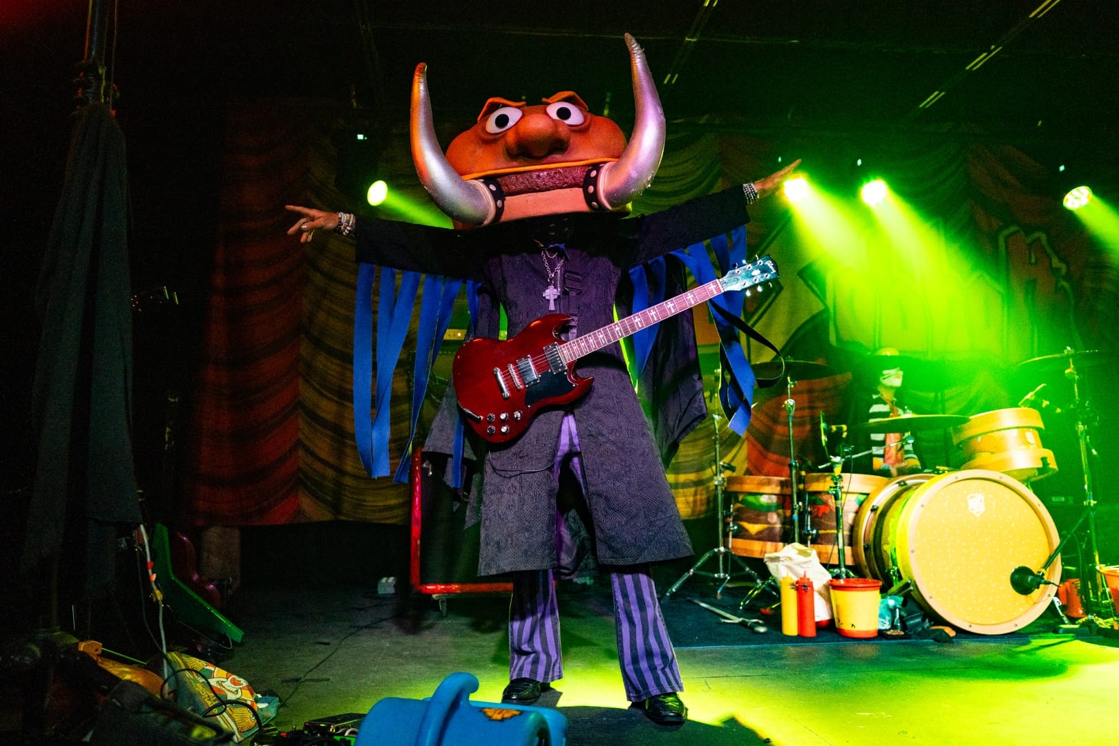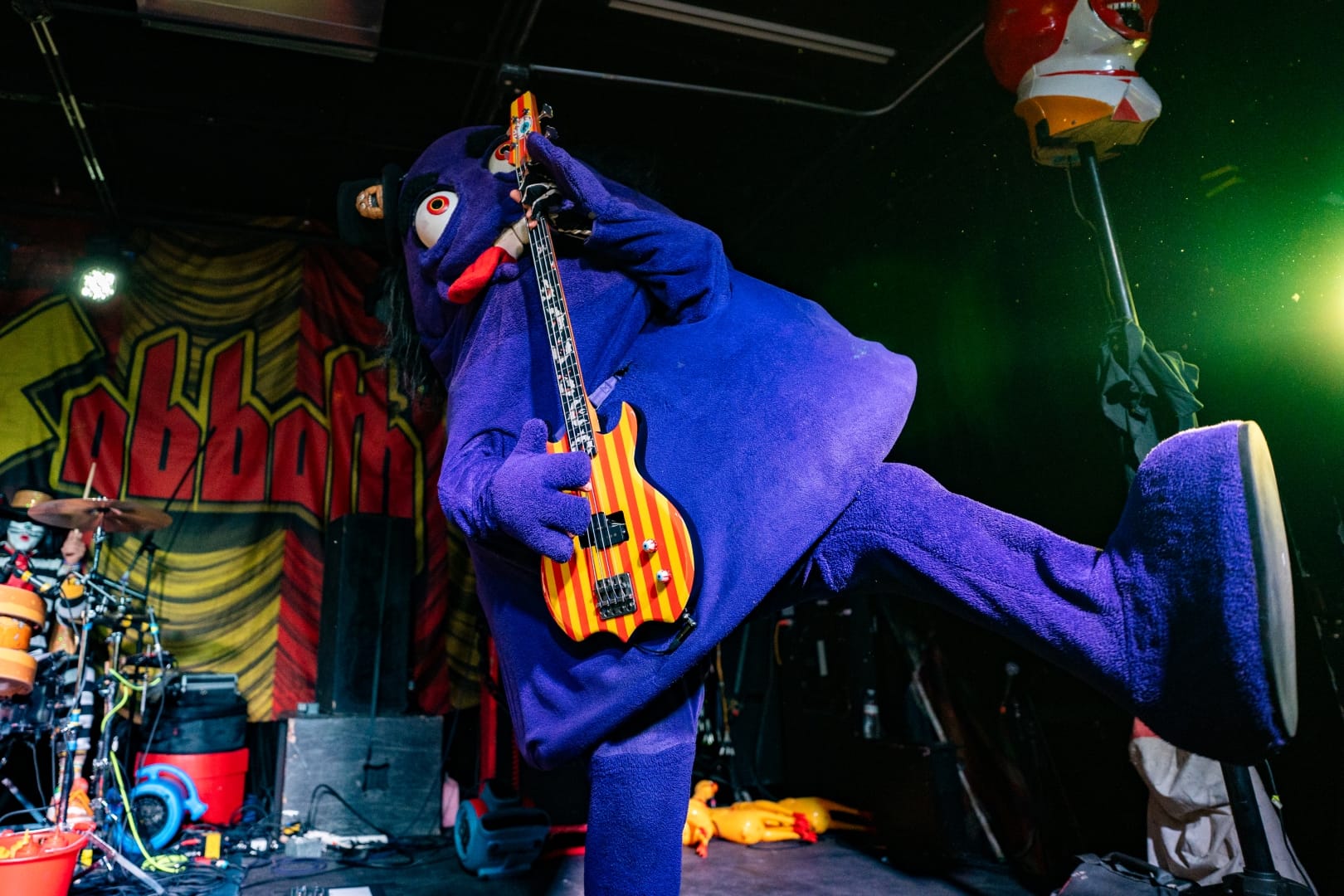 The small stage of the WC Social Club could barely contain the antics of the Mac Sabbath crew, in all of its glory. Accompanying vocalist Ronald Osbourne and drummer Catburglar, were the giant costumed entities Grimalice and Slayer MacCheeze, on bass and guitar, respectively. The self-dubbed “drive through” metal group resembled many characters of a certain fast food franchise, while performing comedic, fast food themed covers of classic Black Sabbath tracks.