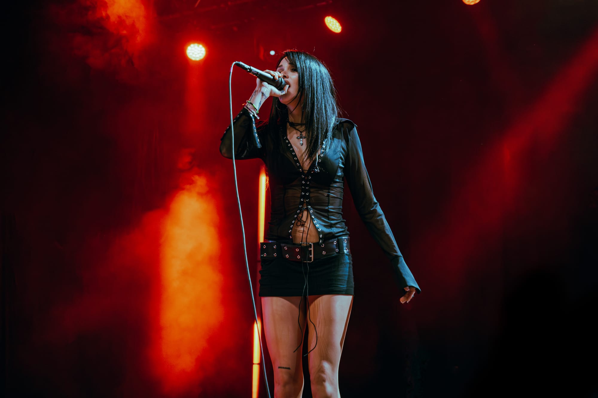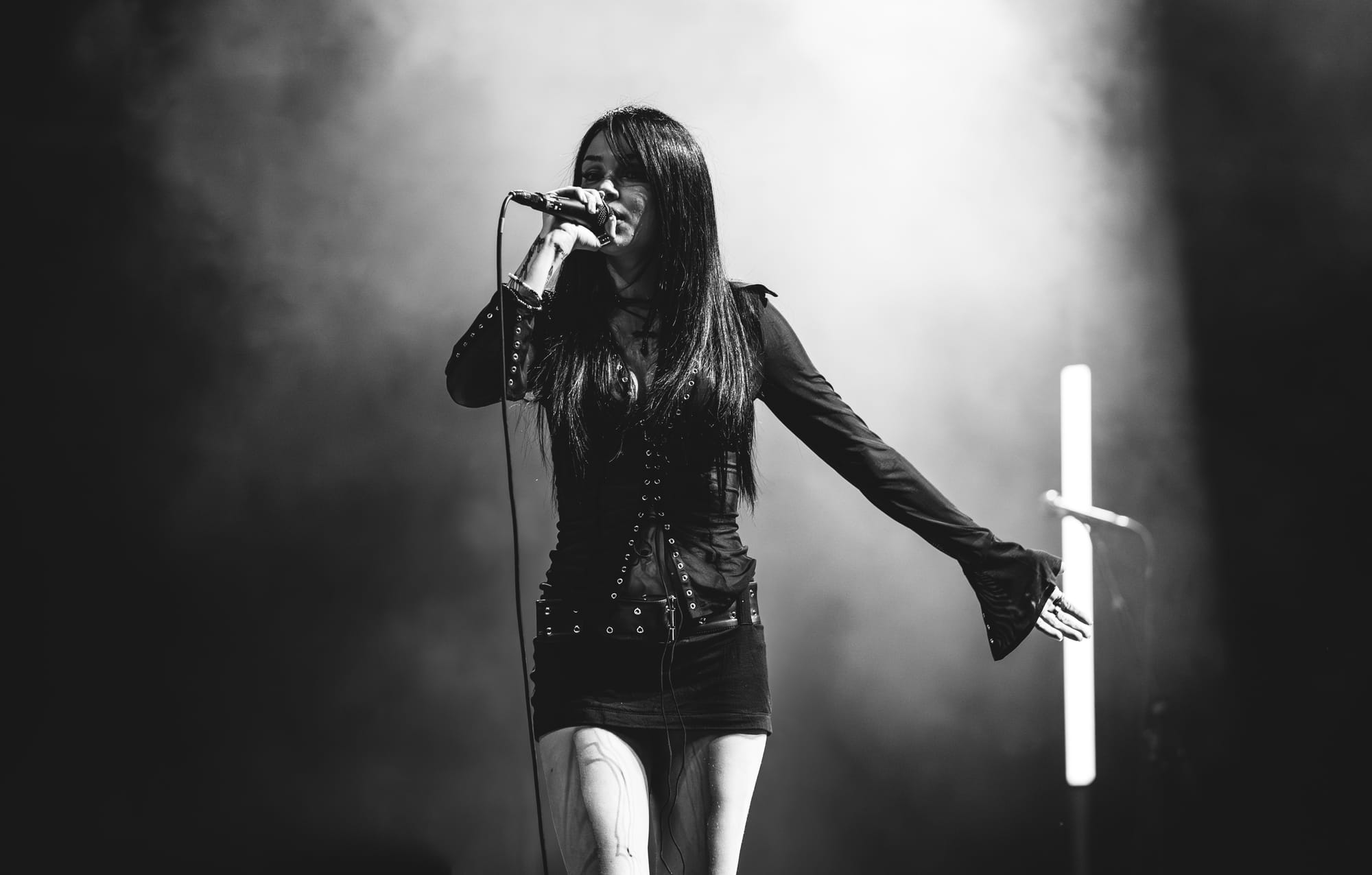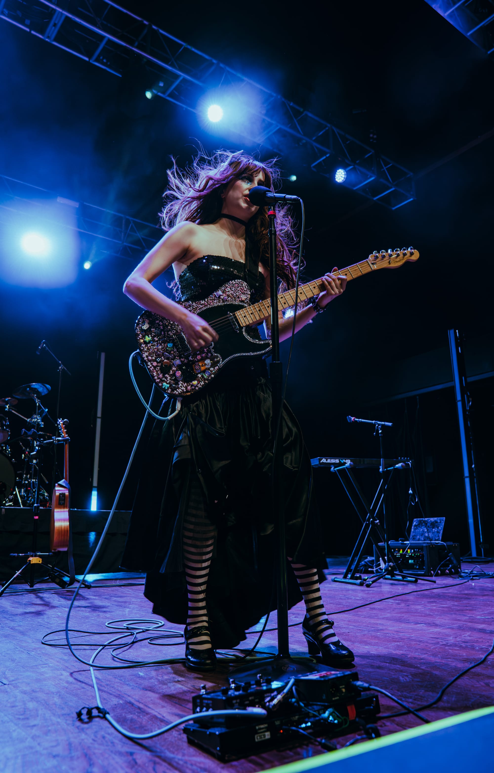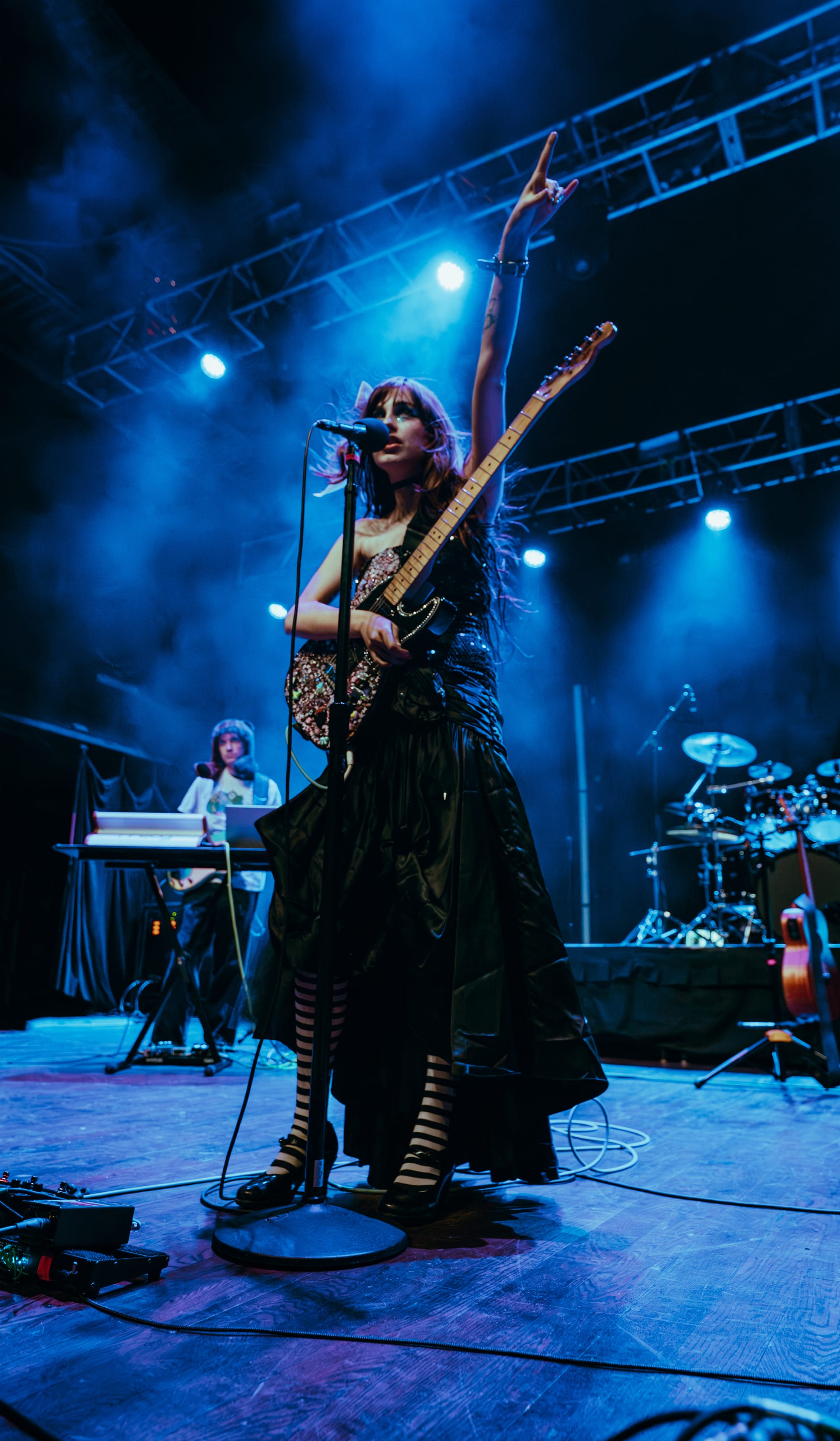 Opening act Ayleen Valentine kicked things off, grabbing the audience's attention immediately when she walked out on the stage wearing a long black dress and a bedazzled gas mask. I had never heard of her before this weekend, and her music isn’t a genre that I am super familiar with, but I think she put on a fantastic performance. A lot of times when opening acts perform, there is a certain level of shyness that slips through when they address the crowd. That was not the case with Ayleen. She was super excited and interacted with the crowd with so much confidence and personability. Her songs were very chill and vibey, which had the crowd swaying throughout her whole set.
