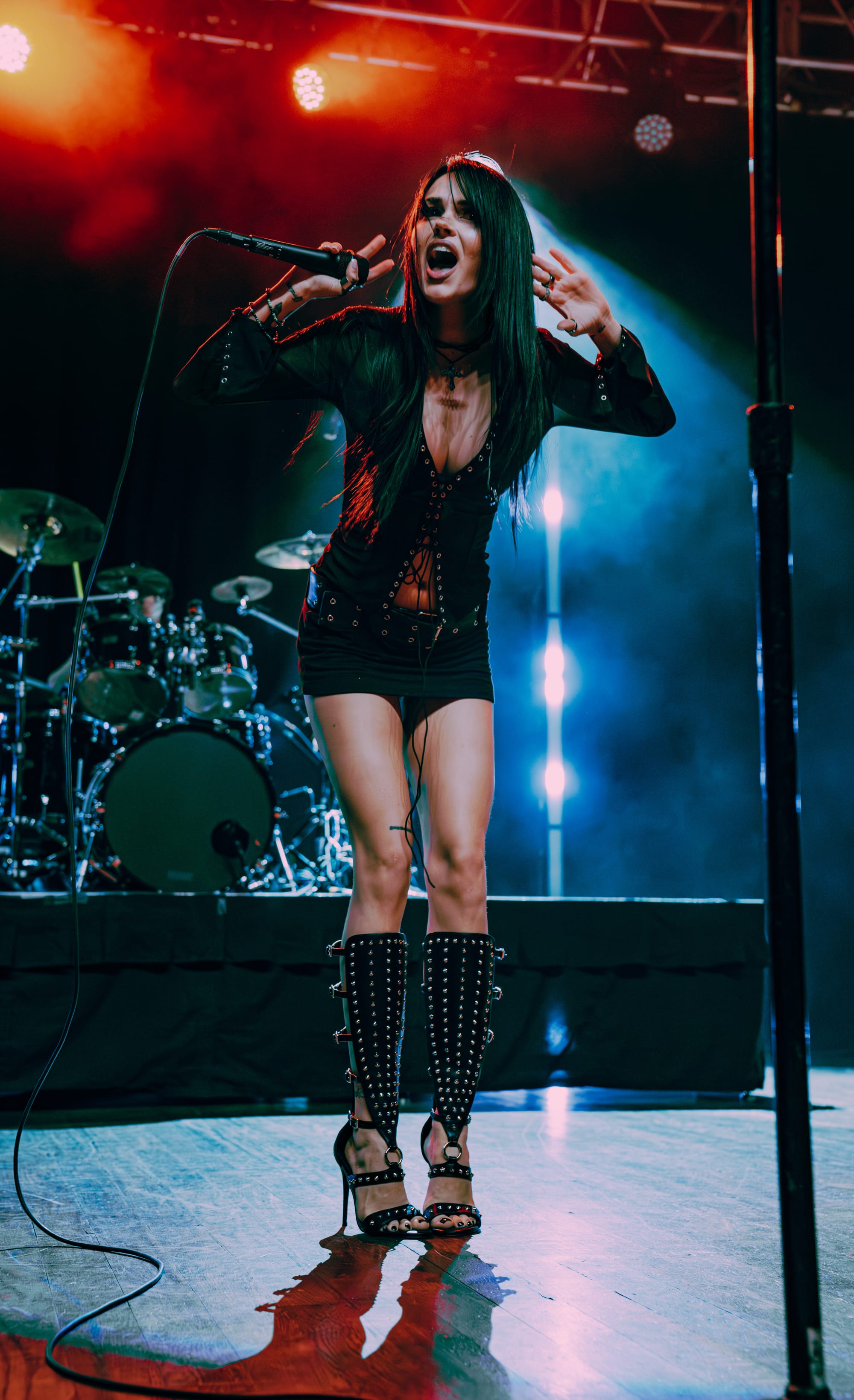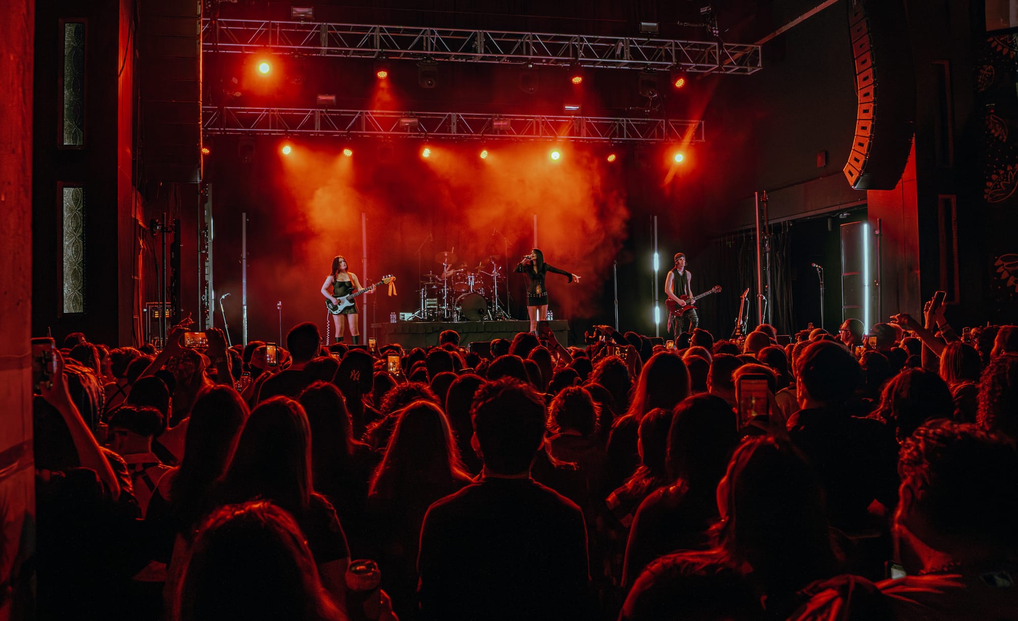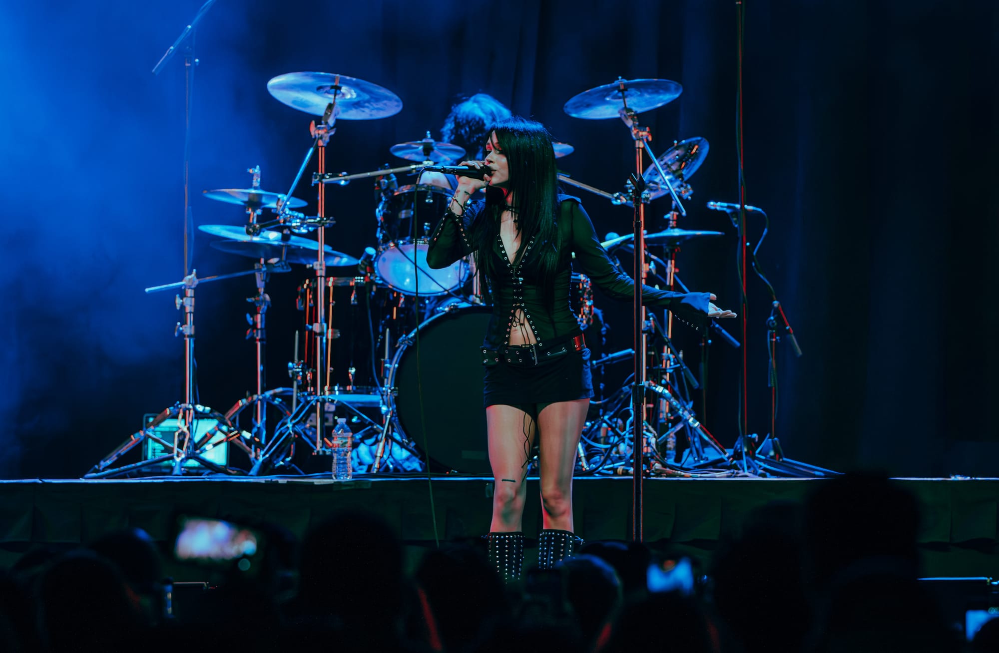 After a lovely performance by Ayleen, the house lights dropped, and Maggie Lindemann and her band strutted out onstage, making the crowd go absolutely wild. Maggie started off the night on a high note with the catchy hyper-pop song “fang” and proceeded to play all new songs off of her latest album, i feel everything, for the first quarter of her set. While many of the newer songs lean more in an electronic/pop direction on the album, they definitely were translated into a heavier, rock sound when played live. Swapping out the electronic drum machines for an acoustic drum kit and adding in a distorted guitar over the tracks made for an awesome live performance and gave the already fantastic songs even more grit. I’ve always loved when musicians add in heavier rock elements to songs for live shows. It adds a level of energy and excitement that really gets the crowd hyped up and enthusiastic.