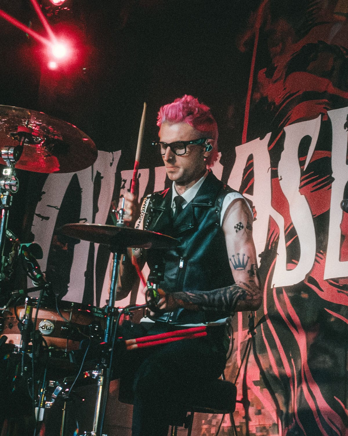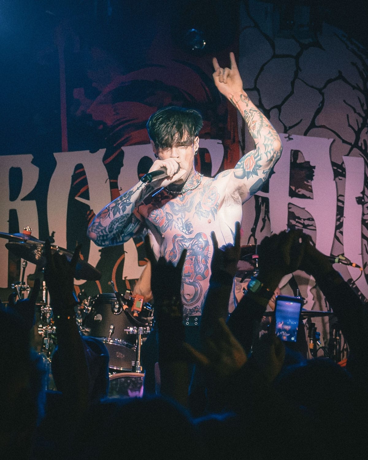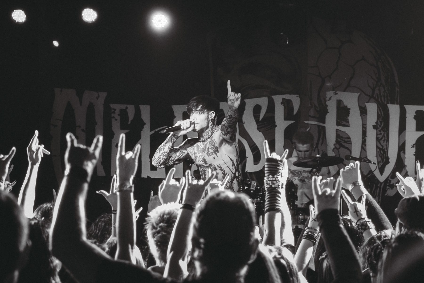 Right after Autumn Kings left the stage, their fans flooded the center of the venue to secure a spot as close to the stage as possible, and without a barricade, all the fans at the front got up close and personal with the band. And Melrose absolutely made it their goal to interact with the fans to their hearts’ content, giving out high-fives, handshakes, fist bumps, heart signs, and more to anyone who could reach their hand that far! Vlado grabbed a fan’s phone halfway through the set to snap a few pics and a video, and she “about lost her damn mind!” They played hit after hit, from older songs like "Enemy" and "Falling Apart" to big hits like "Suffering," "Through Hell," a wonderful cover of Bring Me The Horizon’s “Drown,” and brand-new tracks from their upcoming album, with a fresh new style to top it all off.