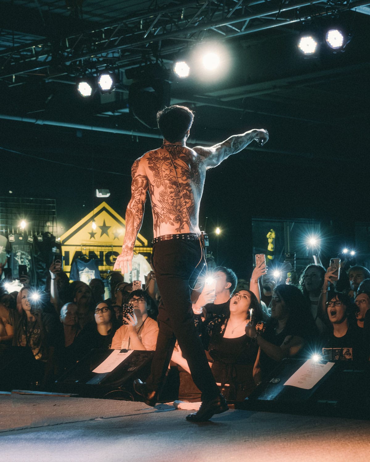 Though only debuting in 2022, the group has rapidly gained fame thanks to their infectious blending of metal and pop elements, their genuine charm, and, in true metal fashion, the lead singer’s absolutely rockin’ bod. They’ve built up massive overseas fanbases after their music and silly behind-the-scenes videos trended on TikTok and showed an unfiltered, authentic side of the band that many others refuse to publish. They’ve previously toured with metal powerhouse Ice Nine Kills, and their return to the States has already made waves with their raving fans. As they approach the midpoint of the 24-stop tour this week, Melrose made a quick stop in Greensboro to tear up the walls for their fans across the Carolinas to put on one of the best shows I’ve ever seen at Hangar 1819.