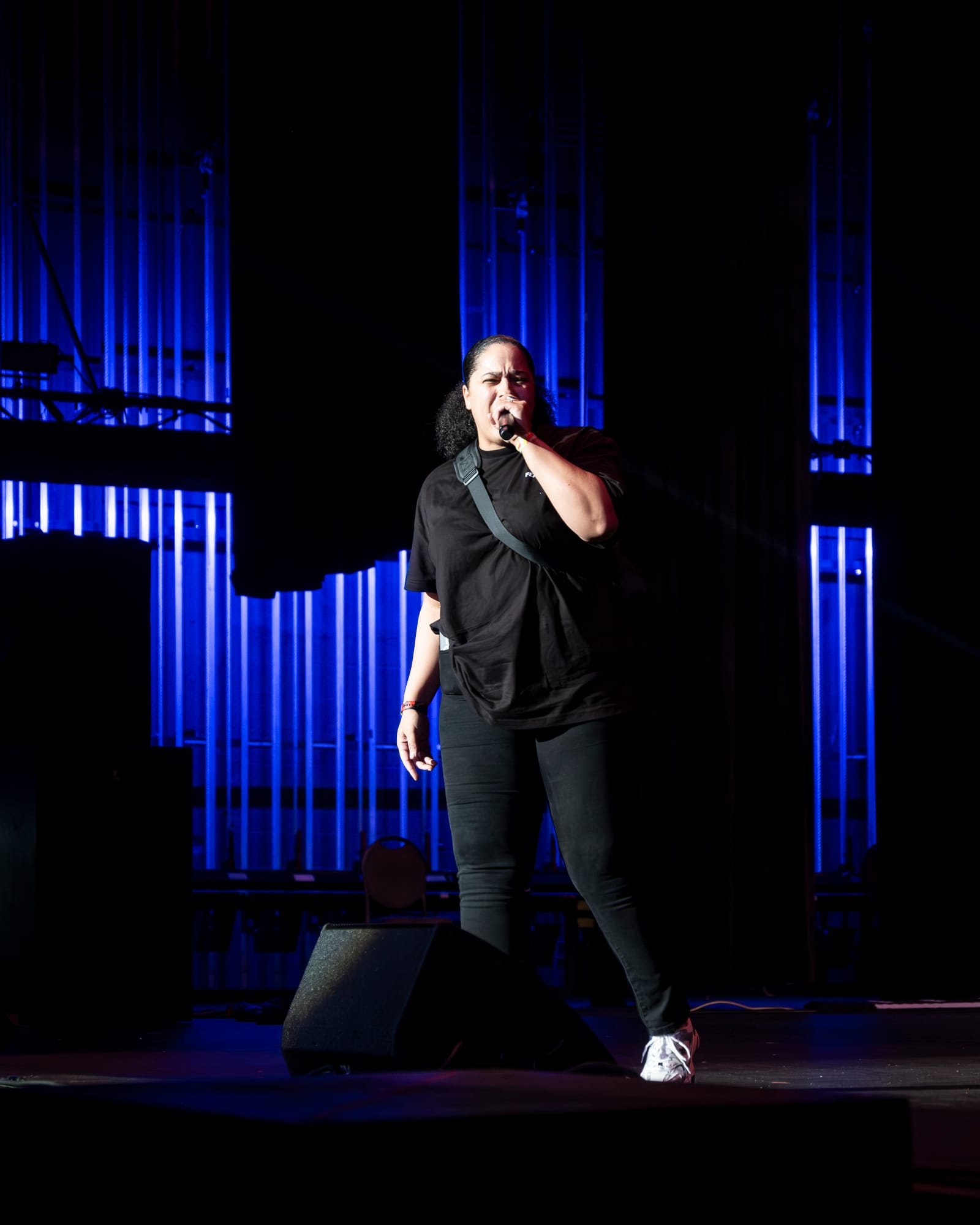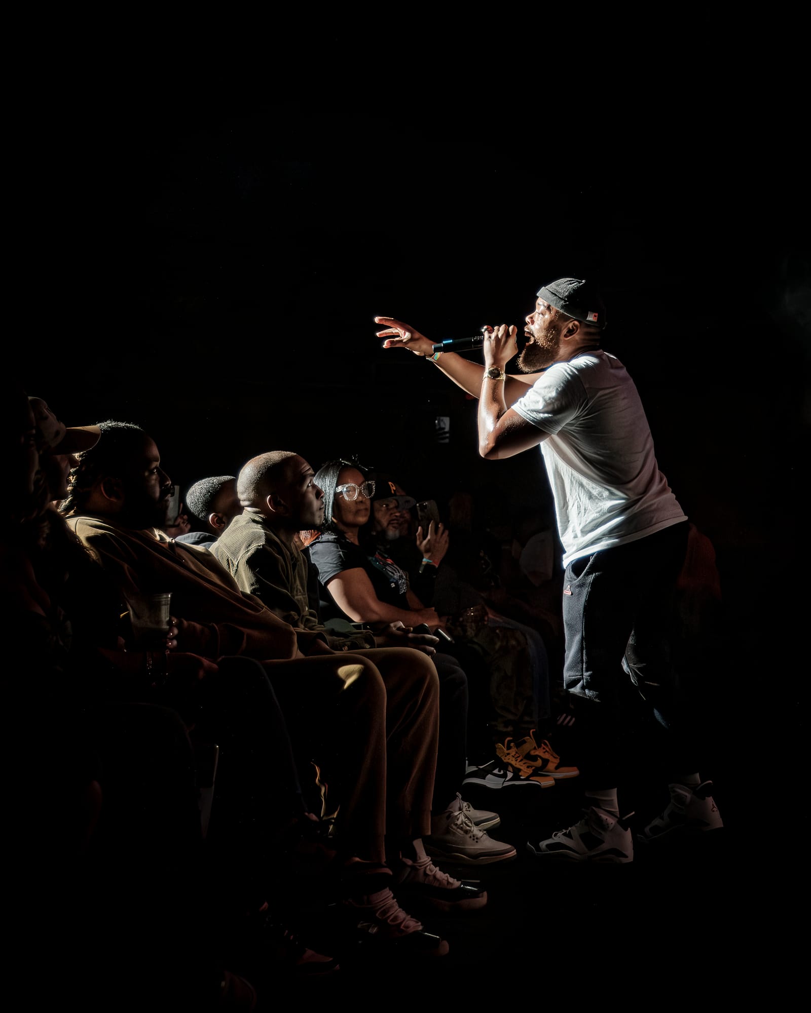 Landon Wordswell took the stage with a fury. Coming out swinging with some of the fastest rapping I’ve heard in a while before settling into a gritty flow and lyrics that come from hard-learned life lessons. The staff had told him not to, but Landon jumped off stage and performed the final song of his set at the front row of seats making time to fist bump members of the audience.