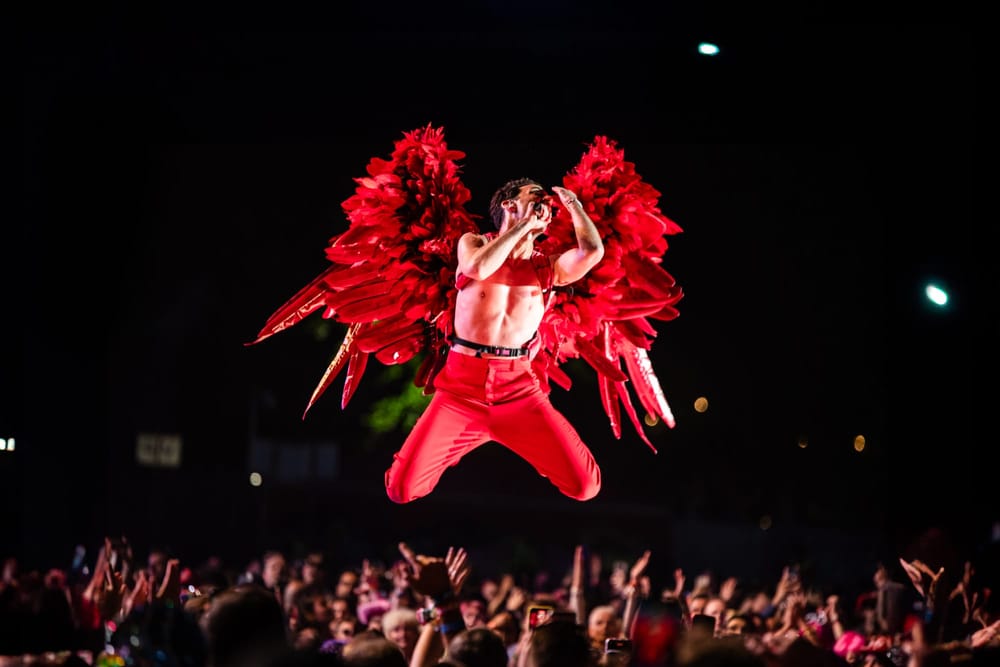 Moving into his hit song ‘Big Girl’, he explained the meaning behind the popular track "Butterfly Lounge", explaining it was a real place in California (now closed) for larger women to hang out as they were often turned away from the clubs in town. He loved that place and wanted to recreate the vibe with the audience, making it a space where everyone and anyone can dance and have fun. He moved through the audience throughout the track, barely visible by the cameras as he was swarmed by feather boas and rainbow flags. As he finally made his way out of the crowd, he climbed up onto the stage before leaving for a short while.