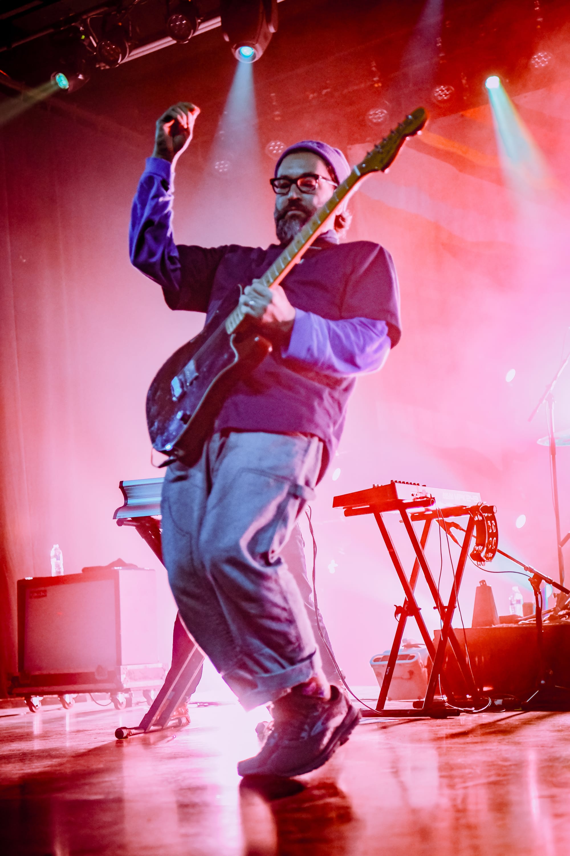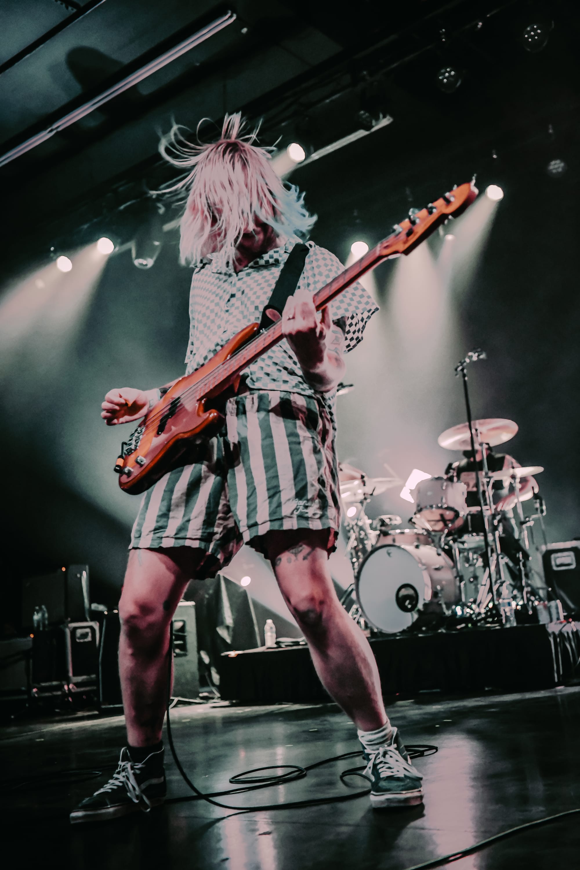 Indie/alt rock band Oso Oso, the project of Jade Lilitri, warmed things up, delivering a tight performance and bringing feel-good vibes that set the tone for the night. Lilitri traded vocals with the bassist throughout the set, performing tracks from nearly every record in their discography, including their 2024 release “life till bones.” Between tracks, fans could be heard meowing, which caught the attention of the band, prompting a competition between dog and cat lovers to see who could bark and meow louder. Moving forward, many fans barked or meowed to show their support for the music. As their set came to an end, the band ramped up their energy with fan favorite “gb/ol h/nf,” a track that held the crowd’s attention and had everyone dancing along. Oso Oso recently celebrated a decade as a band with their “$10 Bill Tour,” aptly named for its ten dollar ticket price. With this show marking their last support date on the tour, it’s unclear what they’ll do next. Give them a listen and check them out next time they take a stage near you!