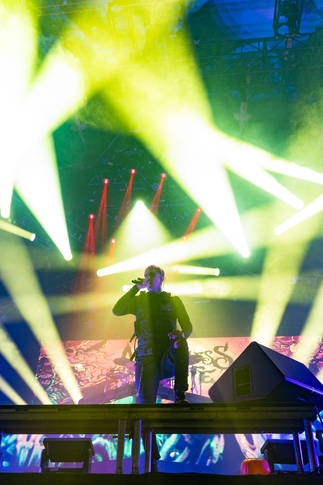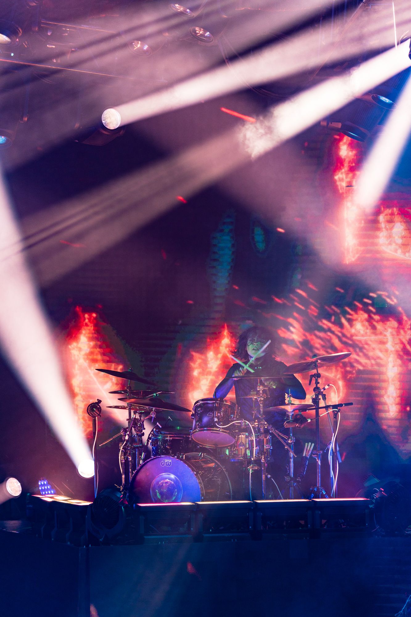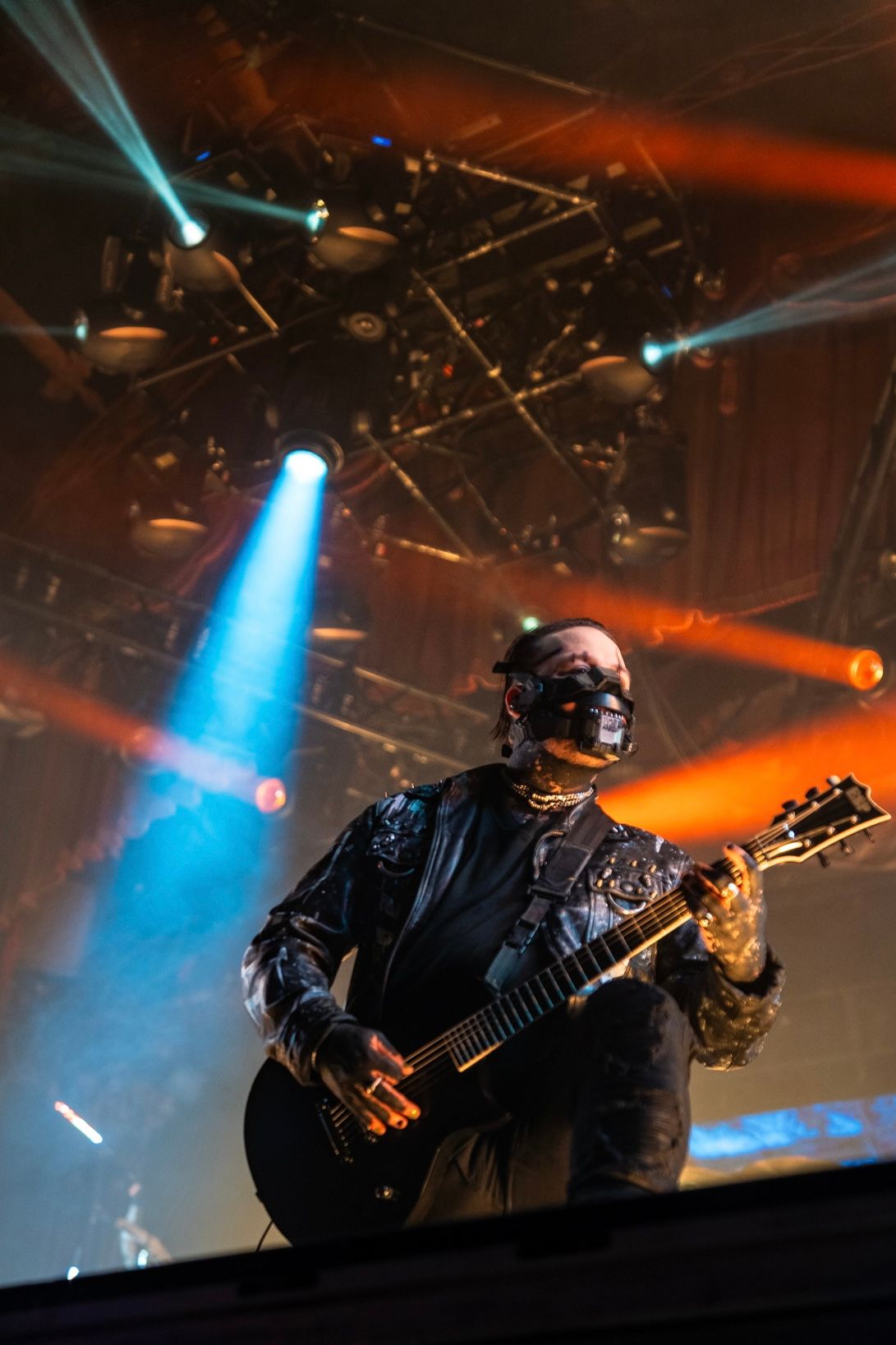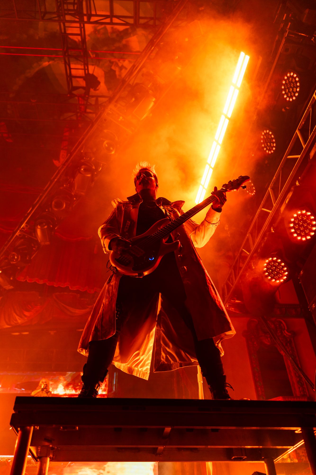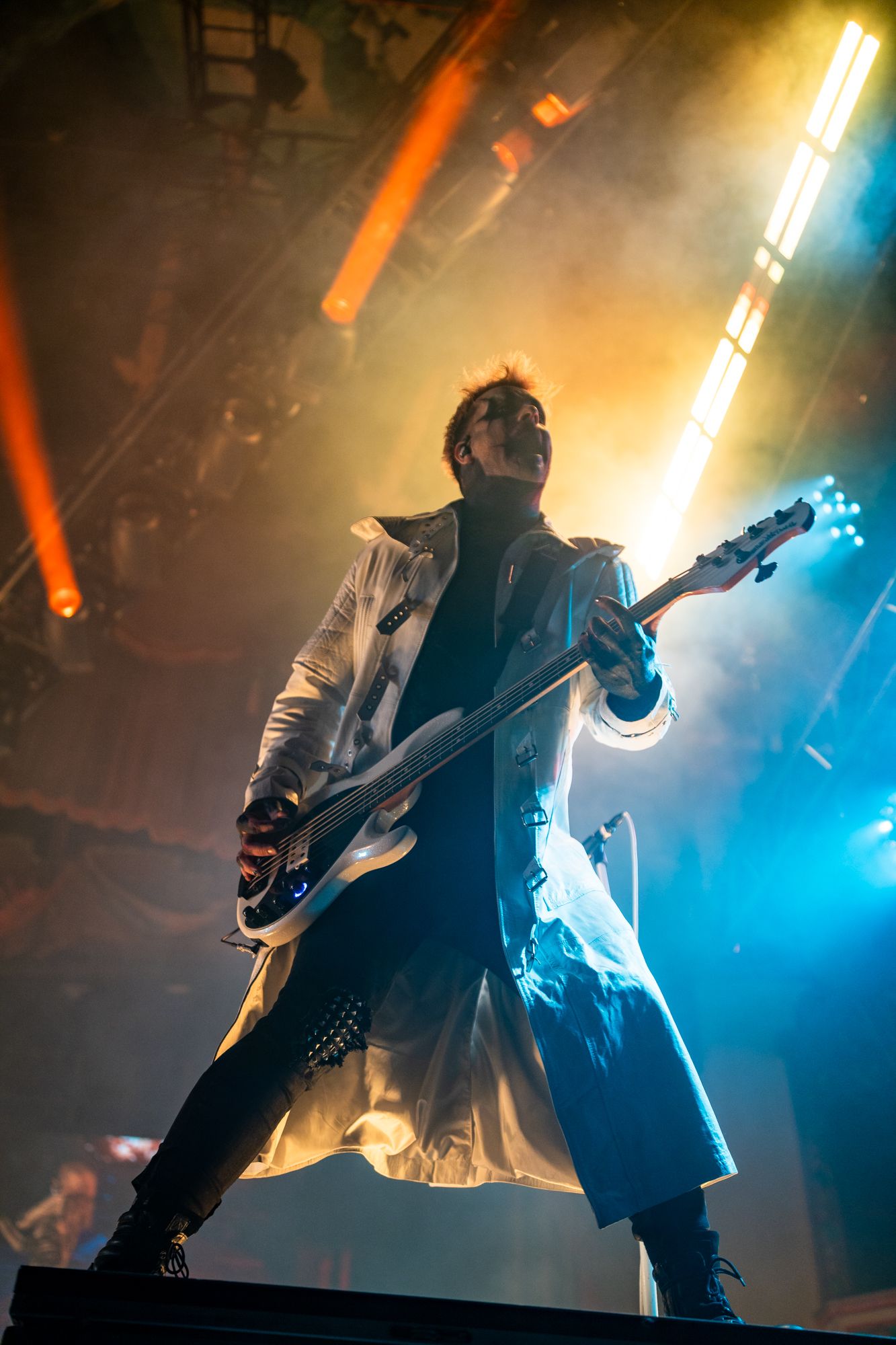 The mix of styles that the band brings to the stage doesn't stop with their individual horror-inspired looks. Making their way through an eighteen song set where they covered most of Scoring the End..., there are snippets and elements of so many other bands woven in and out of their songs. breaking Benjamin comparisons are common, not unexpected with Cerulli citing Ben Burnley as one of his inspirations in the past. But in songs like 'Headache' off 2019's Disguise, bassist Justin Morrow and drummer Vinny Mauro definitely give the song a Tool vibe. On songs like Rats and Werewolf, guitarists Ryan Sitkowski and Ricky Olson seamlessly meld their heavy, thrashing sound to sit in perfect compliment to a handful of synths, and immediately turning around on songs like Slaughterhouse to throw down some of the crunchiest hardcore riffs imaginable. All types of rock were welcome in the Motionless in White mix, along with outfits and visuals that had extreme 'that looks awesome, throw it in the mix' energy. By the time the band closed out their set with 'Porcelain' and the title track off Scoring the End..., it felt like we'd seen three different complimentary shows mashed into one Frankenstein's monster of metal riffs and pop sensibilities.
