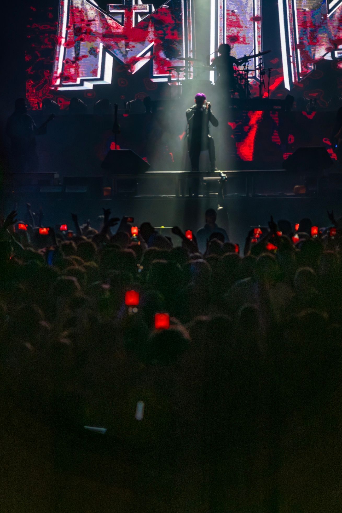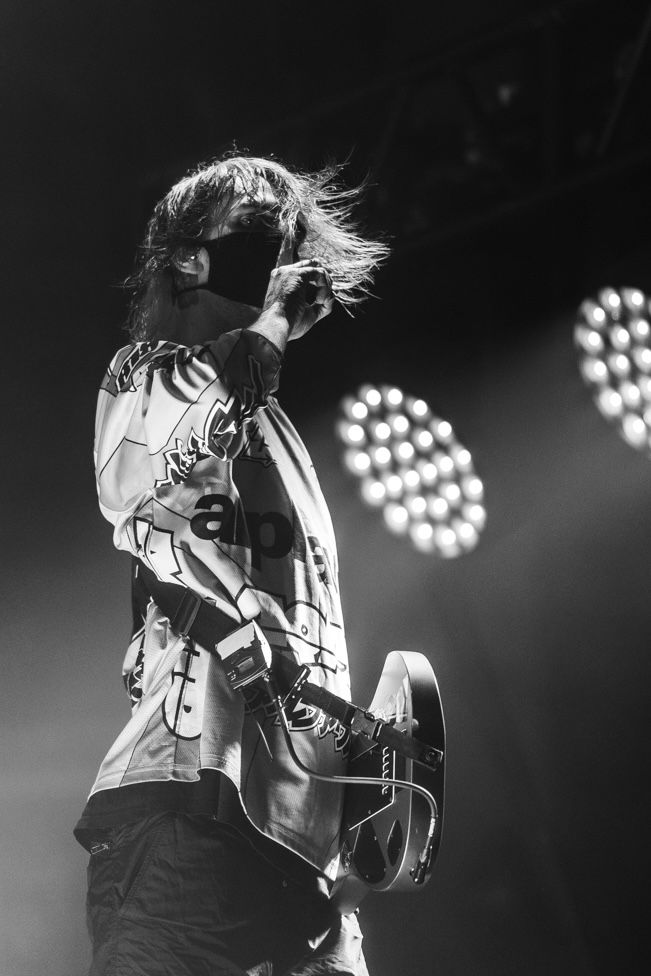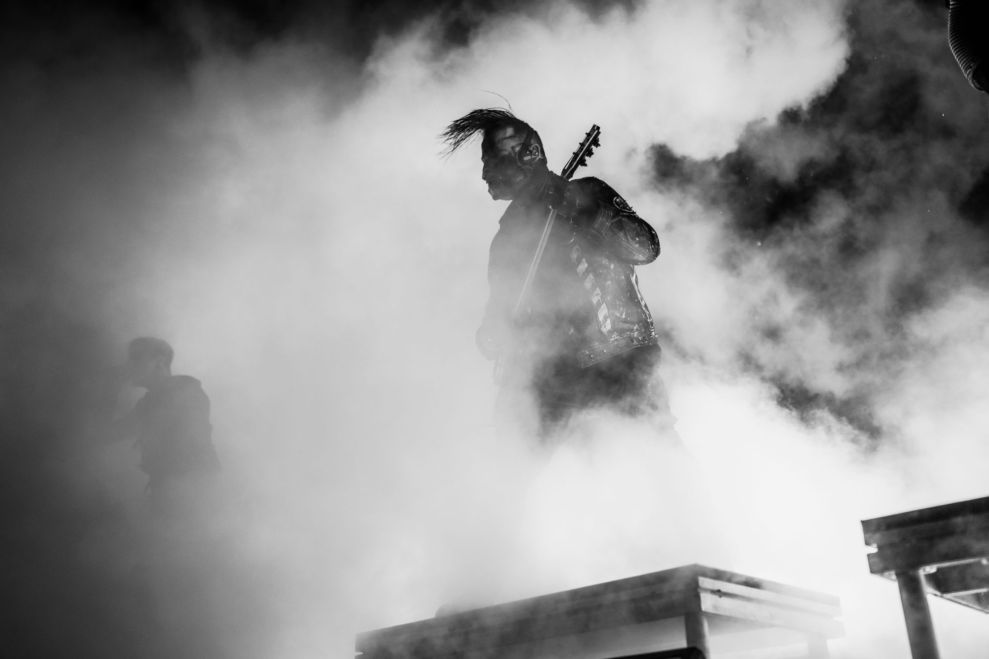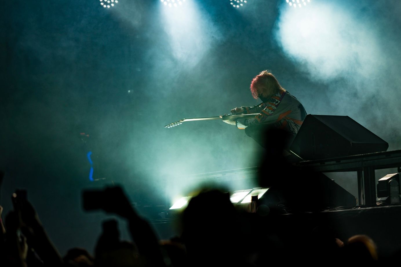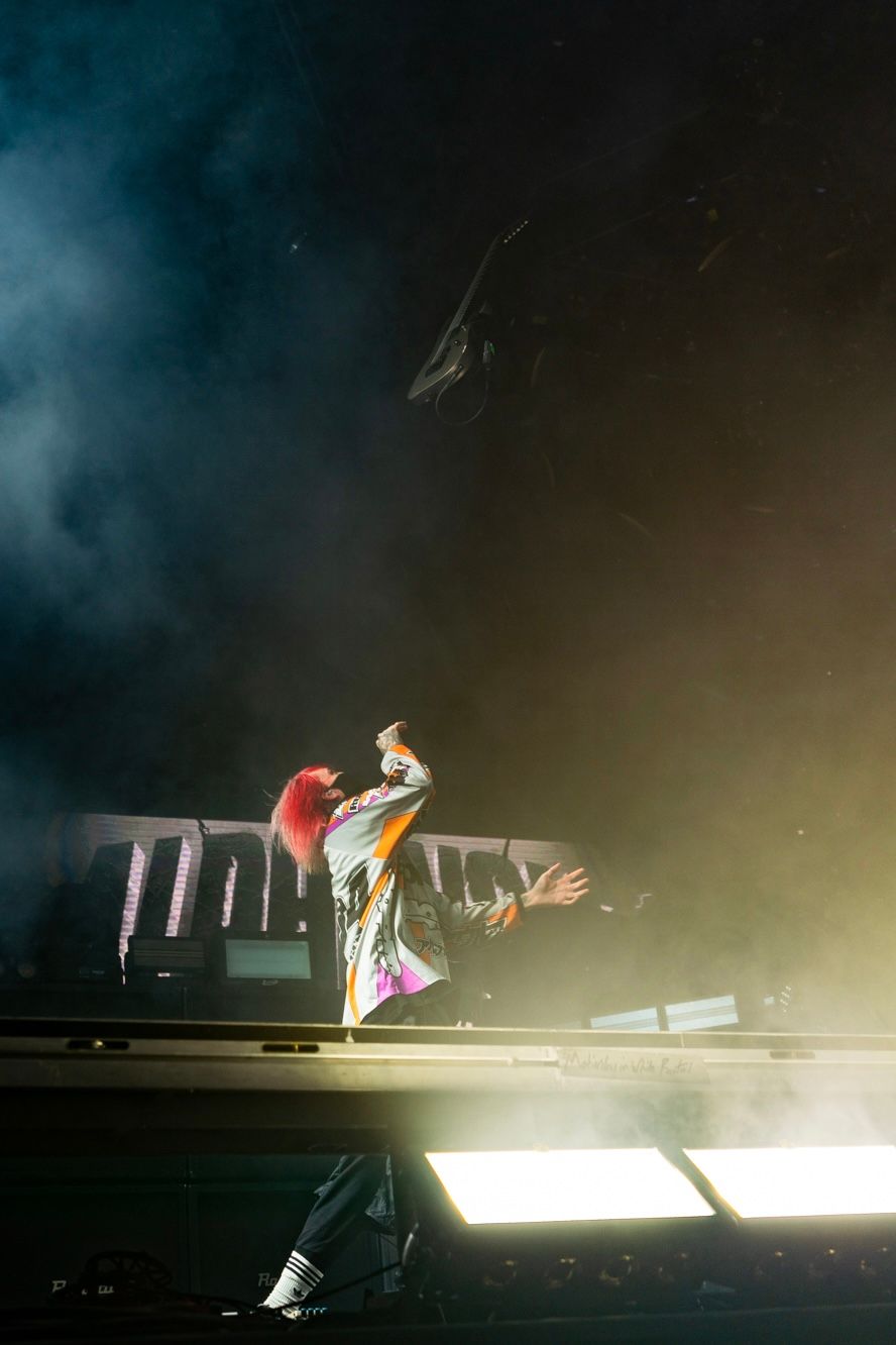 The mix of styles that the band brings to the stage doesn't stop with their individual horror-inspired looks. Making their way through an eighteen song set where they covered most of Scoring the End..., there are snippets and elements of so many other bands woven in and out of their songs. breaking Benjamin comparisons are common, not unexpected with Cerulli citing Ben Burnley as one of his inspirations in the past. But in songs like 'Headache' off 2019's Disguise, bassist Justin Morrow and drummer Vinny Mauro definitely give the song a Tool vibe. On songs like Rats and Werewolf, guitarists Ryan Sitkowski and Ricky Olson seamlessly meld their heavy, thrashing sound to sit in perfect compliment to a handful of synths, and immediately turning around on songs like Slaughterhouse to throw down some of the crunchiest hardcore riffs imaginable. All types of rock were welcome in the Motionless in White mix, along with outfits and visuals that had extreme 'that looks awesome, throw it in the mix' energy. By the time the band closed out their set with 'Porcelain' and the title track off Scoring the End..., it felt like we'd seen three different complimentary shows mashed into one Frankenstein's monster of metal riffs and pop sensibilities.