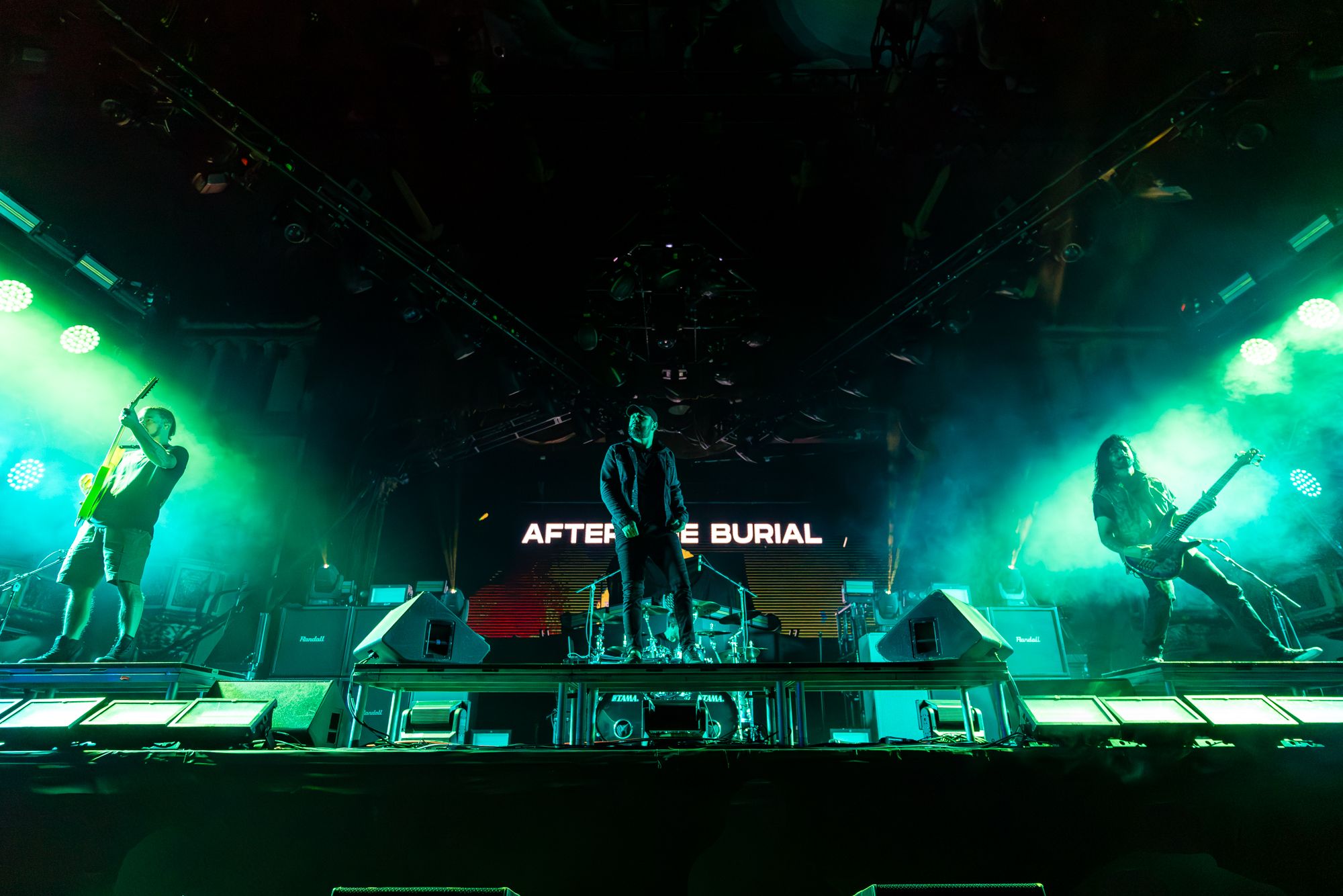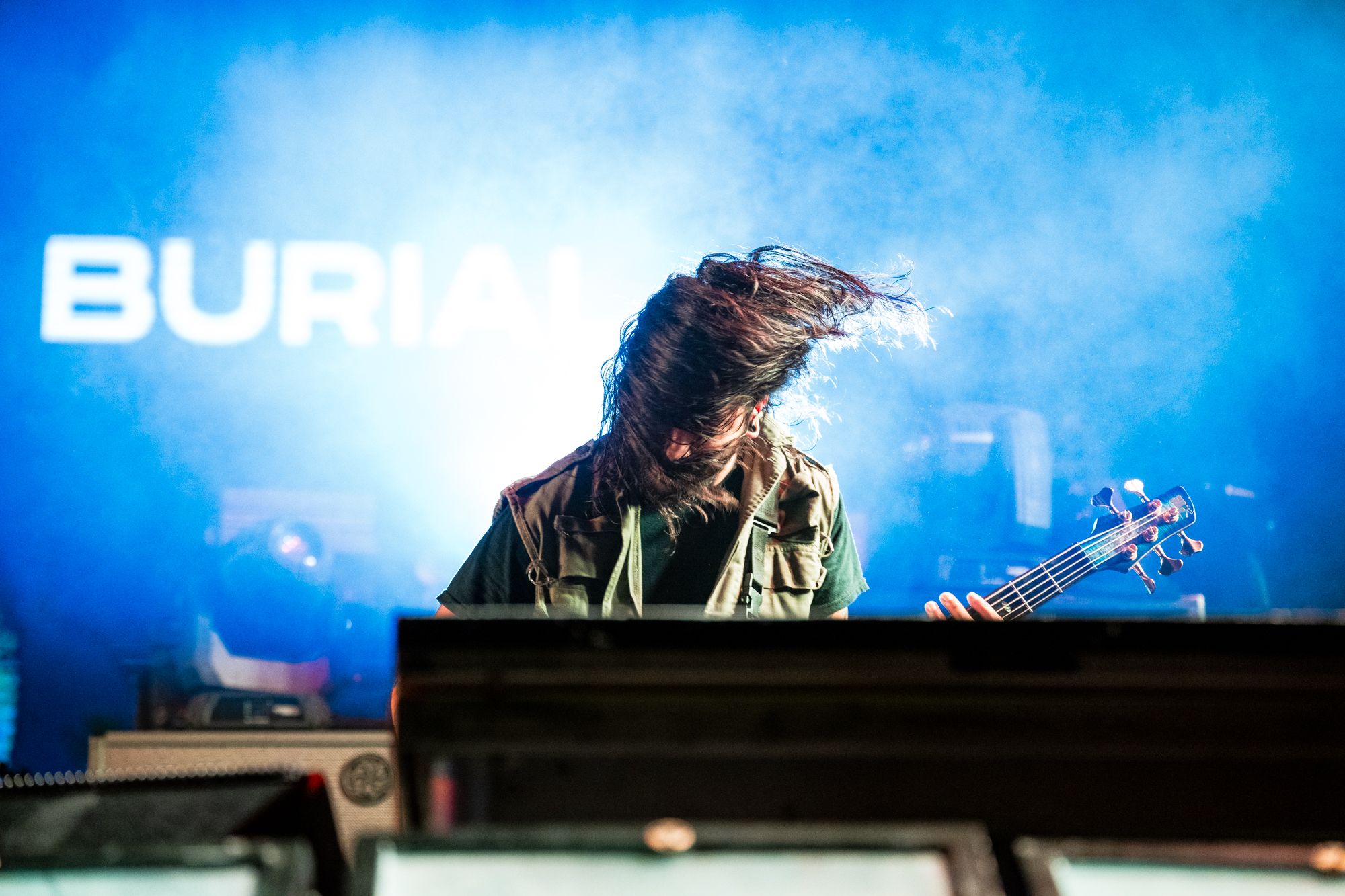 I'm no stranger to the seven string guitar. I was still in the game when nu-metal took the world by storm and bands like Korn used the extra lower string to make everything sound just that much heavier than everything else. What After the Burial have done with the concept of extra strings (both a seventh on guitar and fifth on bass) takes things to the next level, not just using the additional low end for its gut-churning effects on raw heaviness, but exploring that additional space from a technical standpoint. And I know that in the metal world, 'technical' is a word that gets thrown around a lot, but you could absolutely set your watch, VCR, and microwave to how in-sync their timing is. Singer Anthony Notarmaso has the incredible ability to somehow scream from the depths of his being while still annunciating clearly enough for their lyrics to be understood, which I cannot say often when it comes to metalcore bands. And the insane whiplash of stop-and-start that guitarist Trent Hafdahl and drummer Dan Carle pulled off on songs like 'Collapse' and set closer 'Behold the Crown' was almost mesmerizing enough to make you pause an extra half second before throwing your body into the closest mosh pit participant. And amongst all that, I can tell what I was more impressed by from bassist Adrian Oropeza: his ability to provide the slithering life behind the technical precision of the drums and guitar, or doing it while throwing around some of the top 5 rock and roll hair I've seen in years.