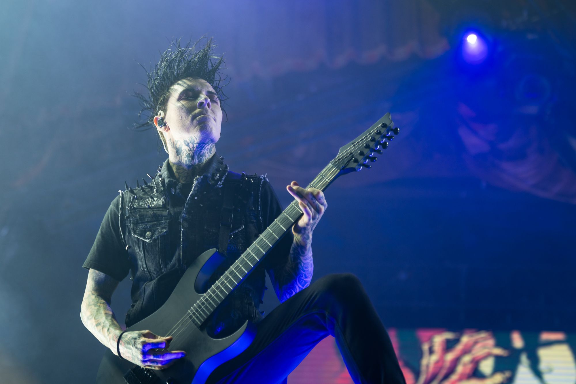 A couple of interesting things happened while I took my Rip Van Winkle nap from keeping tabs on what was popular in modern rock. The first is that rock music seemed to get its sense of humor back. Or at least the ability to not take itself so seriously. That's not to say there wasn't humor in rock music back in my heyday, but in the last 90's/early 2000's, a lot of what was 'humor' in music was dick and fart jokes, spearheaded by 'immaturity is the point' emo punk bands like Blink 182 and Sum 41. The second is that there sure seem to be a lot of bands out there now that love Halloween. It's like heavy metal got really into Tim Burton while I wasn't looking. But both of those things together work really well in this genre. We already did the 'here's theatrical makeup and outfits but we're way too serious about it' thing with Marilyn Manson and then Slipknot/Mudvayne. Carrying the torch of combining those types of elements with more of a wink and a smile that My Chemical Romance made cool again, Motionless in White were definitely an appropriate choice for a late October show. Taking the stage with elements of their various looks seemingly inspired by everything from Jared Leto's Joker to Frankenstein to Bane to an overall undead aesthetic, it all goes back to the concept of being exposed to everything, taking all the parts you love, and throwing them all into the mix. Surrounded by video screens flashing everything from pillars of flame to video game elements, the band kicked off their set with the opening track off their latest full-length release Scoring the End of the World, 'Meltdown'. This is where the attitude of not taking everything so seriously works for their music. Rather than facing the unstoppable end of the world with panic or anger, we're invited to take a front row seat at the end-of-the-world party to end them all, with lead singer Chris Cerulli welcoming the screaming crowd of 4,000 to pull up a front row seat to the apocalypse, screaming "Trigger the countdown / run up the headcount / we're all invited to the meltdown." Partying in the face of the extinction of our planet isn't fun to mosh to if you really mean it. You also can't get away with writing and performing songs with titles like 'Not My Type: Dead as Fuck 2' without some amount of tongue in cheek implied.