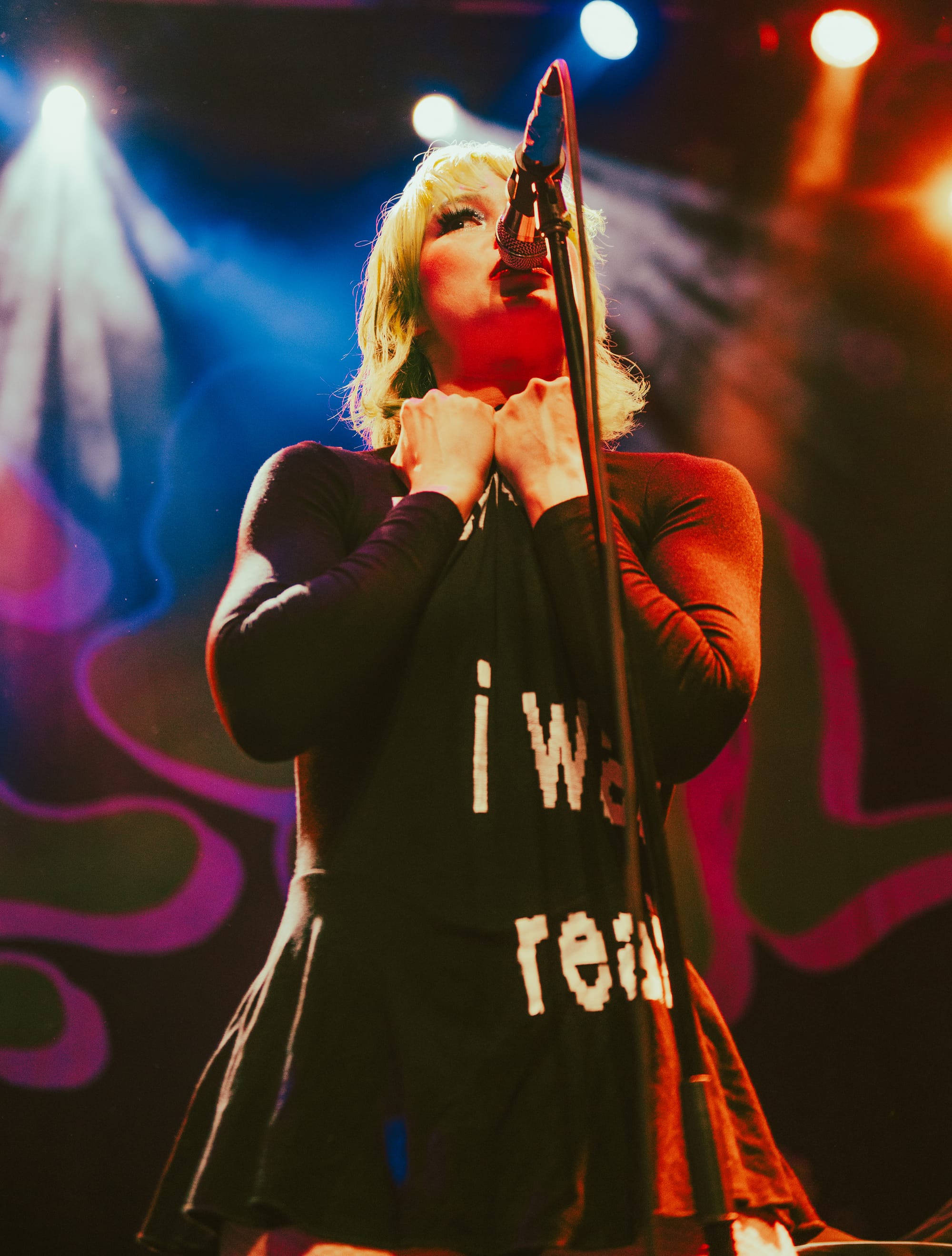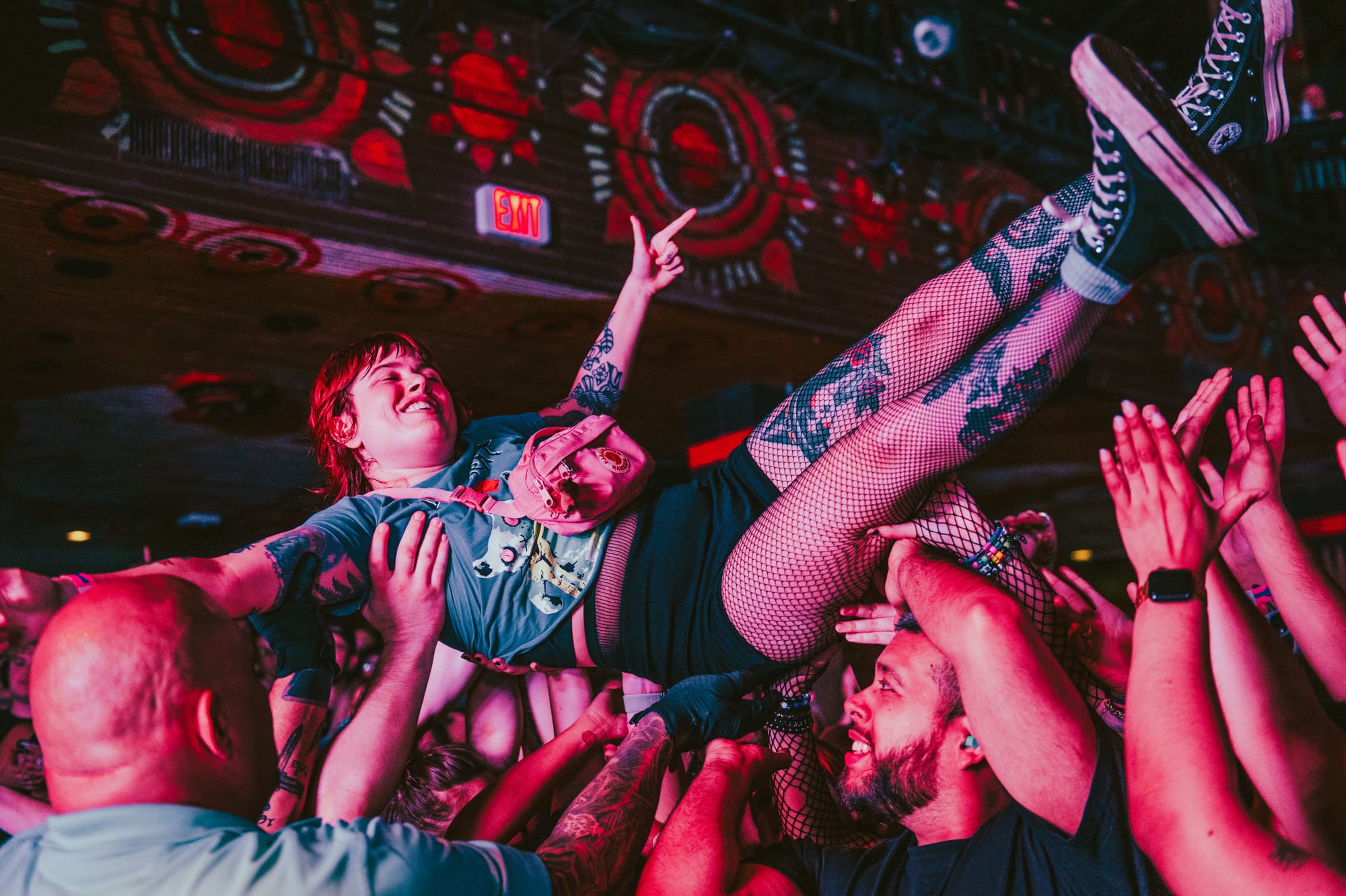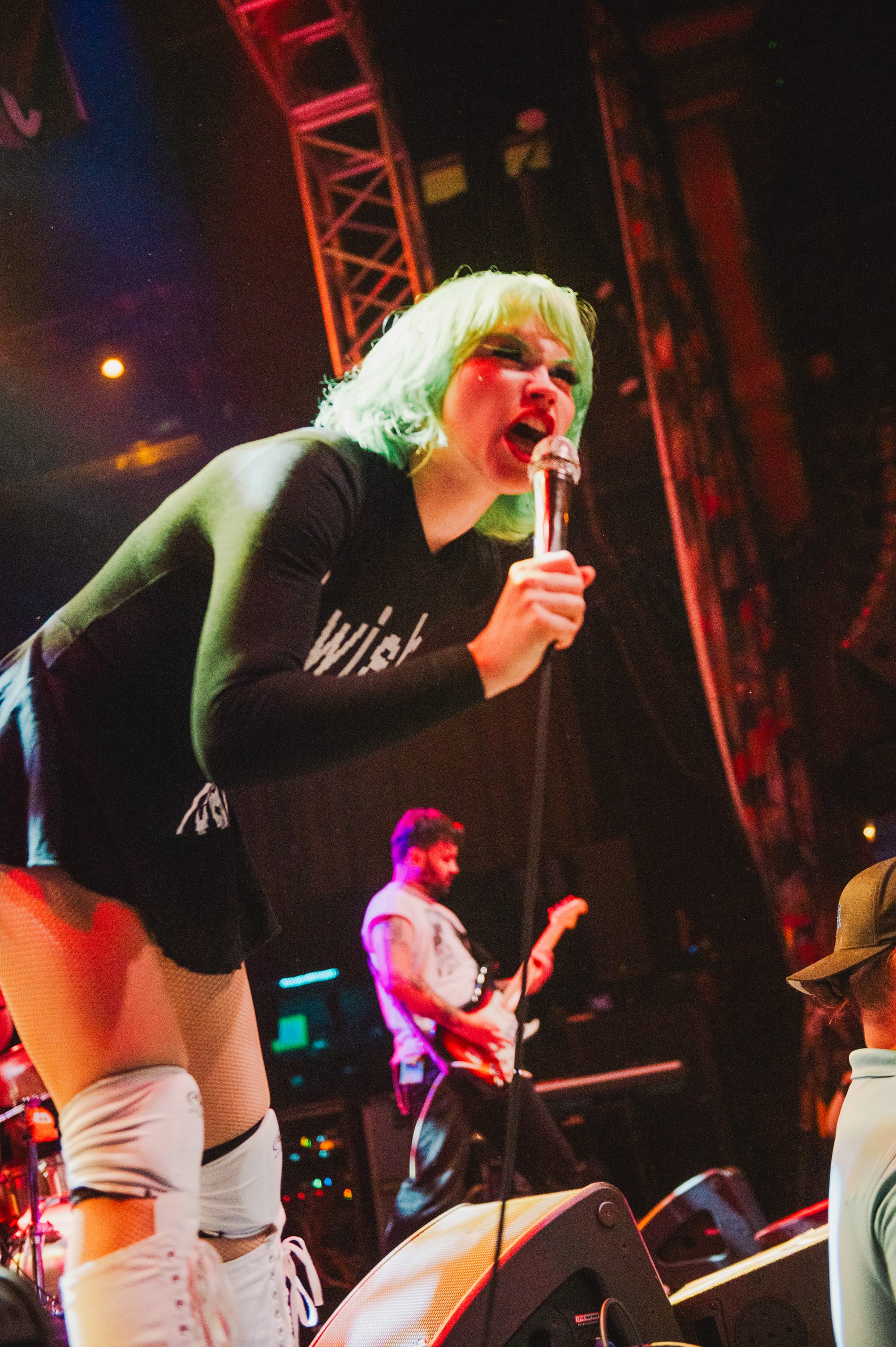 Next was Scowl, fronted by Kat Moss, a powerhouse vocalist in the hardcore genre, dominating the scene. Starting with the song "Wired," the crowd was introduced to angry grunts and screams from Kat as they skipped around, demanding the audience pay attention to the loud words coming from their mouth, “Wired this way, I’m wired this way.” House of Blues perfectly set the scene for Scowl, with luminous lights bouncing off their neon green hair and a dress that read, “I wish I was real.” Scowl is set to drop a full-length album, Are We All Angels on April 4th. The band performed “B.A.B.E,” “Not Hell, Not Heaven,” and “Tonight (I’m Afraid)” from the upcoming album, displaying a new milestone sound for the band.