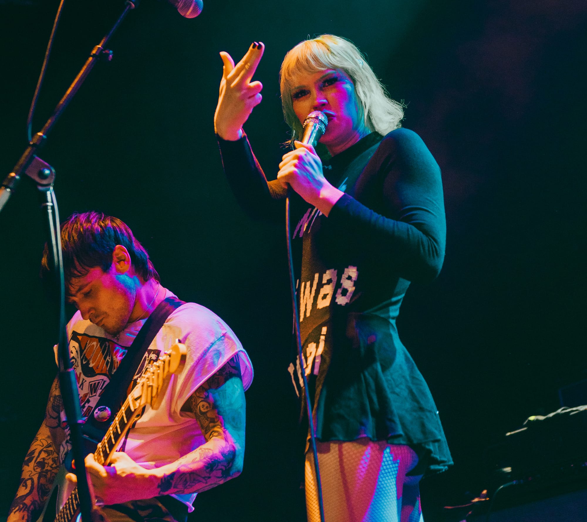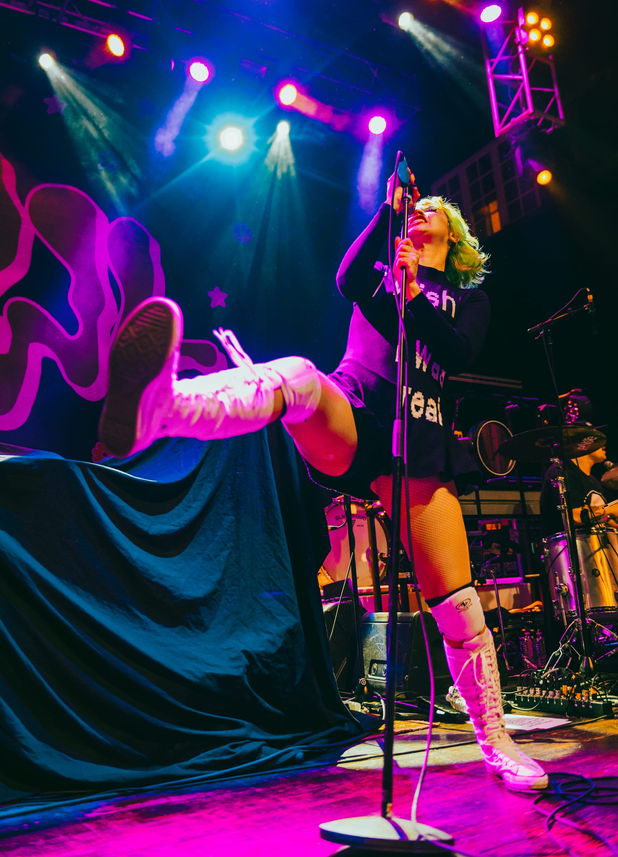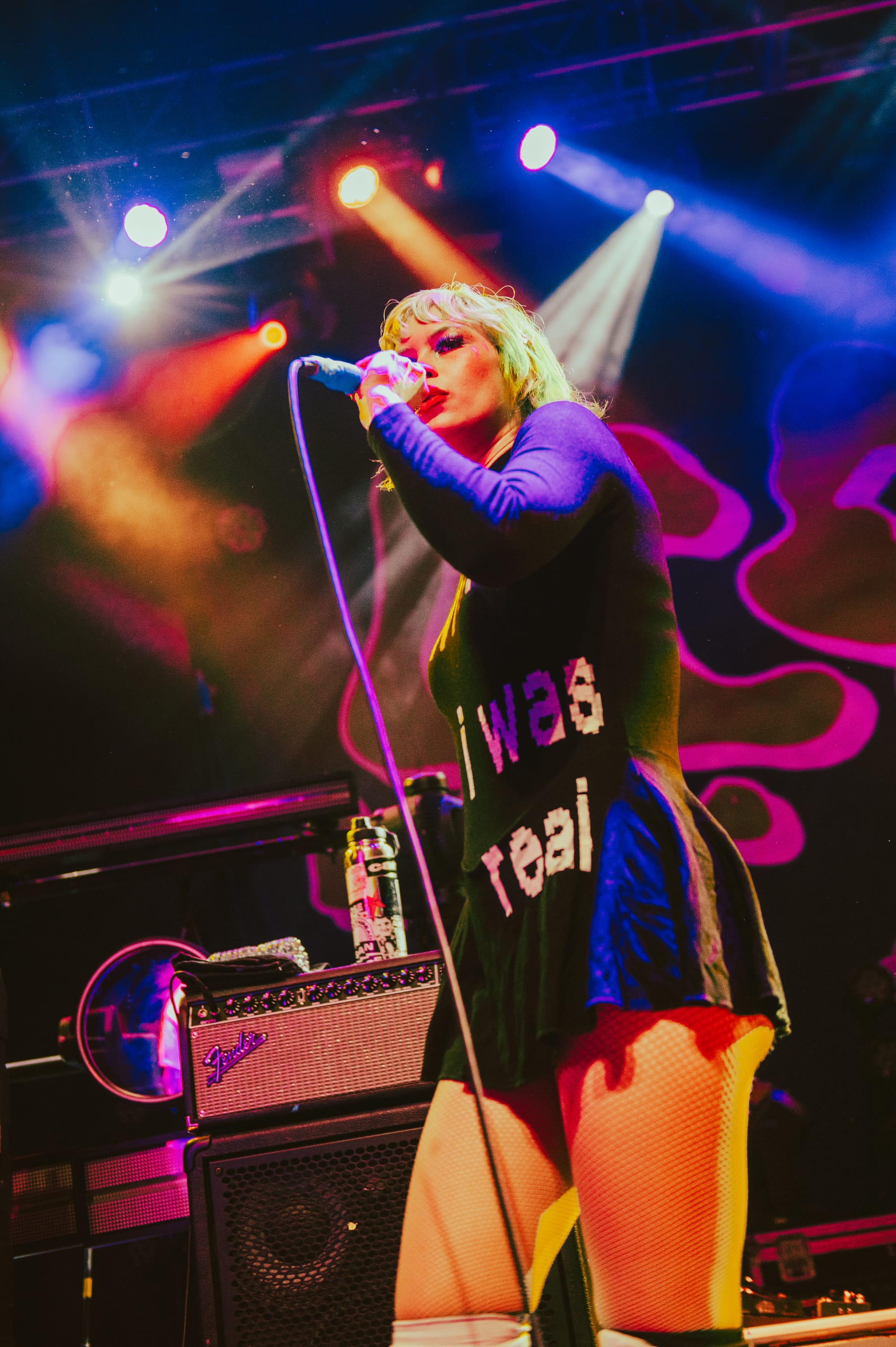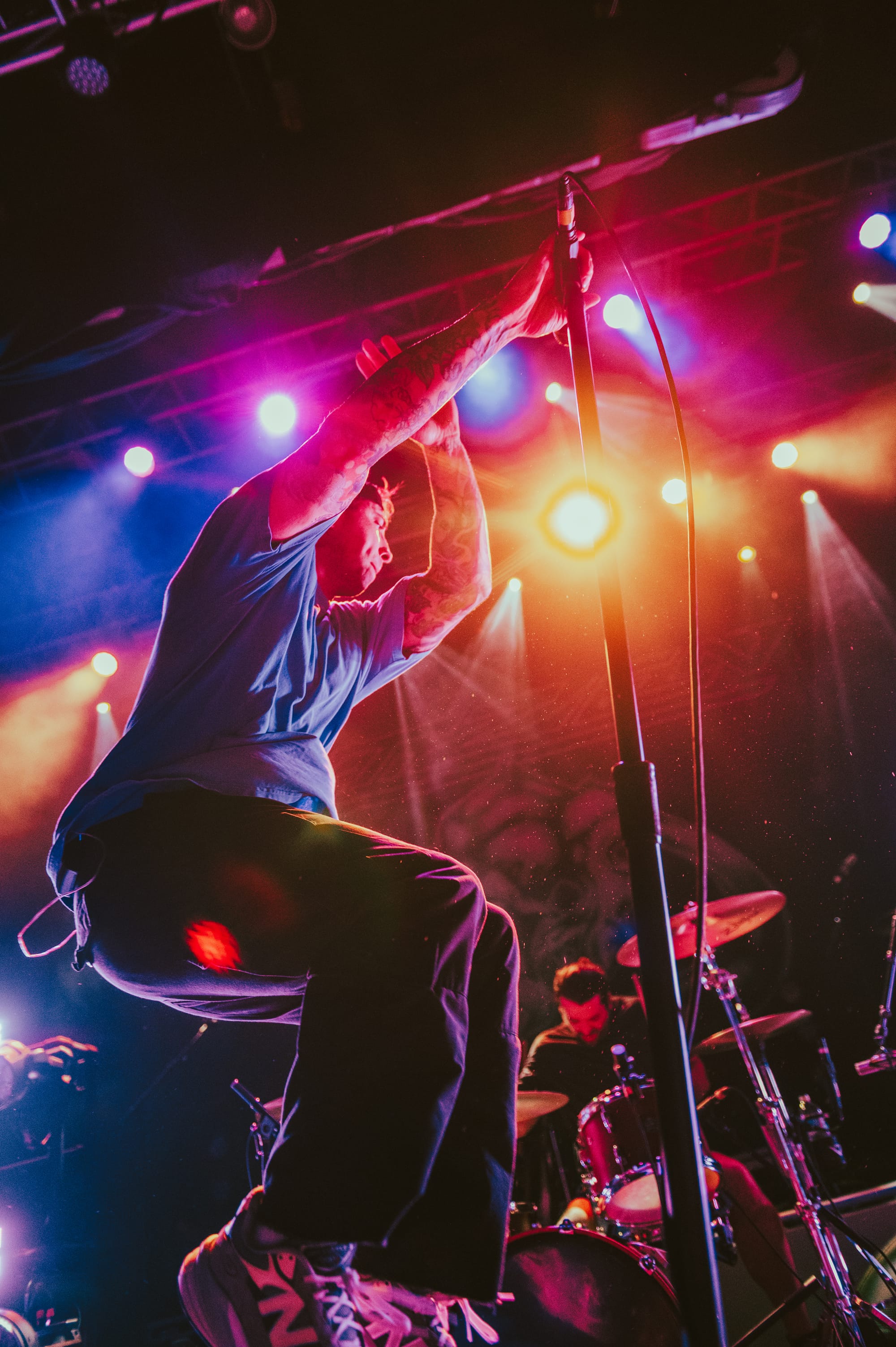 Next was Scowl, fronted by Kat Moss, a powerhouse vocalist in the hardcore genre, dominating the scene. Starting with the song "Wired," the crowd was introduced to angry grunts and screams from Kat as they skipped around, demanding the audience pay attention to the loud words coming from their mouth, “Wired this way, I’m wired this way.” House of Blues perfectly set the scene for Scowl, with luminous lights bouncing off their neon green hair and a dress that read, “I wish I was real.” Scowl is set to drop a full-length album, Are We All Angels on April 4th. The band performed “B.A.B.E,” “Not Hell, Not Heaven,” and “Tonight (I’m Afraid)” from the upcoming album, displaying a new milestone sound for the band.