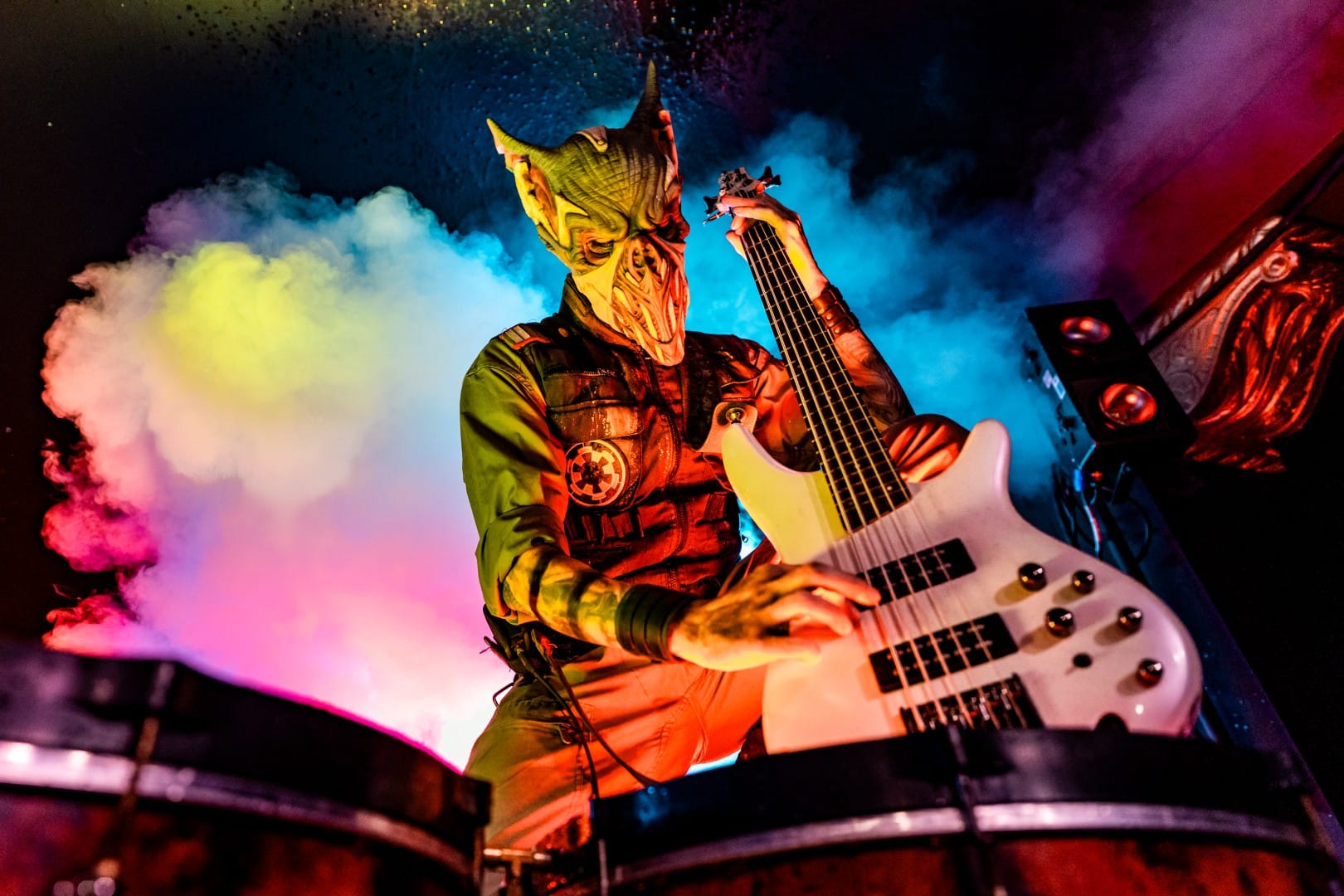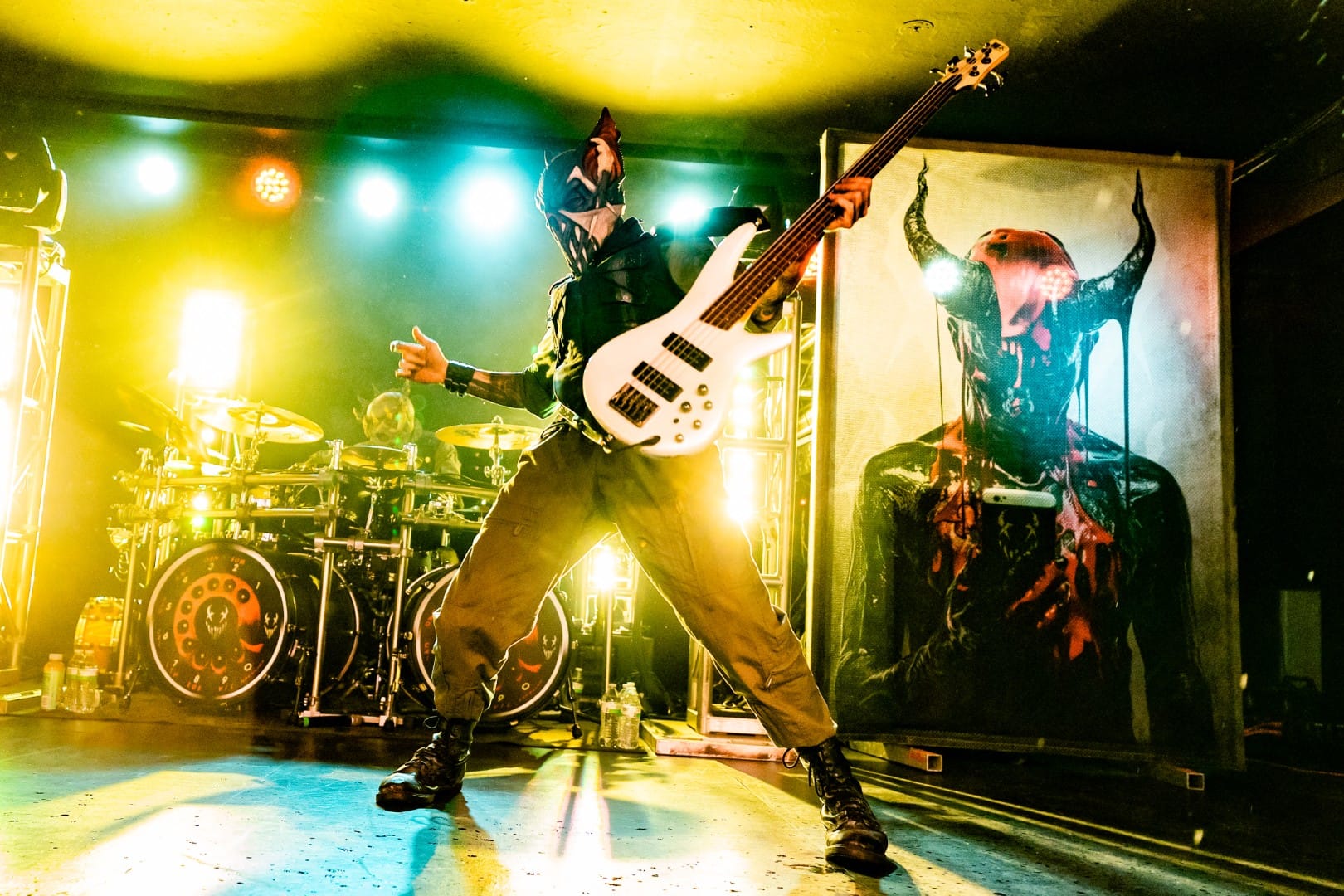 October at The Rave in Milwaukee, Wisconsin always finds the venue filled with Halloween decorations, creepy animatronics, and masked creatures. The decorations weren’t the only things marking the holiday spirit, though, as masked metallers Mushroomhead made yet another stop at the iconic venue, in the most fitting season of all.