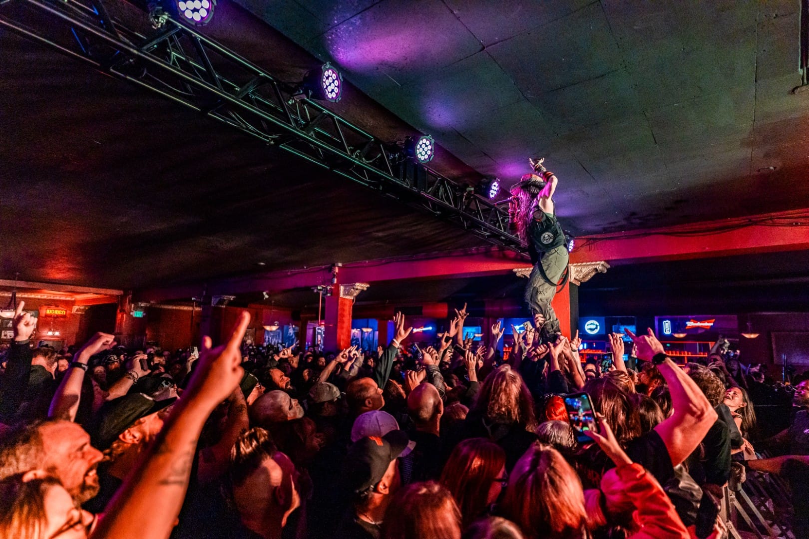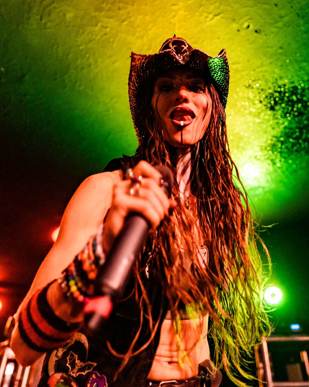 Black Satellite hit the stage next. Vocalist Larissa Vale cited a leg injury preventing her from being as high energy as usual, but the rest of the group made up for it plenty, despite the limited space on the Rave’s basement stage. The crowd was still ready to get wild after the previous set, and they let loose for the newest single, “Kill For You.” They closed out their set with a cover of “Sonne,” by Rammstein, which also coincided with a fistfight breaking out in the crowd.